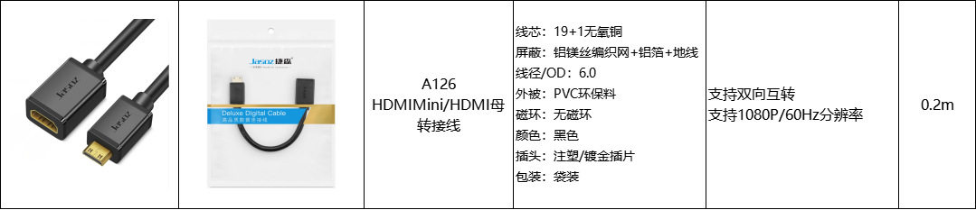 | Item number | A126 hdmimini/hdmi female adapter cable |