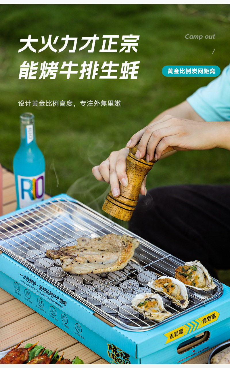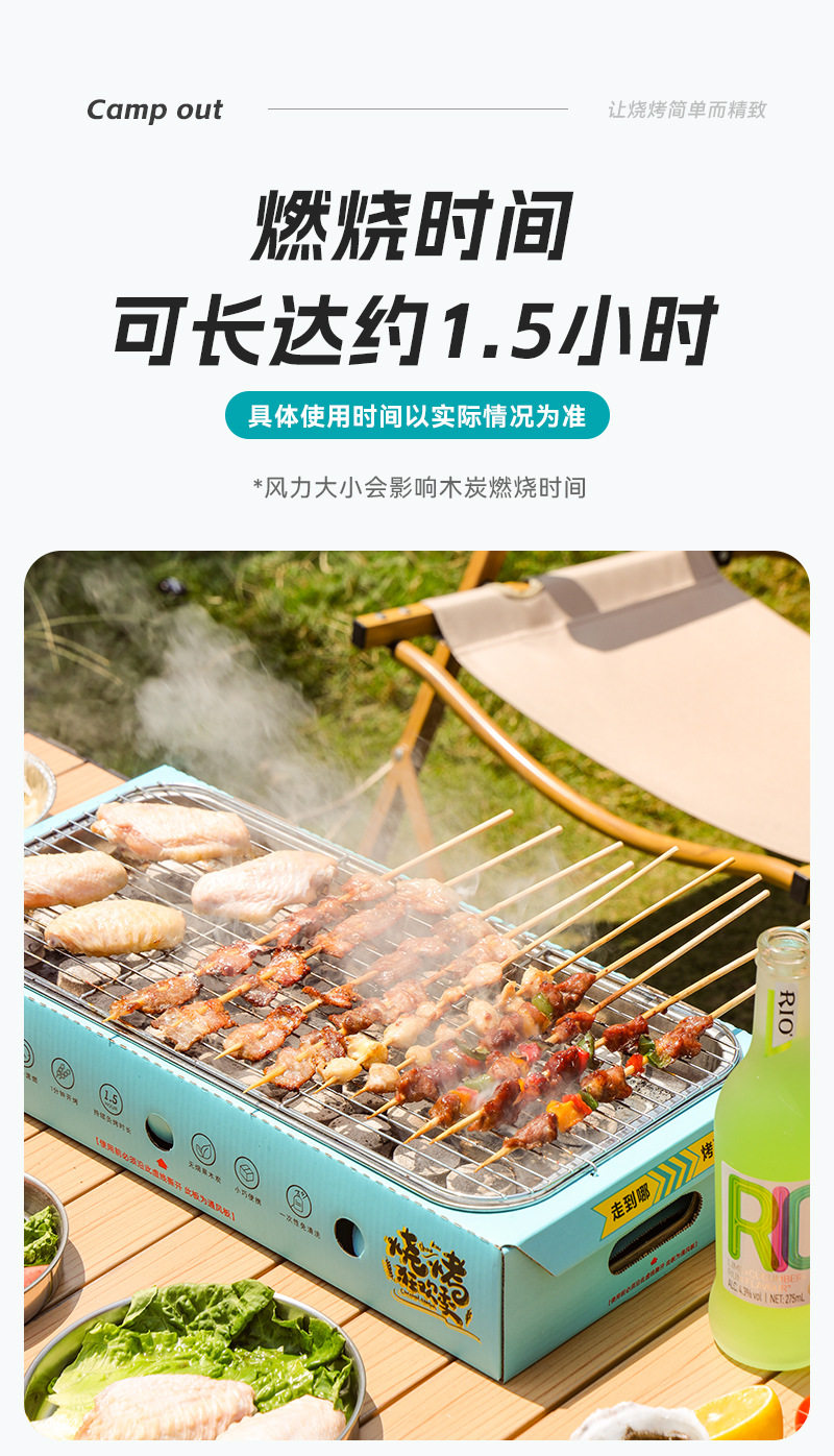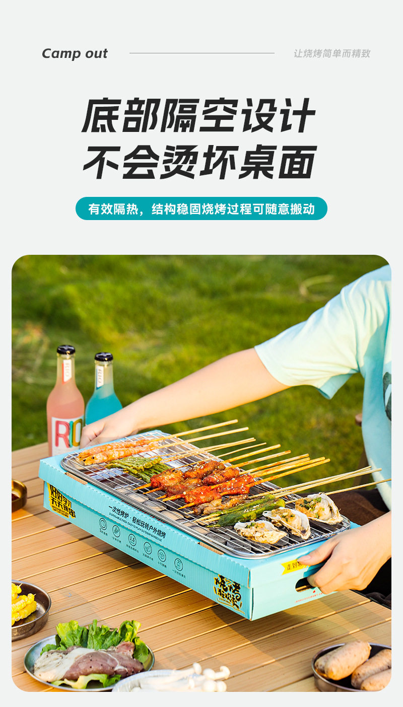 Wash-free Portable Disposable Stainless Steel Barbecue Oven Household Outdoor Charcoal Barbecue Oven for Quick-burning Fruit Charcoal
