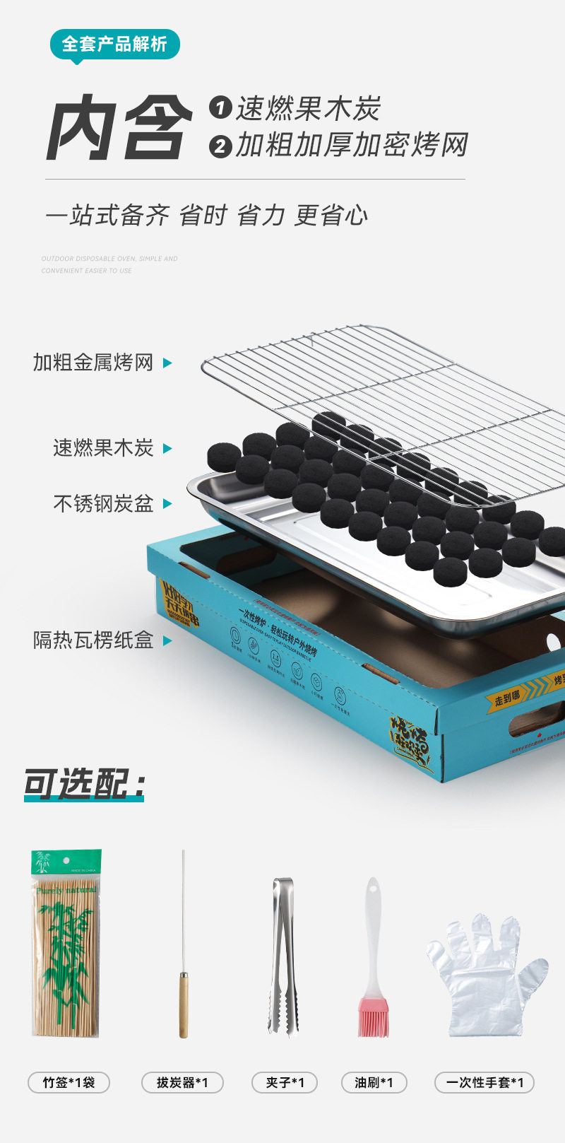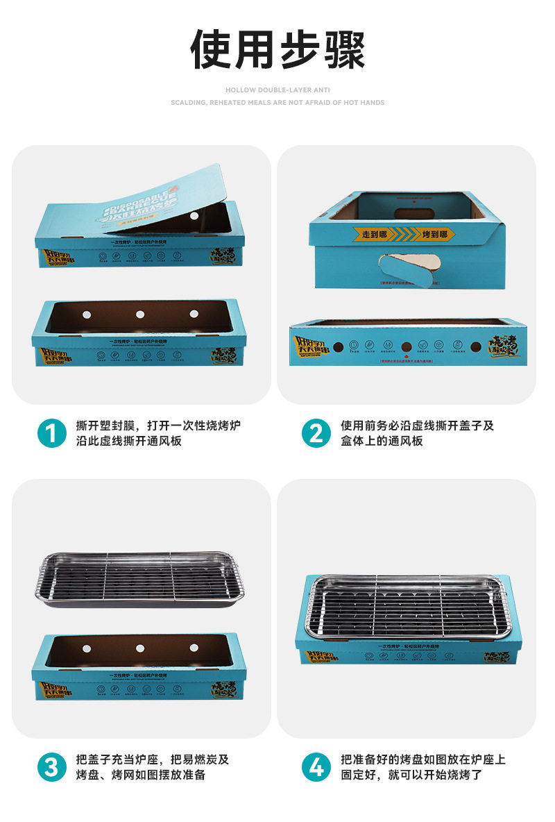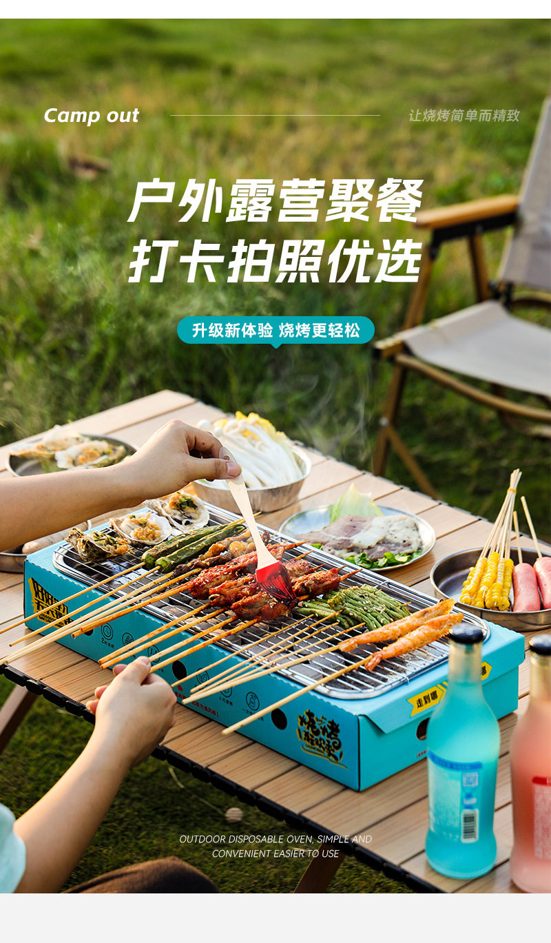 Wash-free Portable Disposable Stainless Steel Barbecue Oven Household Outdoor Charcoal Barbecue Oven for Quick-burning Fruit Charcoal