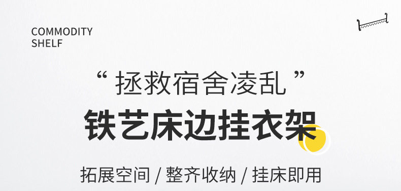 College Student Dormitory Bedside Clothes Rack for Drying Clothes, Hanging Rack for Lower and Upper Bunks, Dormitory Essential