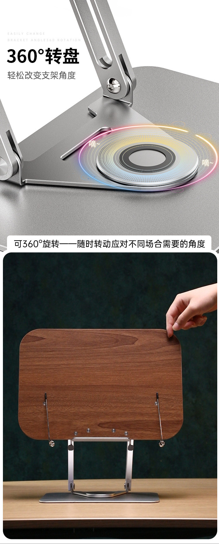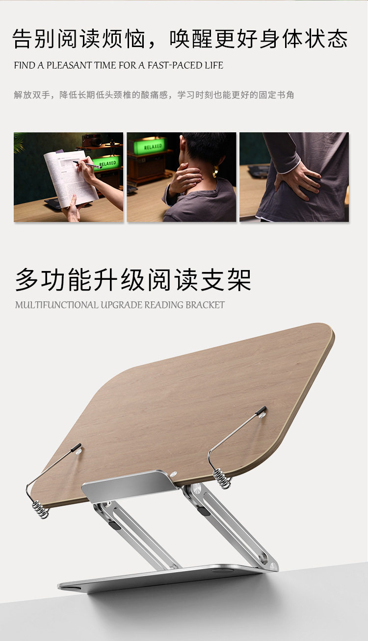 Aluminum alloy reading rack desktop rotatable lifting student reading bookshelf increased neck protection multi-functional bookshelf wholesale