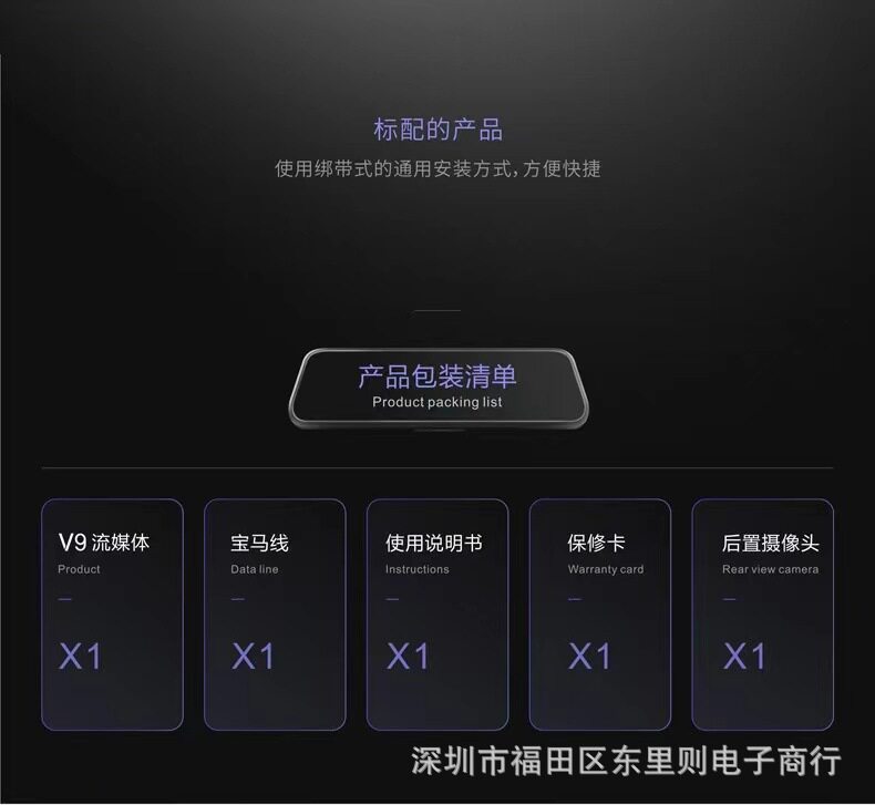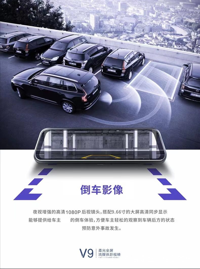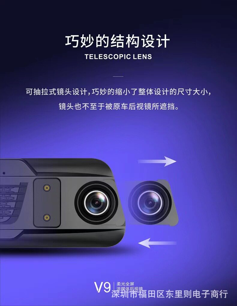 The first live driving recorder V9 PRO streaming media full screen 9.66 HD front and rear lens dual recording 1080p
