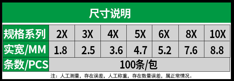 | Color | Black 3*100 non-standard [Width 1.9mm] 1000 pieces/bag,Black 3*100GB [WIDTH 2.5mm] 1000 pieces/bag,Black 3*120 non-standard [Width 1.9mm] 1000 pieces/bag,Black 3*120GB [WIDTH 2.5mm] 1000 pieces/bag,Black 3*150 non-standard [Width 1.9mm] 1000 pieces/bag,Black 3*150GB [WIDTH 2.5mm] 1000 pieces/bag,Black 3*200 non-standard [Width 1.9mm] 500 pieces/bag,Black 3*200GB [width 2.8mm] 500 pieces/bag,Black 4*100GB [width 3.6mm] 500 pieces/bag,Black 4*120GB [width 3.6mm] 500 pieces/bag,Black 4*150GB [width 3.6mm] 500 pieces/bag,Black 4*150 non-standard [width 2.8mm] 500 pieces/bag,Black 4*200GB [width 3.6mm] 500 pieces/bag,Black 4*200 non-standard [width 2.8mm] 500 pieces/bag,Black 4*250GB [width 3.6mm] 250 pieces/bag,Black 4*250 non-standard [width 2.8mm] 250 pieces/bag,Black 4*300GB [width 3.6mm] 250 pieces/bag,Black 4*300 non-standard [width 2.8mm] 250 pieces/bag,Black 4*350GB [width 3.6mm] 250 pieces/bag,Black 4*400GB [width 3.6mm] 250 pieces/bag,Black 5*150GB [width 4.8mm] 250 pieces/bag,Black 5*150 non-standard [width 3.6mm] 500 pieces/bag,Black 5*200GB [width 4.6mm] 500 pieces/bag,Black 5*200 non-standard [width 3.6mm] 500 pieces/bag,Black 5*250GB [width 4.8mm] 250 pieces/bag,Black 5*250 non-standard [width 3.6mm] 250 pieces/bag,Black 5*300GB [width 4.8mm] 250 pieces/bag,Black 5*300 non-standard [width 3.6mm] 250 pieces/bag,Black 5*350GB [width 4.8mm] 250 pieces/bag,Black 5*350 non-standard [width 3.6mm] 250 pieces/bag,Black 5*400GB [width 4.8mm] 250 pieces/bag,Black 5*400 non-standard [width 3.6mm] 250 pieces/bag,Black 5*500GB [width 4.8mm] 250 pieces/bag,Black 5*550GB [width 4.8mm] 250 pieces/bag,Black 5*600GB [width 4.8mm] 250 pieces/bag,Black 5*650GB [width 4.8mm] 250 pieces/bag,Black 8*200GB [width 7.6mm] 100 pieces/bag,Black 8*200 non-standard [width 5.2mm] 250 pieces/bag,Black 8*250GB [width 7.6mm] 100 pieces/bag,Black 8*250 non-standard [width 5.2mm] 250 pieces/bag,Black 8*300GB [width 7.6mm] 100 pieces/bag,Black 8*300 non-standard [width 5.2mm] 250 pieces/bag,Black 8*350GB [width 7.6mm] 100 pieces/bag,Black 8*350 non-standard [width 5.2mm] 250 pieces/bag,Black 8*400GB [width 7.6mm] 100 pieces/bag,Black 8*400 non-standard [width 5.2mm] 250 pieces/bag,Black 8*500GB [width 7.6mm] 100 pieces/bag,Black 8*500 non-standard [width 5.2mm] 250 pieces/bag,Black 10*400GB [width 8.8mm] 100 pieces/bag,Black 10*500GB [width 8.8mm] 100 pieces/bag |
