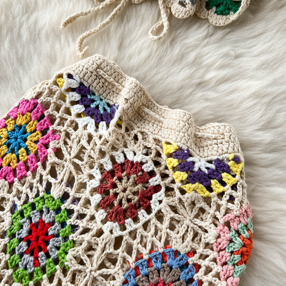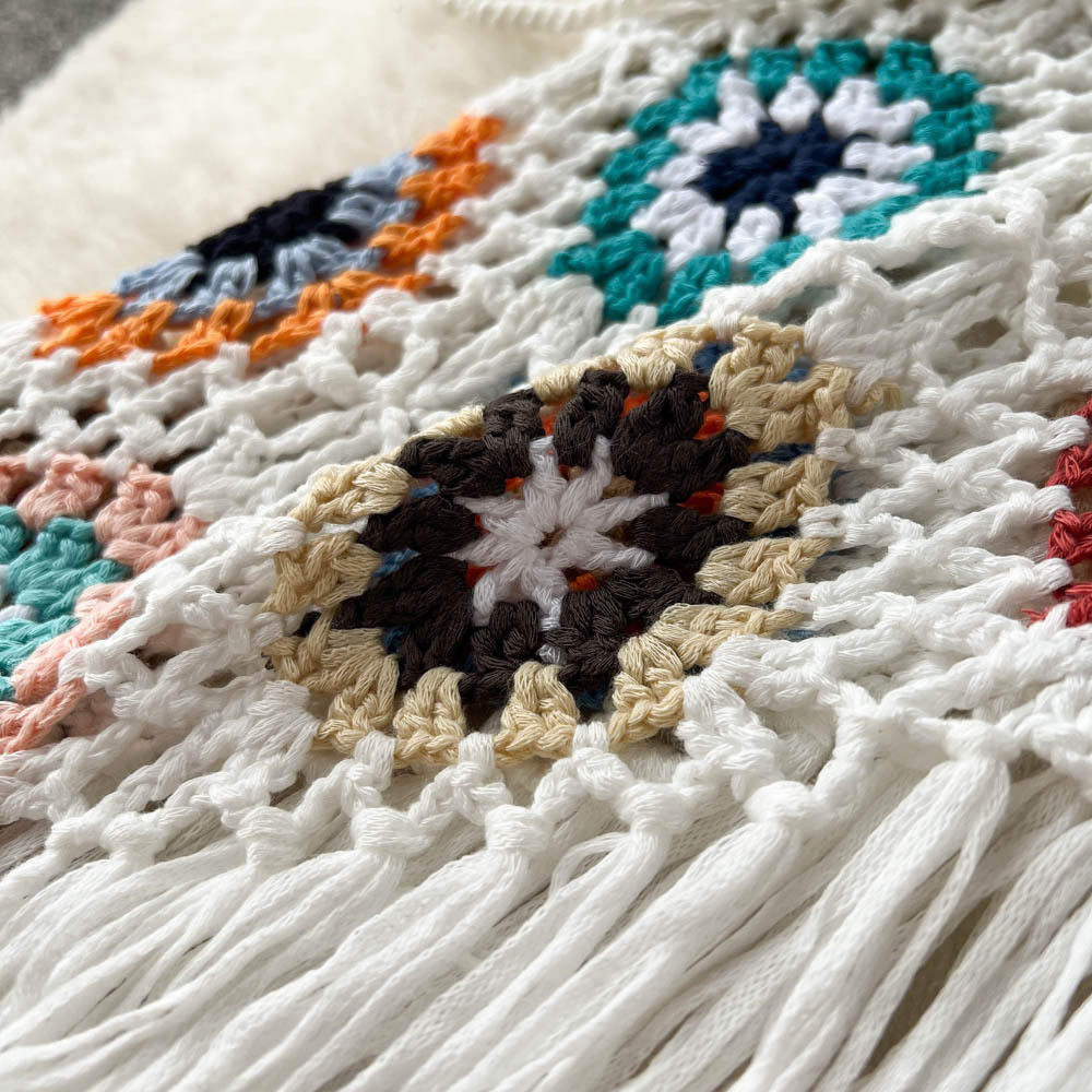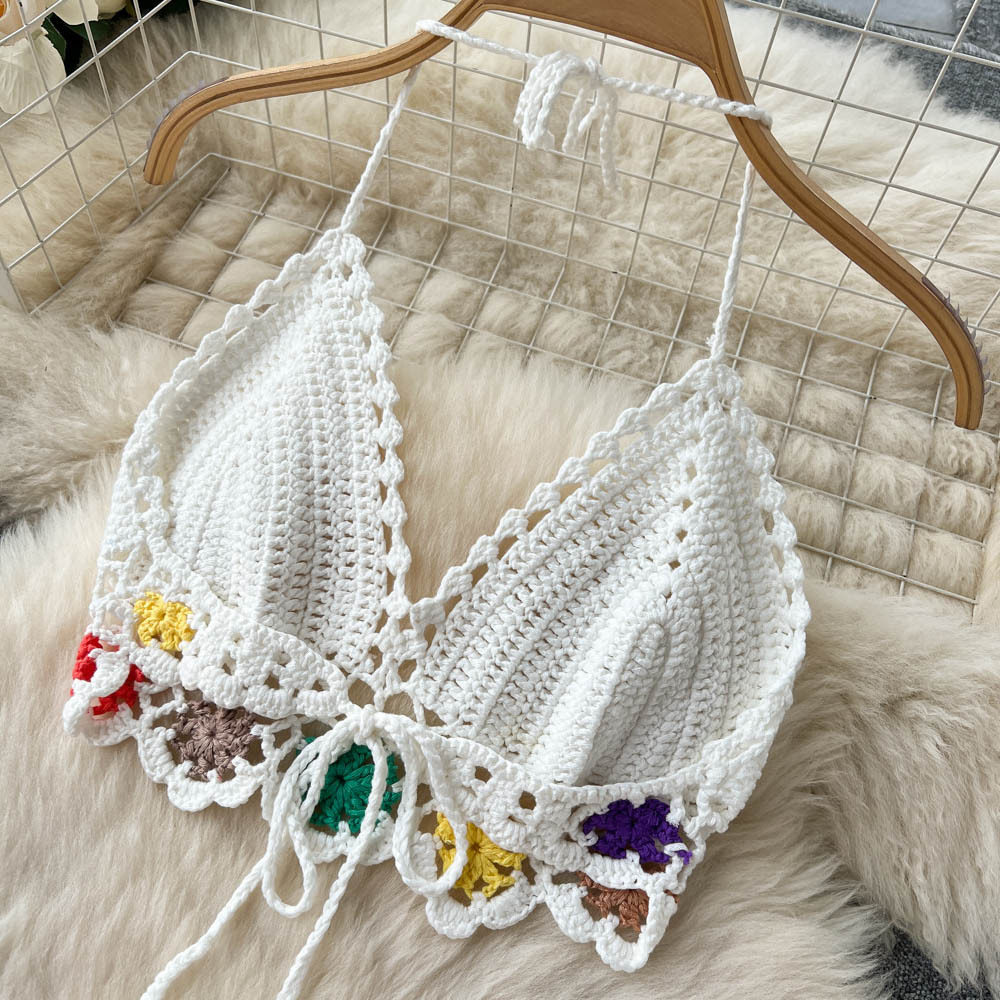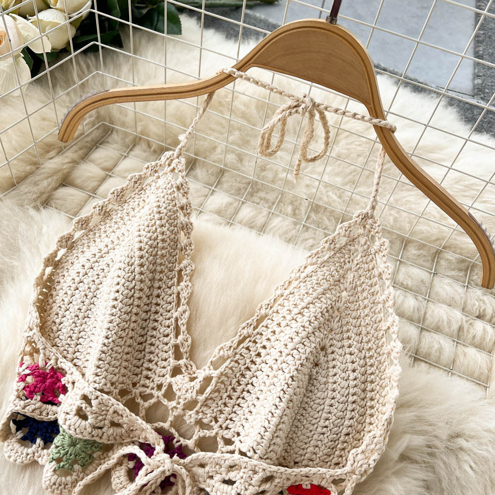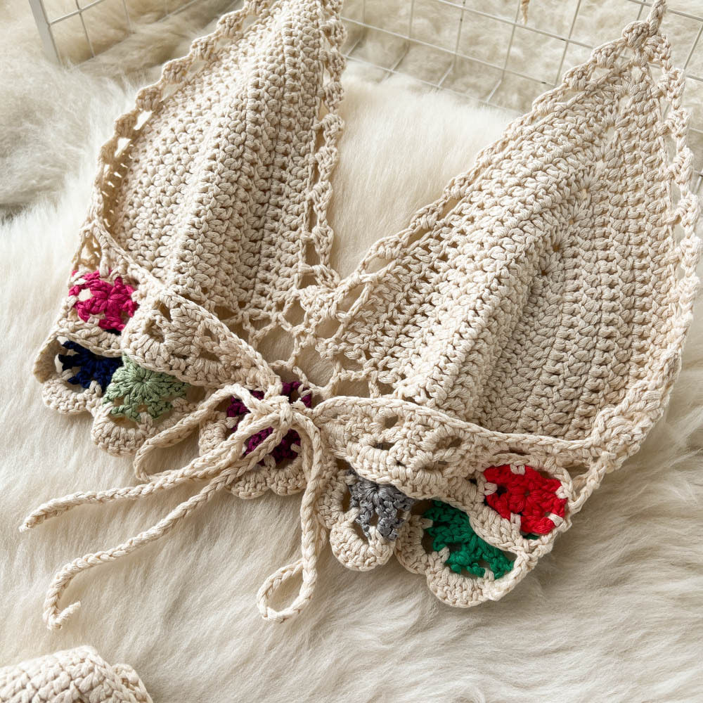 Summer Bohemian Knitted Hollow Crochet Neck V-Neck Tube Top + Irregular Skirt Two-Piece Suit