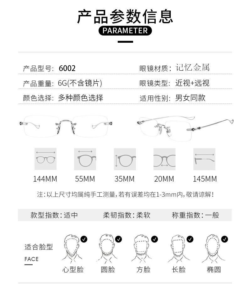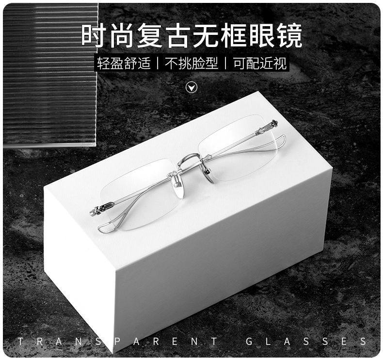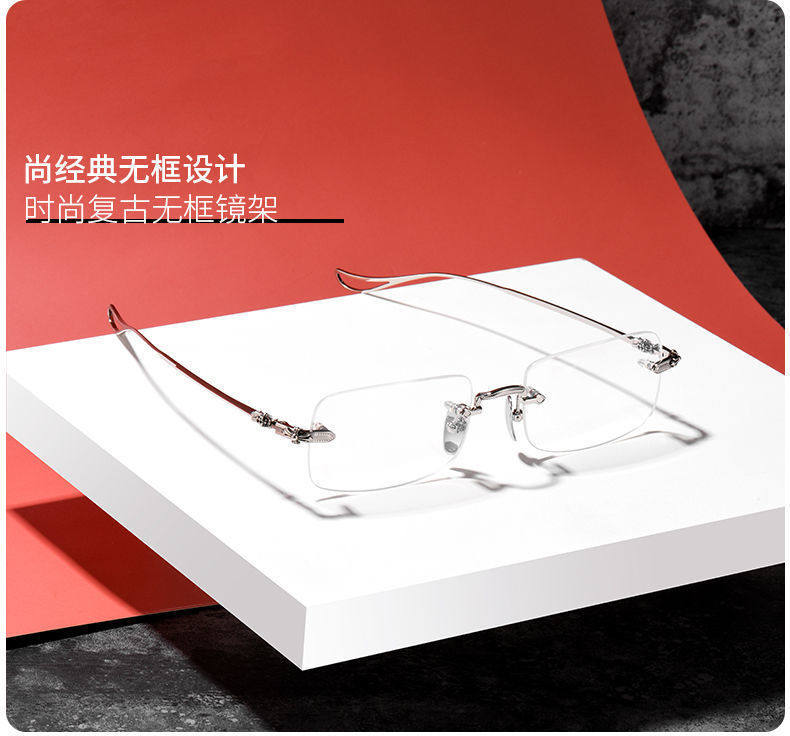 Anti-blue light frameless glasses color-changing trendy men's glasses frame ultra light men's high-looking myopia glasses