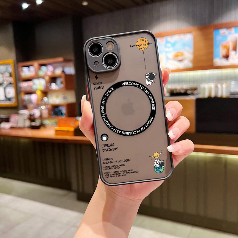 Suitable for Iphone17 Cartoon Magnetic Astronaut Phone Case 15Pro Letter Graffiti Magsafe Apple 14 Case