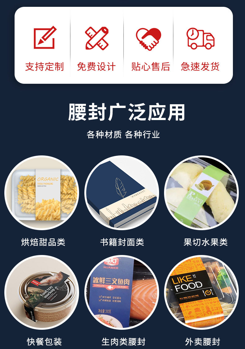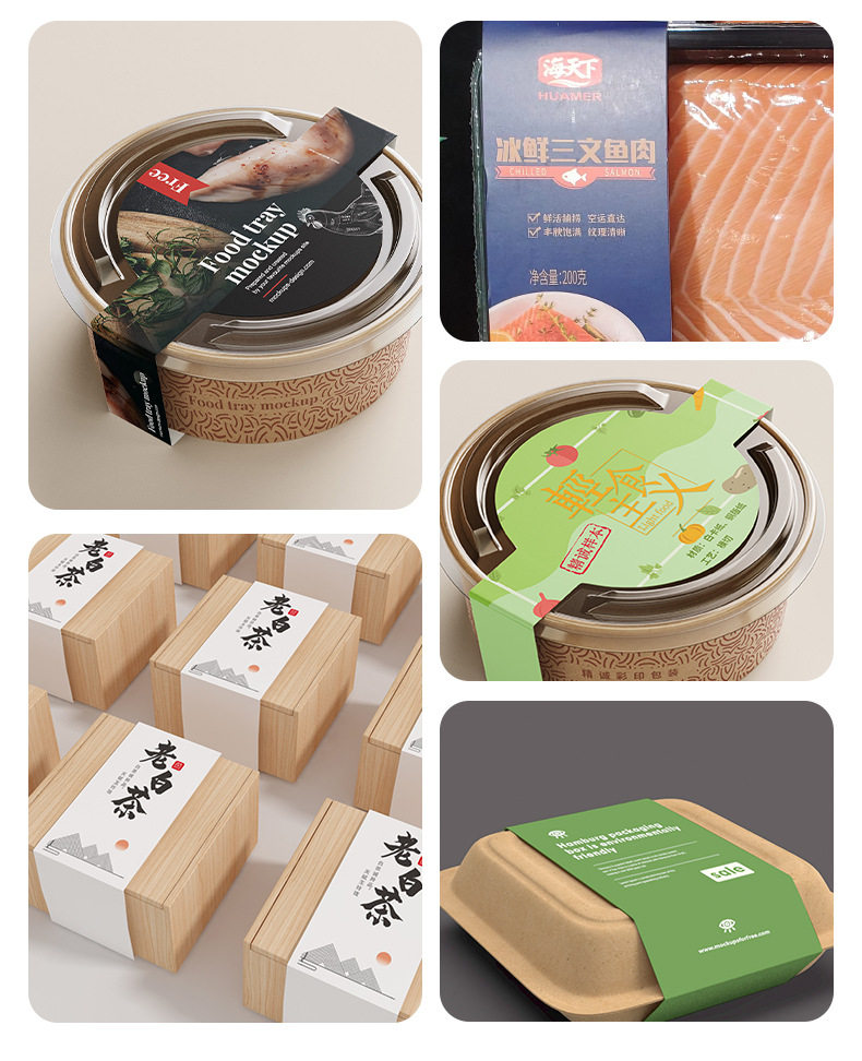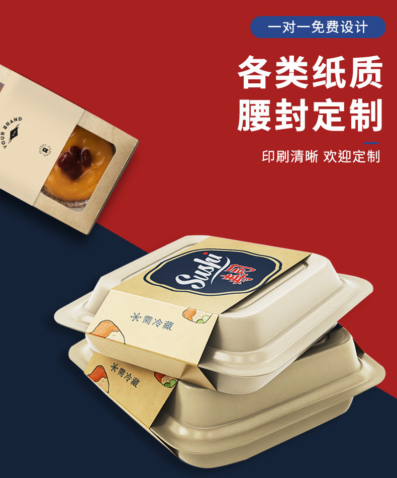 Takeaway lunch box waist seal customization factory sales free design thick material printing packing box waist seal customization