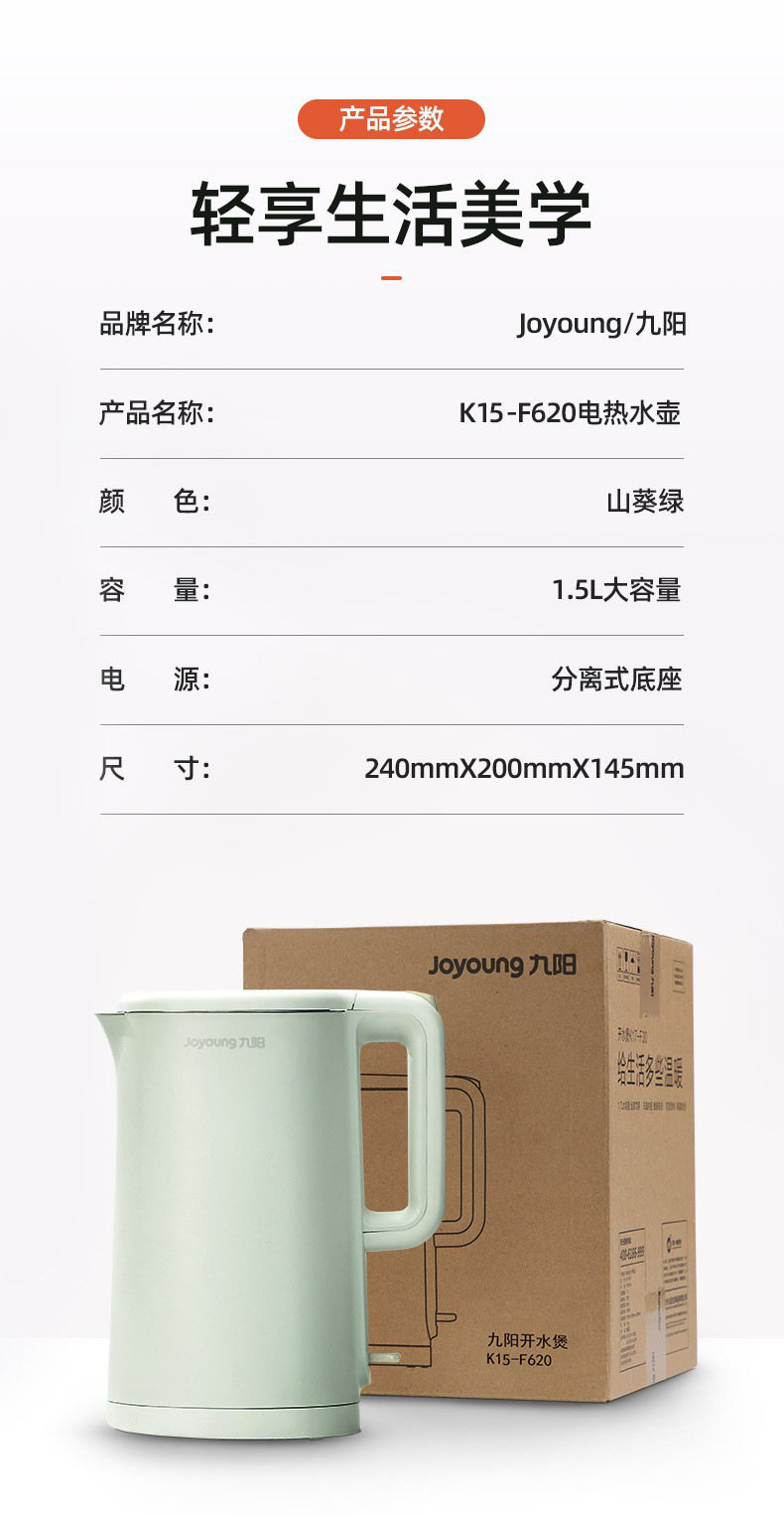 Jiuyang Electric Kettle K17-F620/K15-F620 Stainless Steel Household Kettle Automatic Power-off Large Capacity