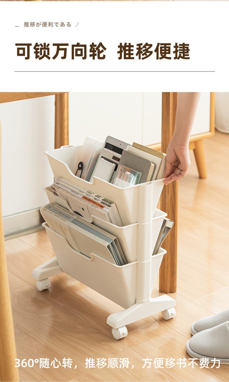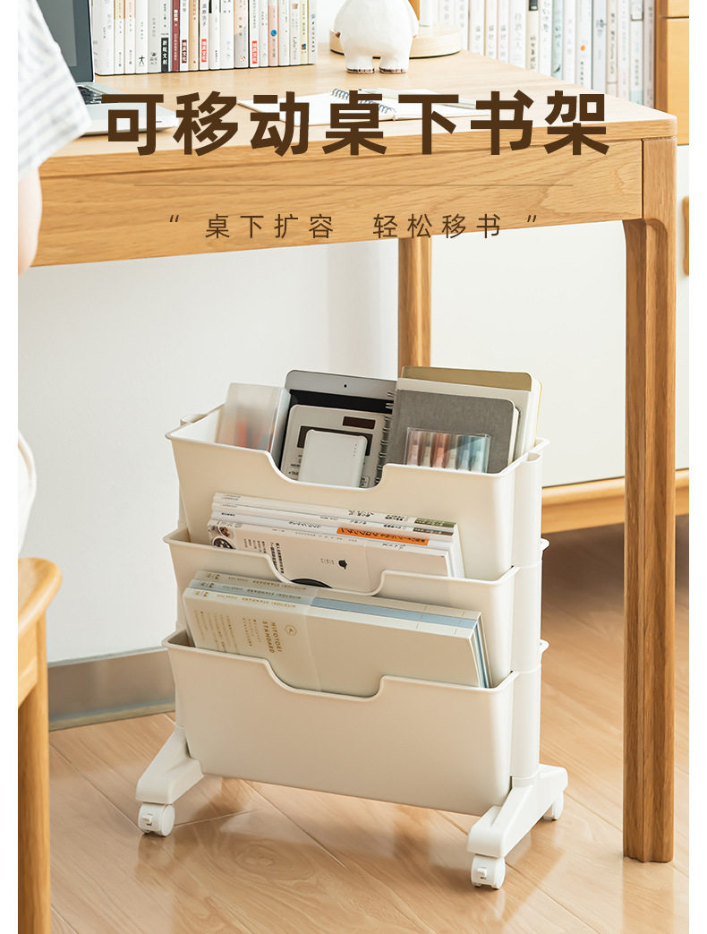 Factory direct table finishing shelf English book bookshelf mobile storage box wholesale plastic reading rack