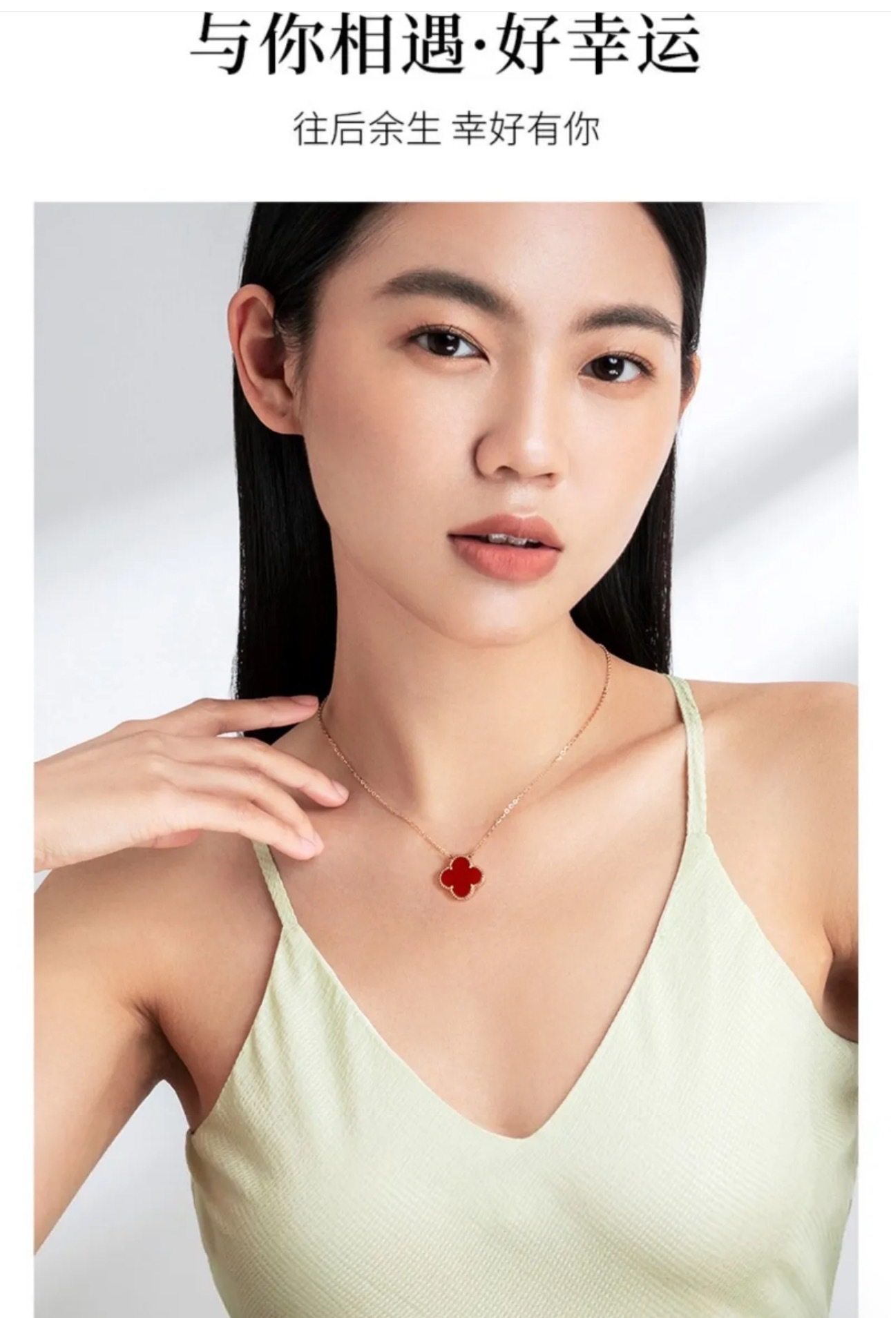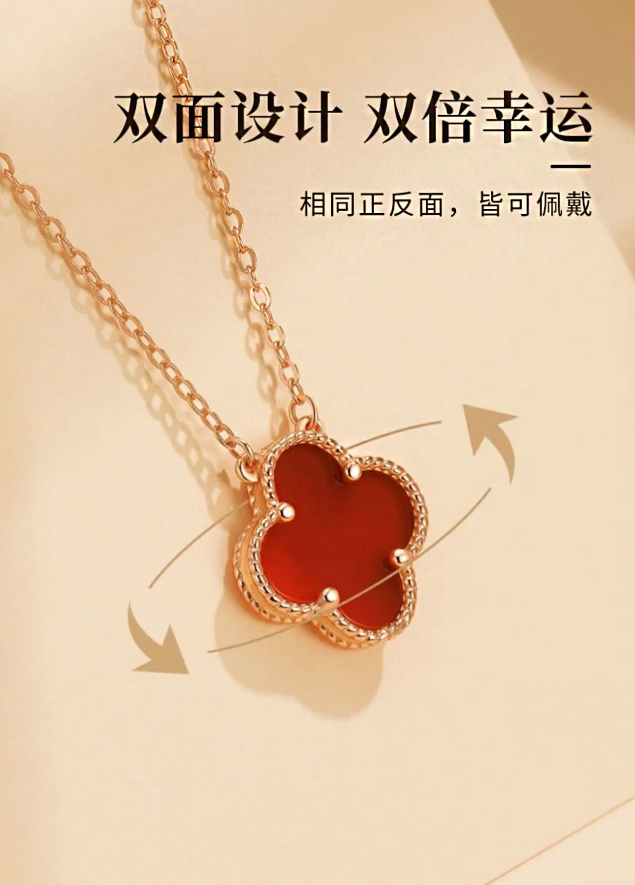 Silver S925 Four-Leaf Clover Necklace Rose Gold Red Agate Black Agate Gift Box for Girlfriend Light Luxury Clavicle Chain