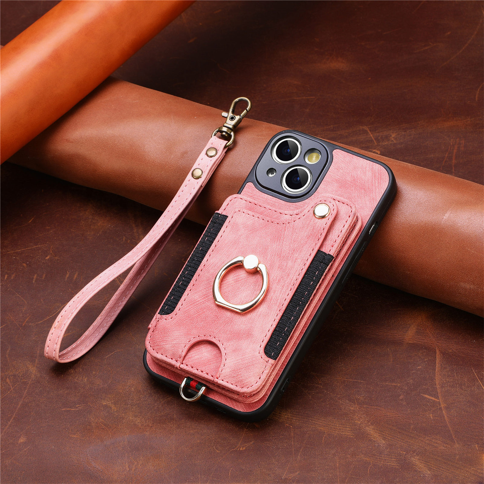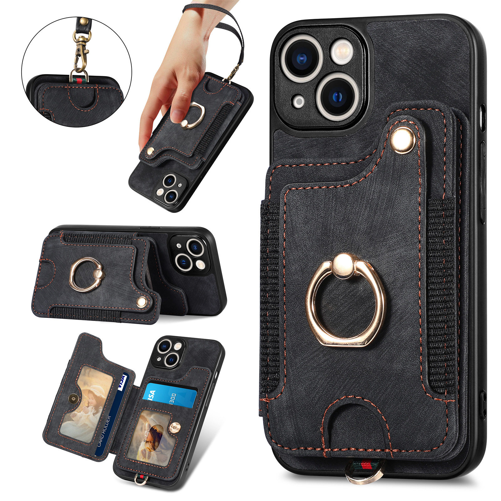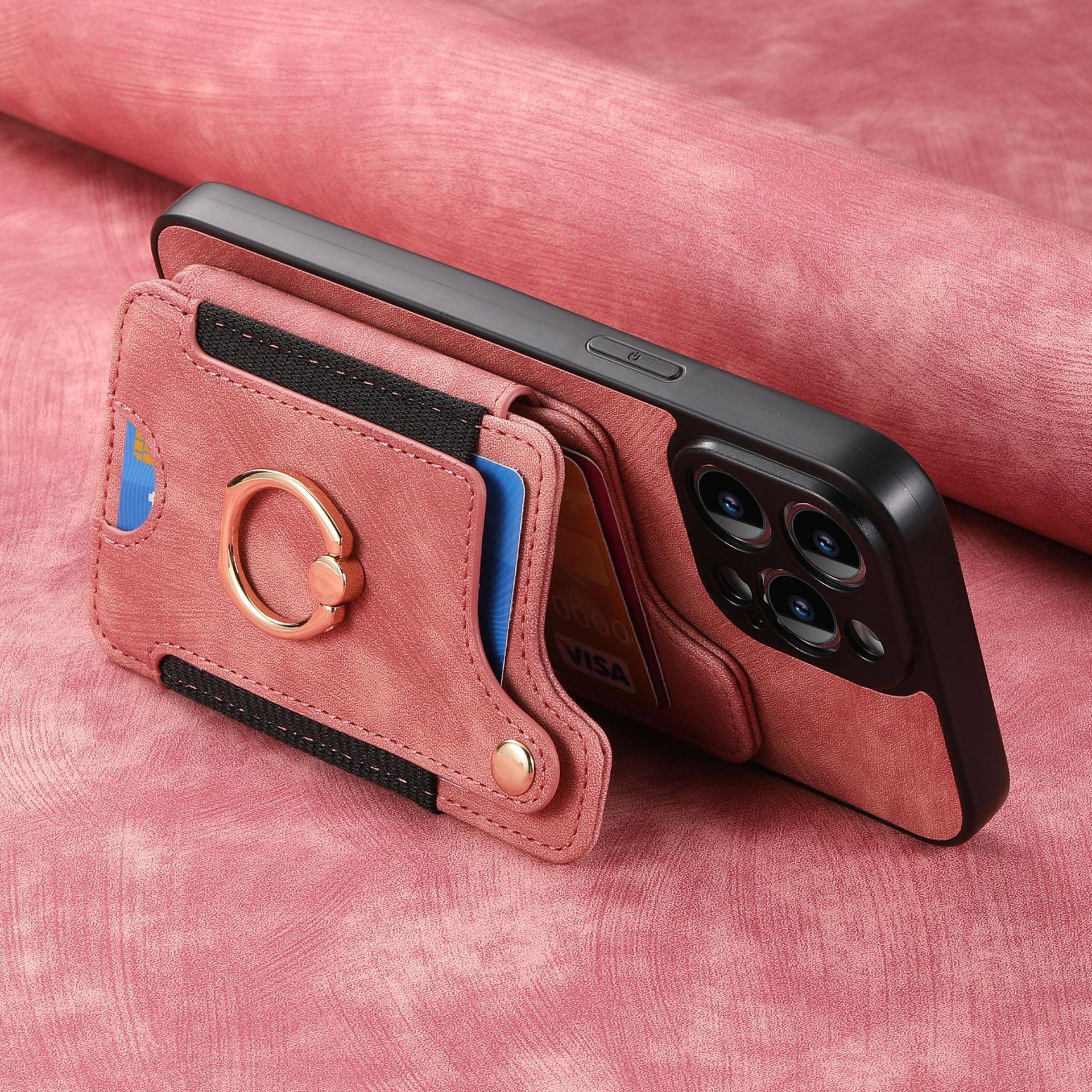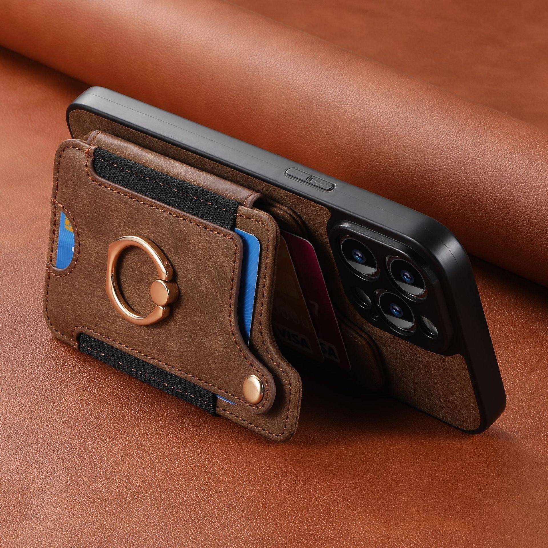 Suitable for Iphone17 Mobile Phone Leather Case Rfid Anti-Theft Brush Ring Buckle Lanyard Multi-Function Card Holder Apple Mobile Phone