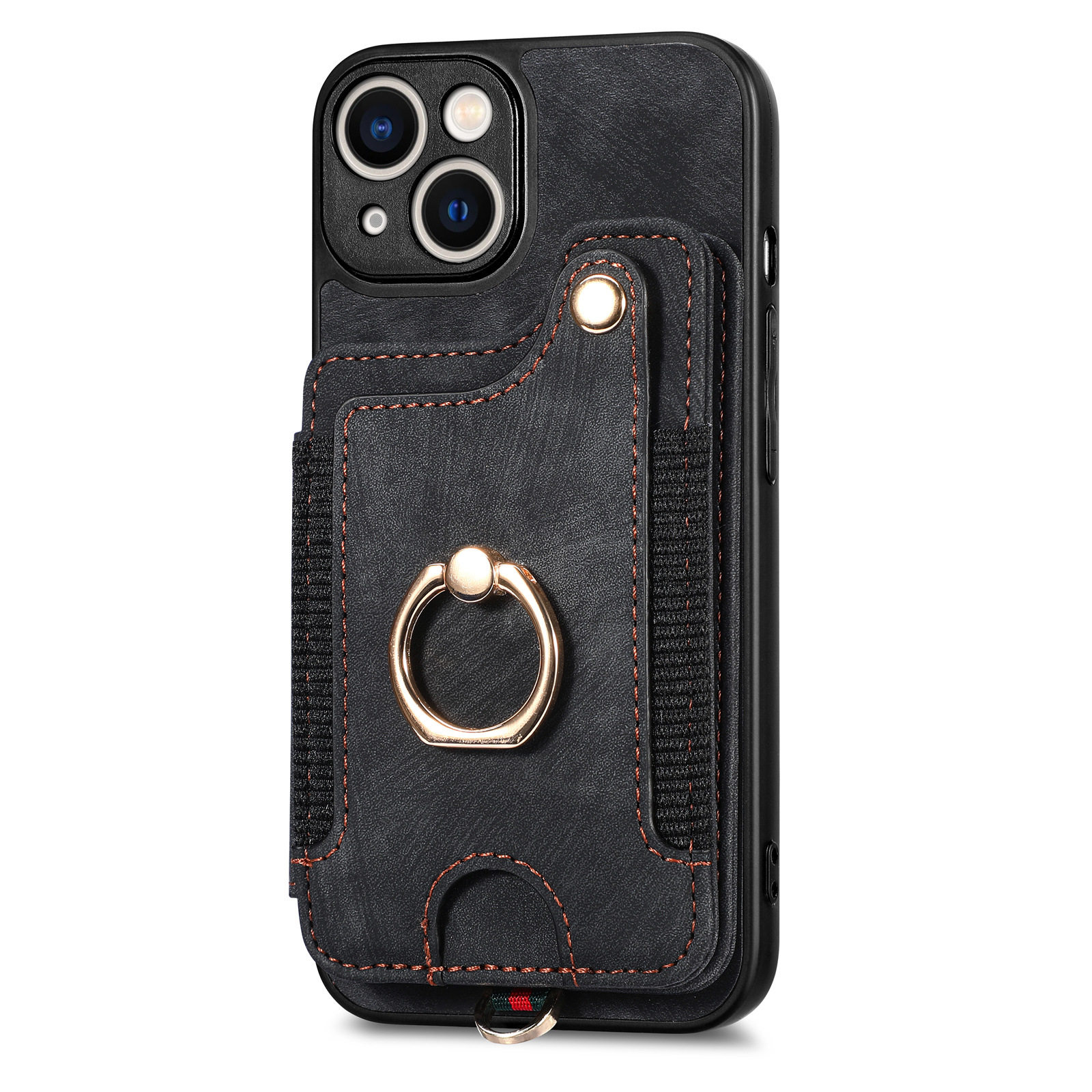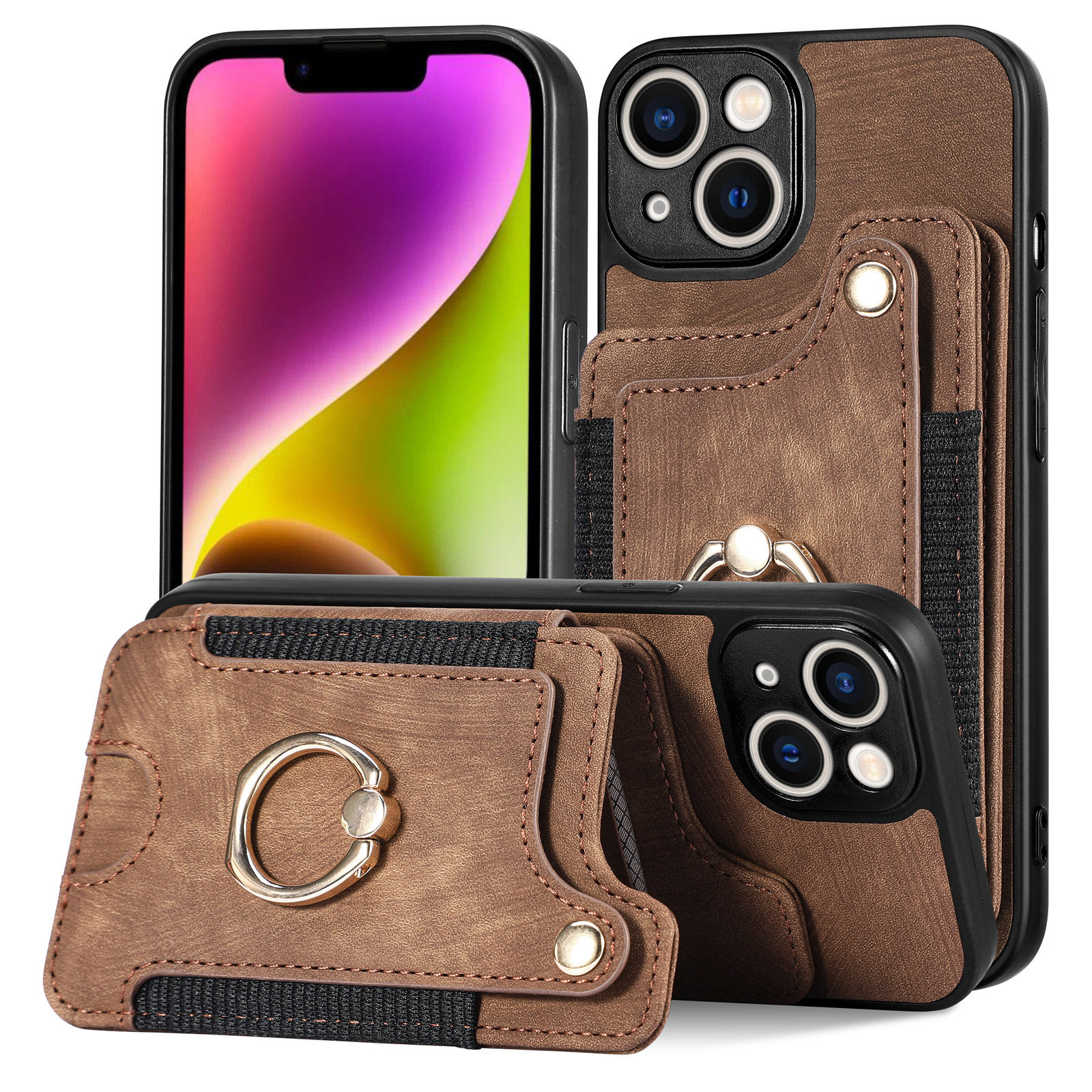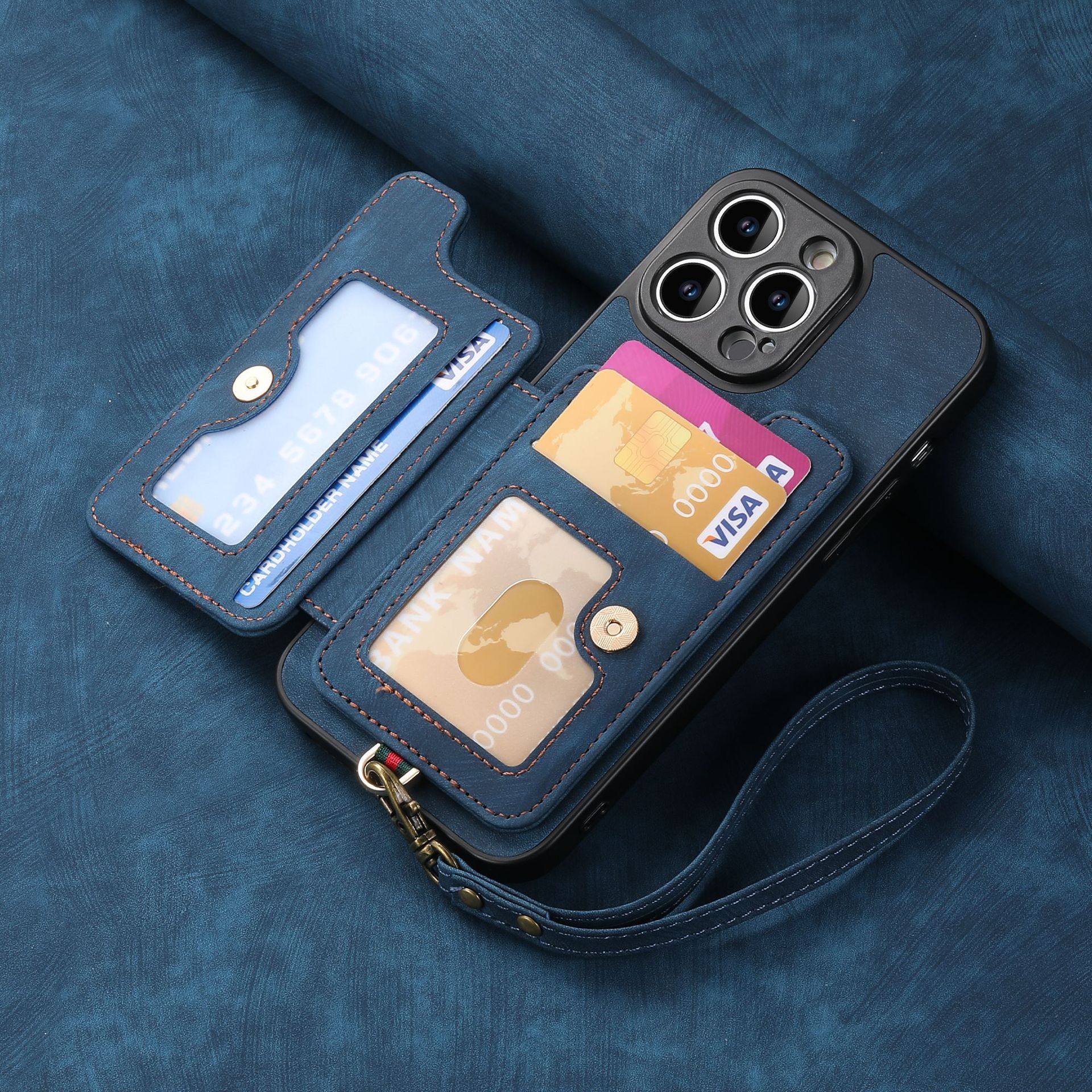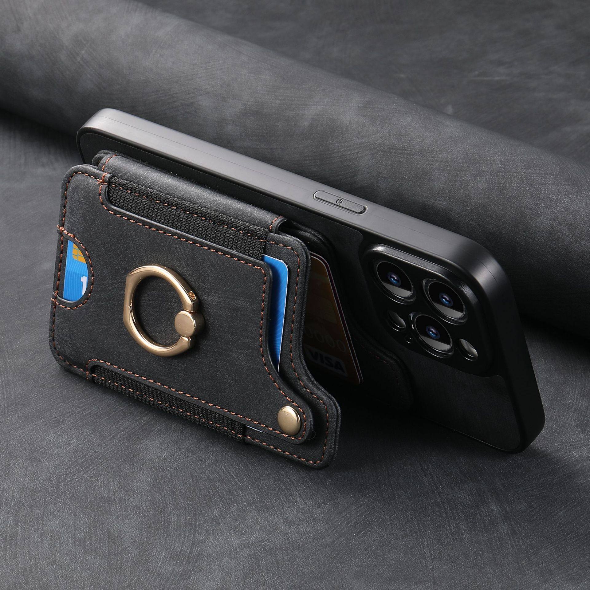 Suitable for Iphone17 Mobile Phone Leather Case Rfid Anti-Theft Brush Ring Buckle Lanyard Multi-Function Card Holder Apple Mobile Phone