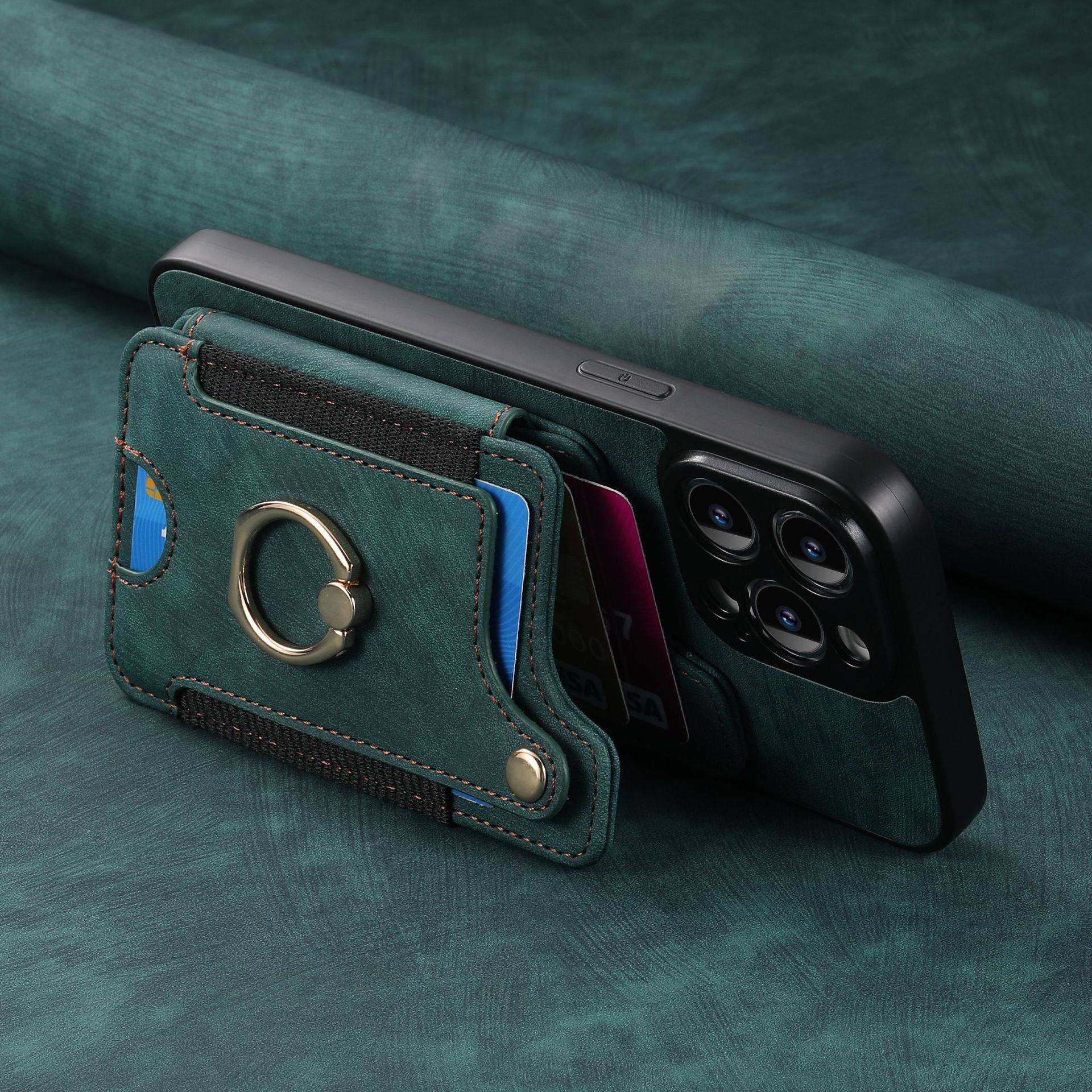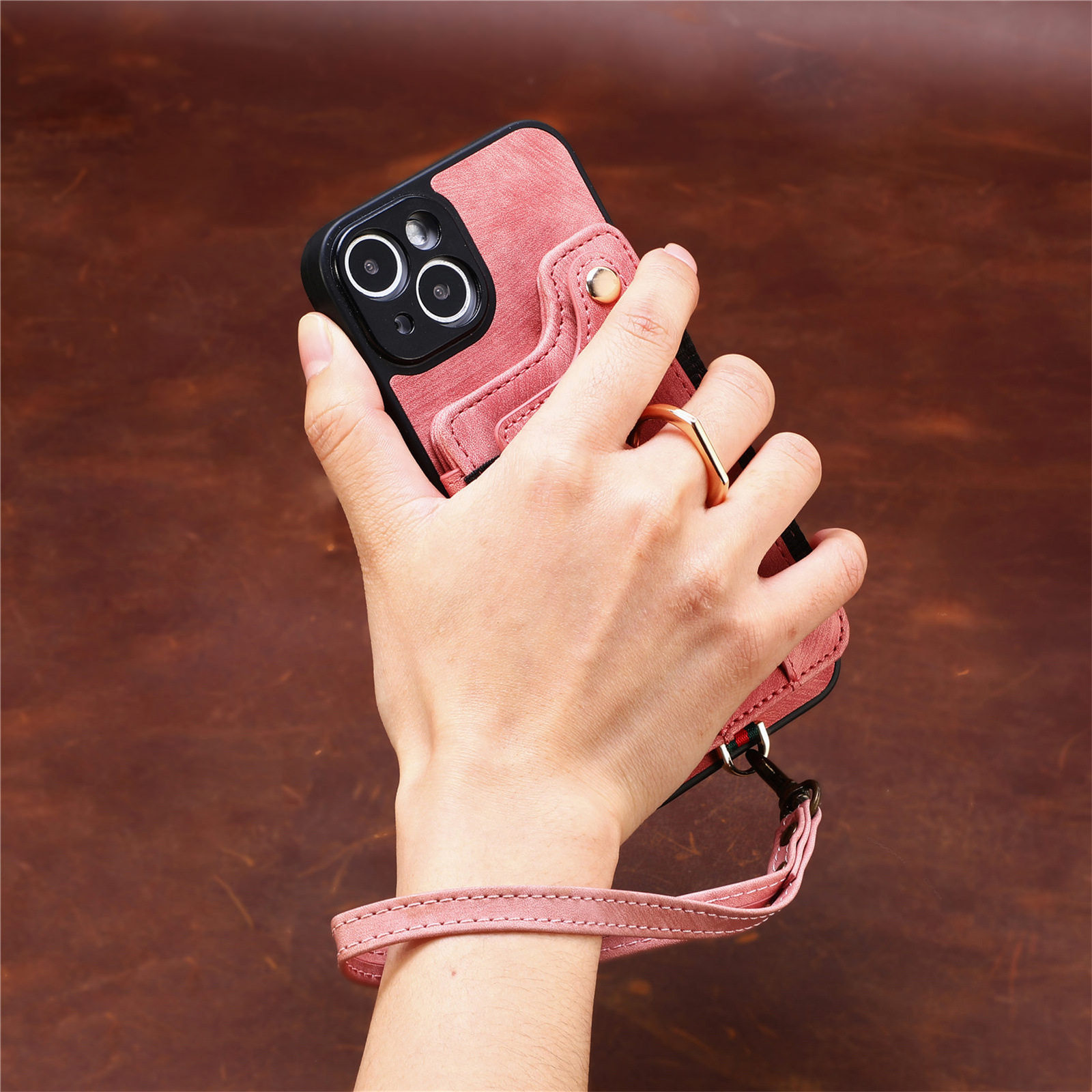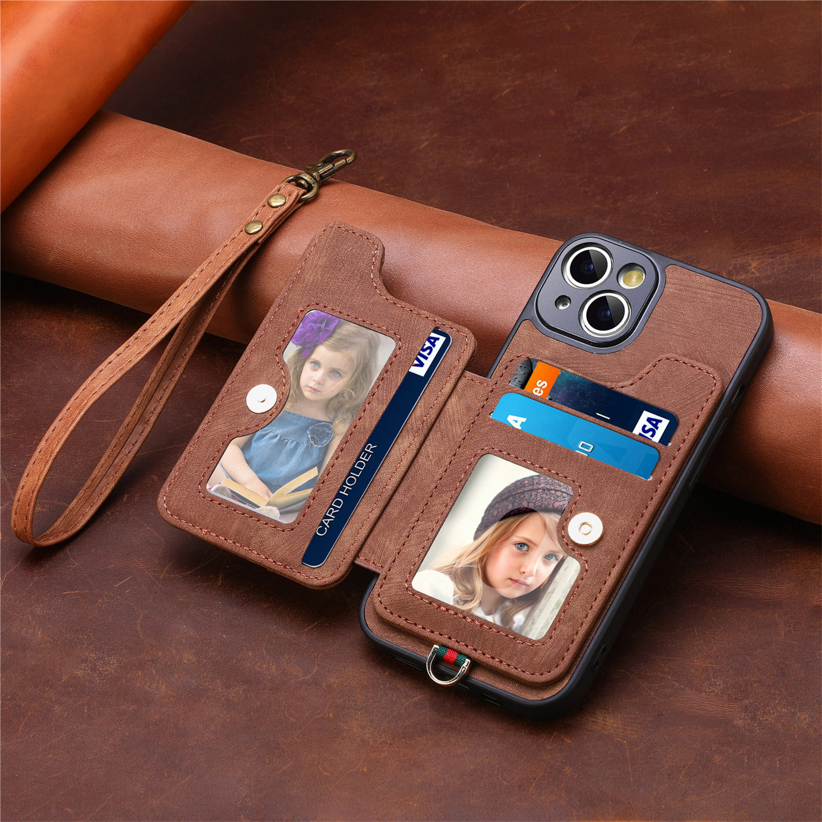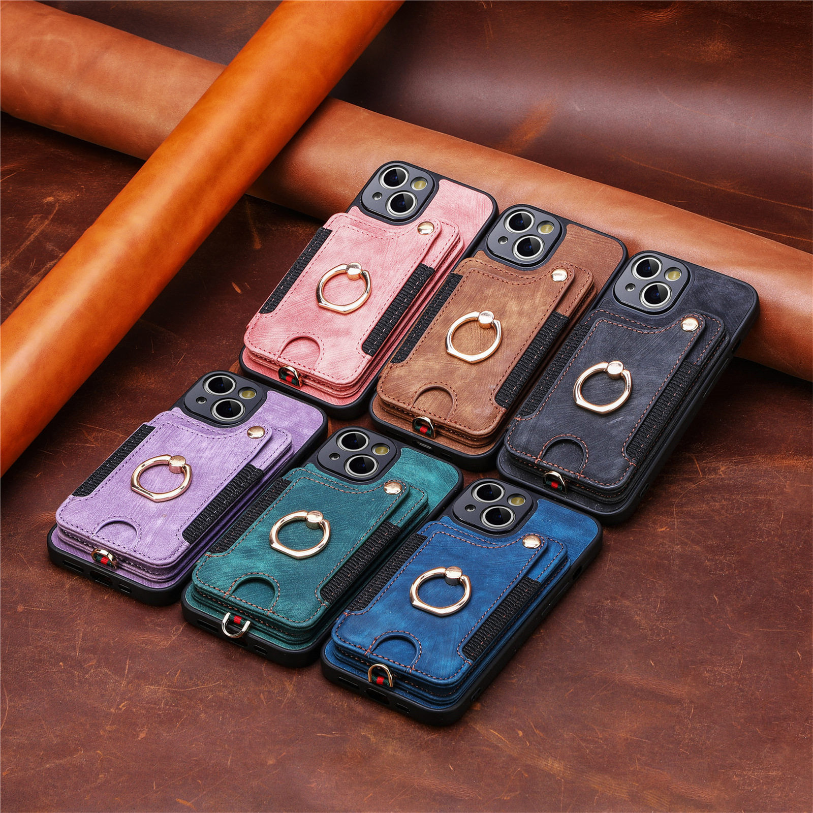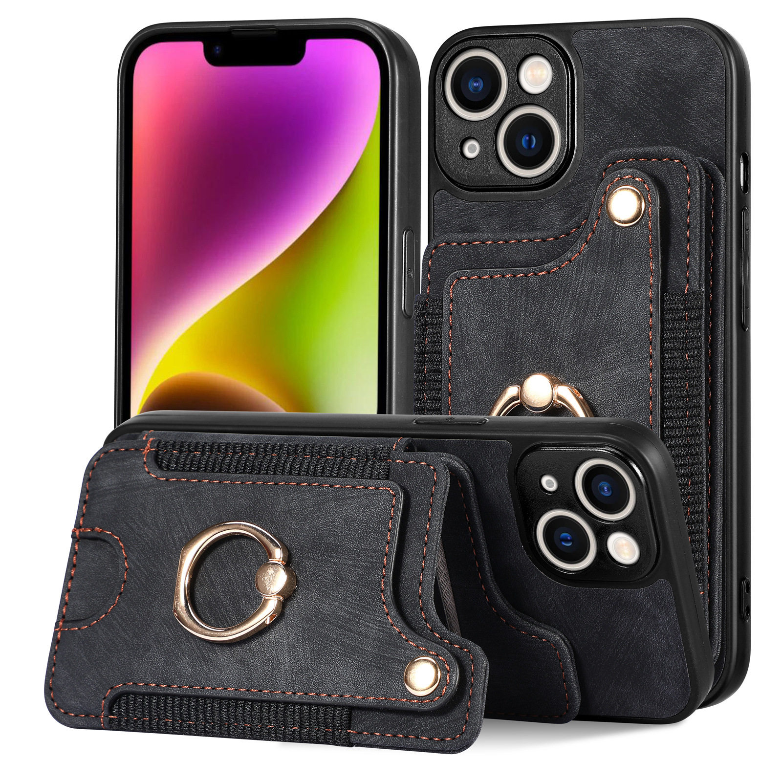 Suitable for Iphone17 Mobile Phone Leather Case Rfid Anti-Theft Brush Ring Buckle Lanyard Multi-Function Card Holder Apple Mobile Phone