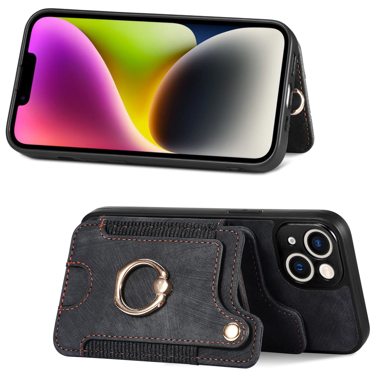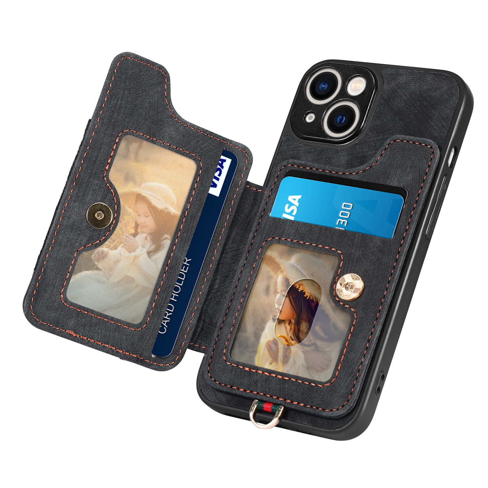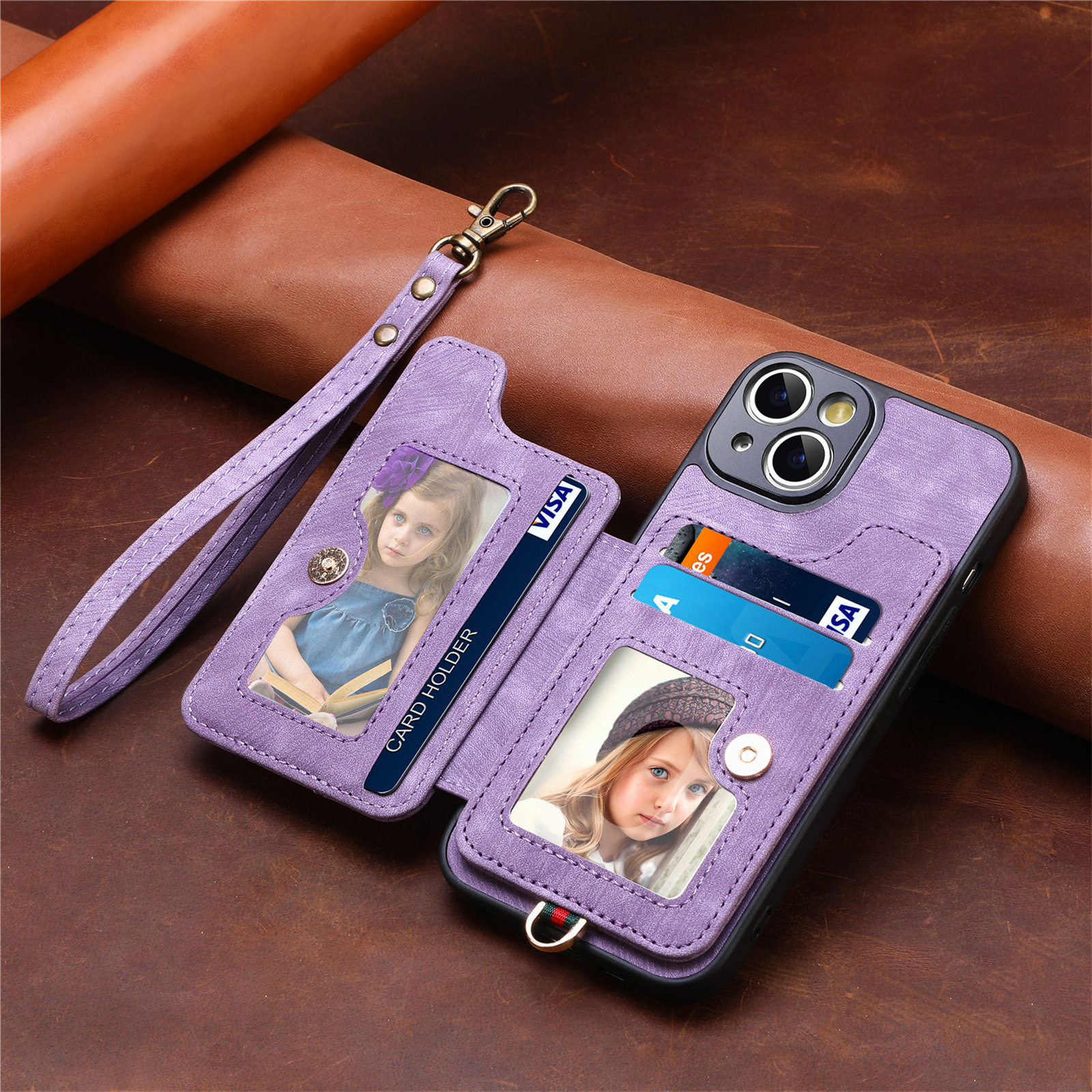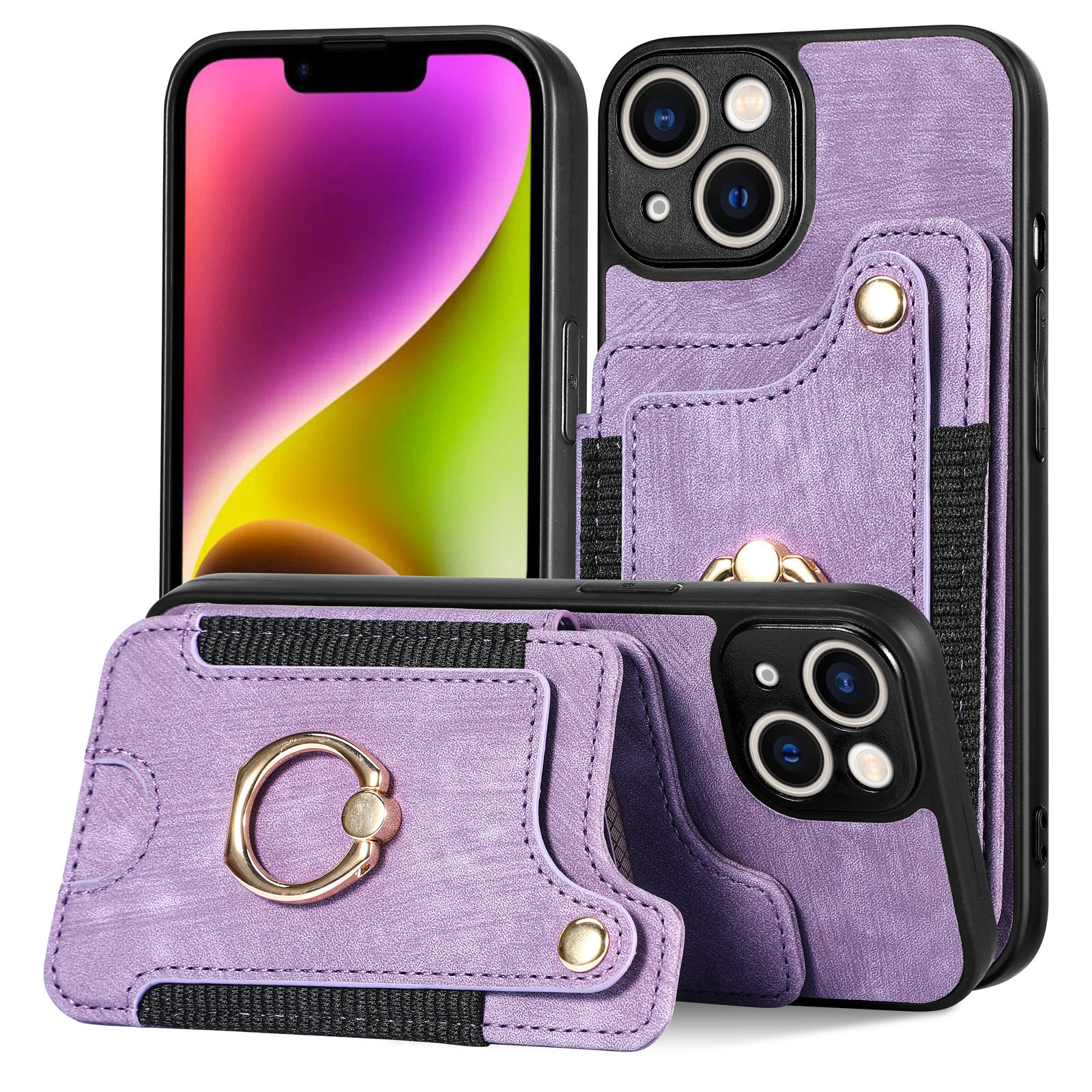 Suitable for Iphone17 Mobile Phone Leather Case Rfid Anti-Theft Brush Ring Buckle Lanyard Multi-Function Card Holder Apple Mobile Phone