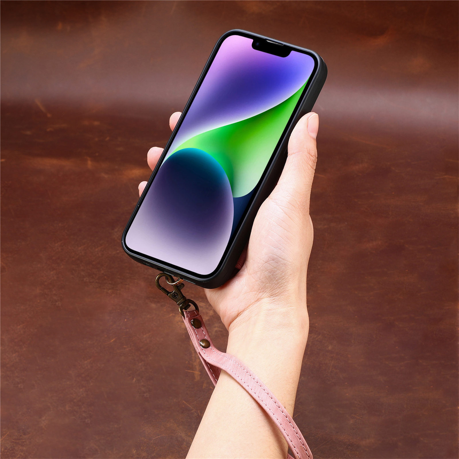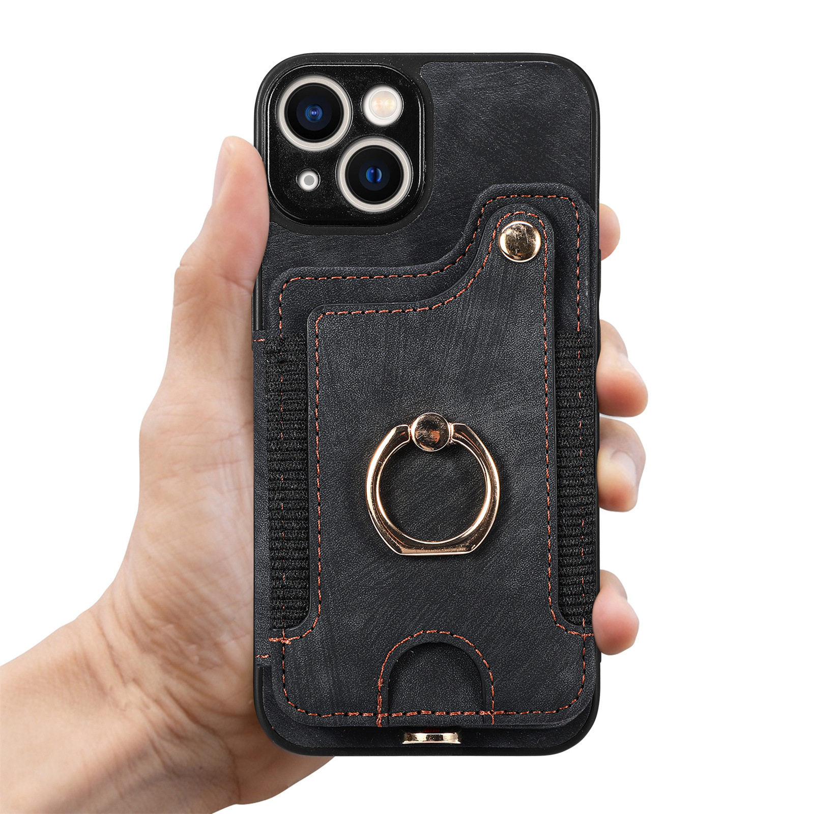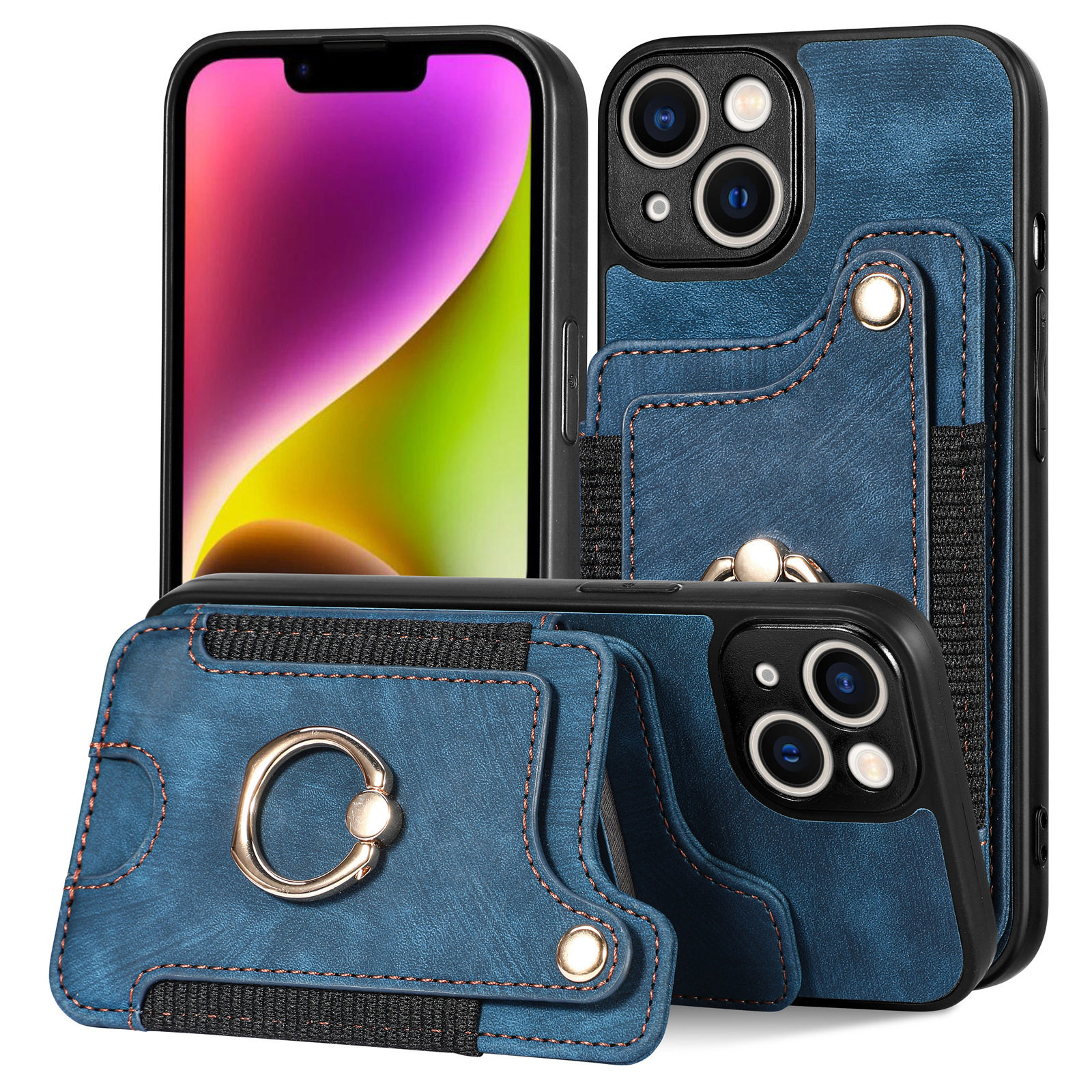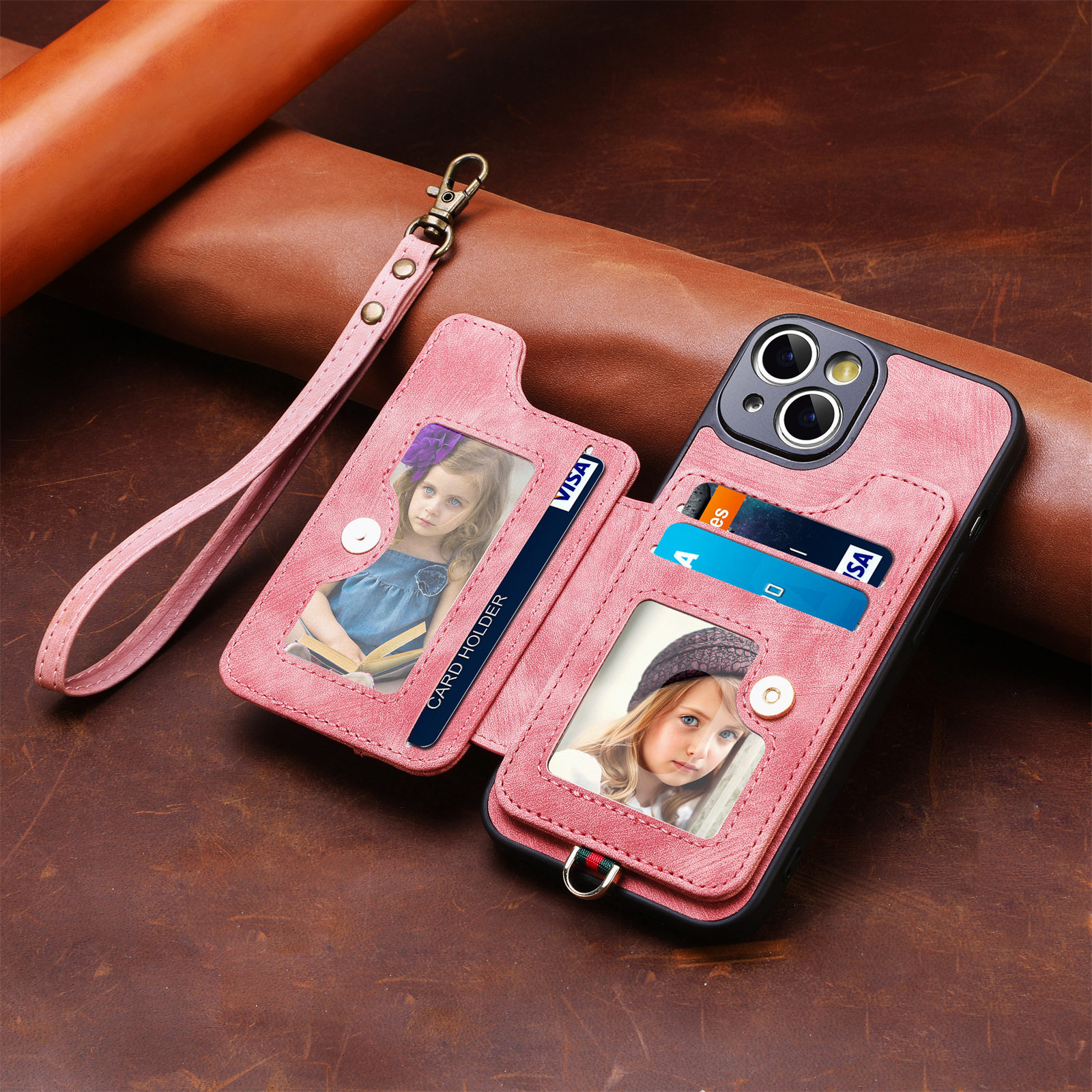 Suitable for Iphone17 Mobile Phone Leather Case Rfid Anti-Theft Brush Ring Buckle Lanyard Multi-Function Card Holder Apple Mobile Phone