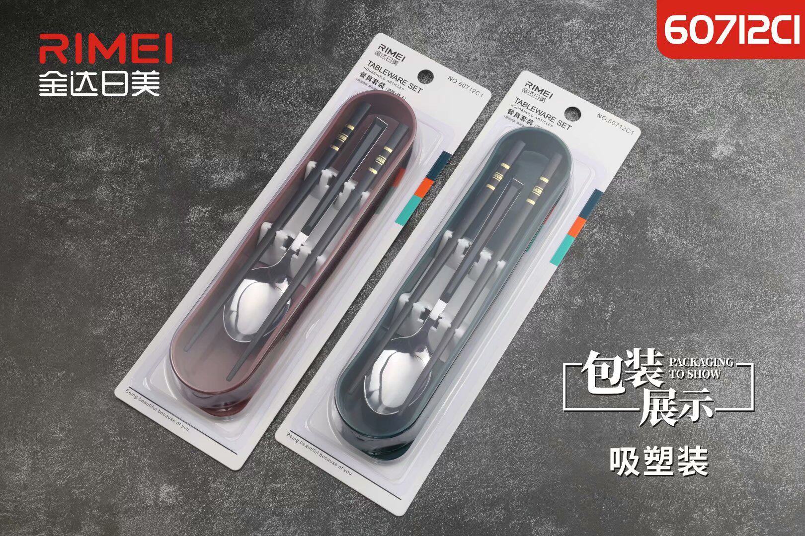 Jinda rimei stainless steel tableware suit chopsticks spoon Fork student cute creative portable tableware three-piece set