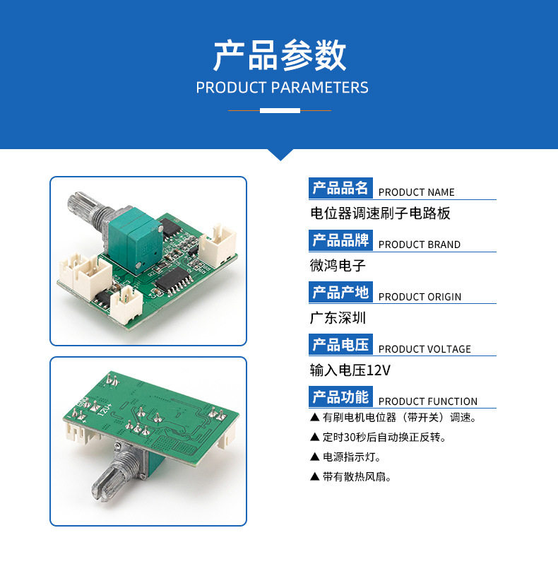 Potentiometer speed control brush circuit board scheme design 12v Brush Motor potentiometer speed control PCBA development