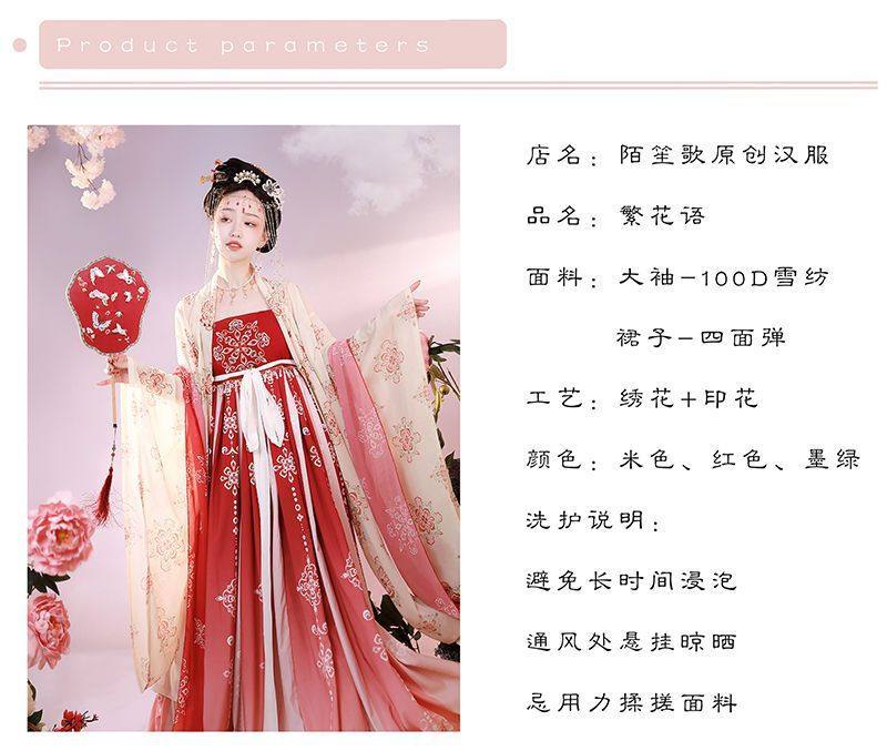 Stranger Shengge Original Hanfu Women's Chebula Skirt [Fanhua Language] Big Sleeve Shirt Tang Style Embroidery Restoration Super Fairy Spring and Summer