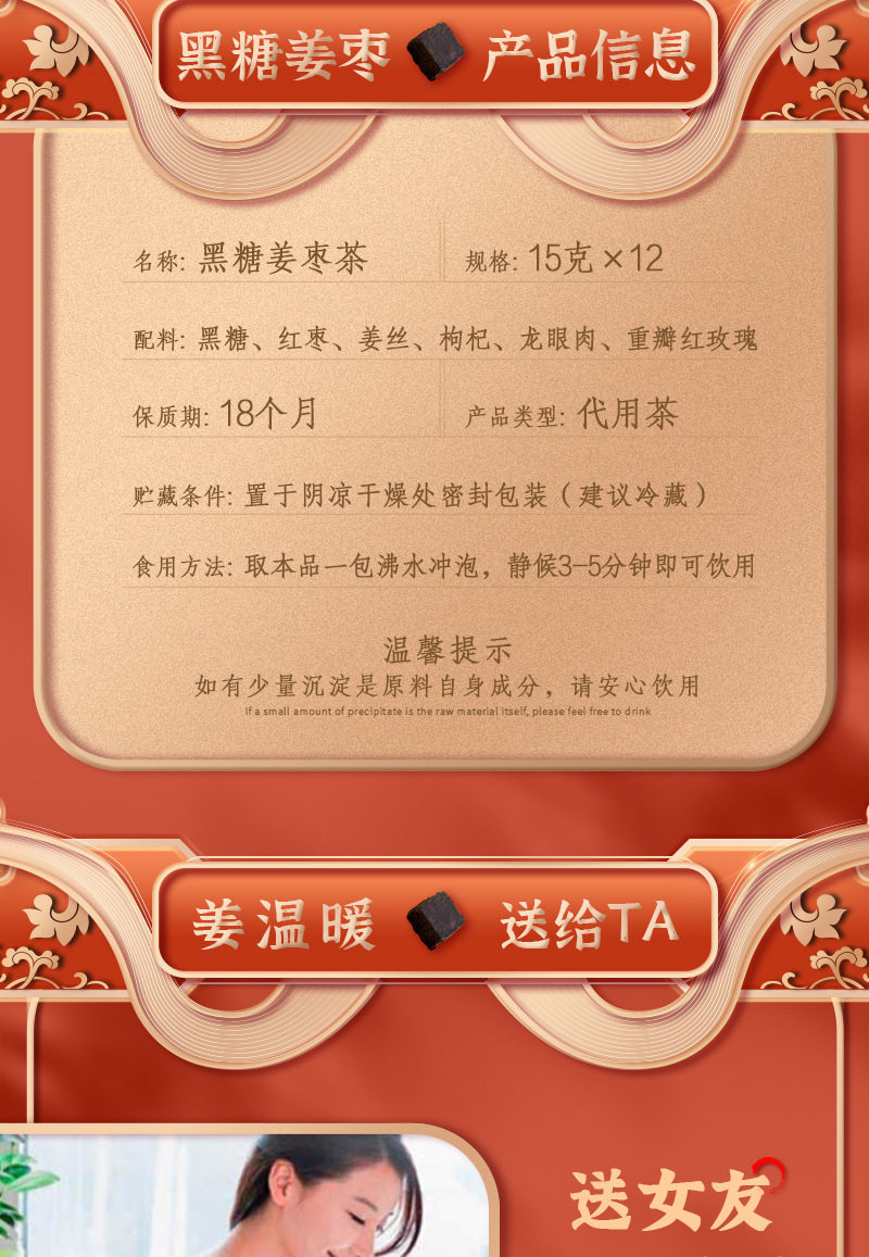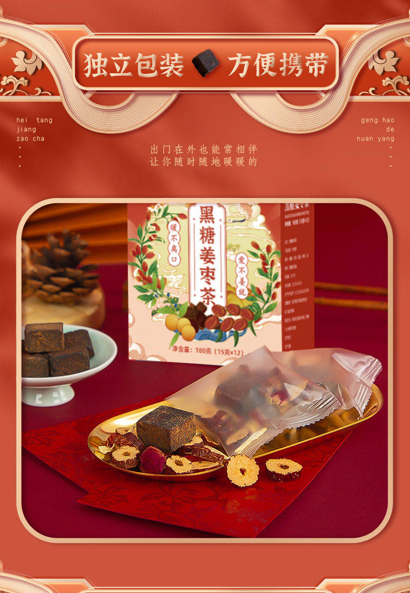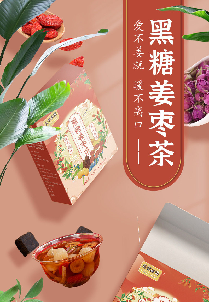 | Packaging specifications | Brown sugar ginger jujube tea 15g * 12 packs/box |