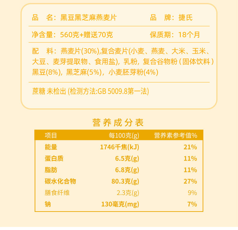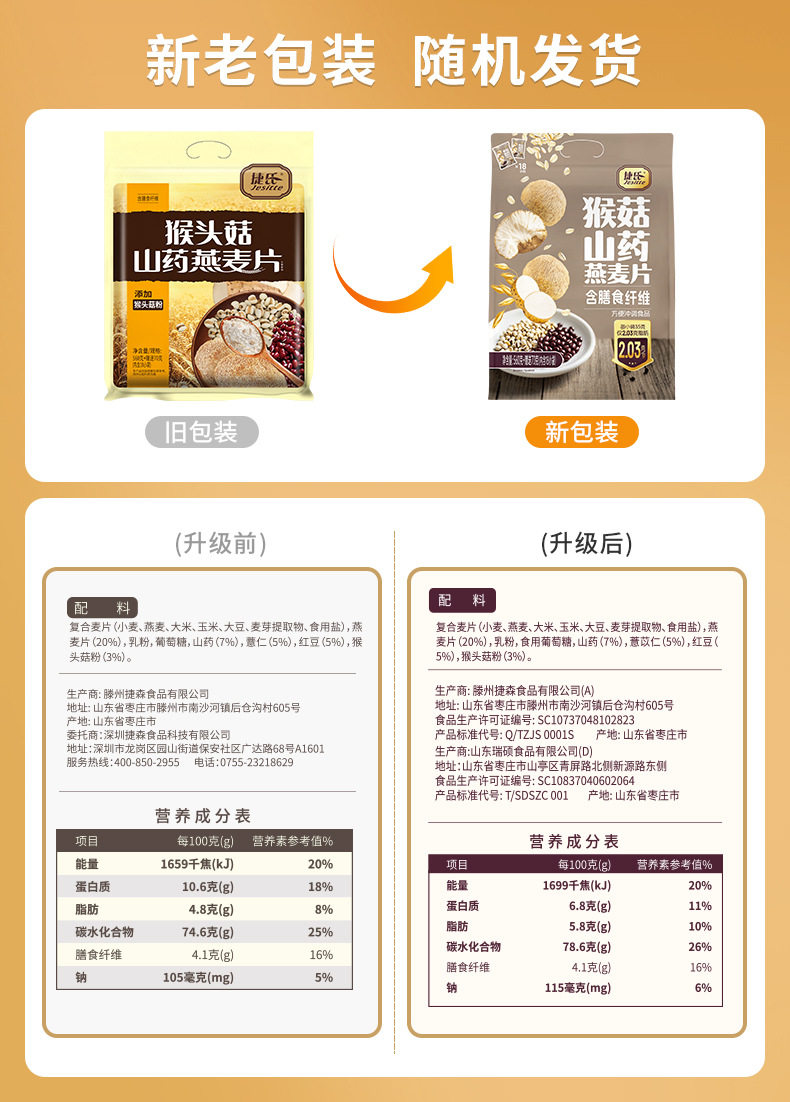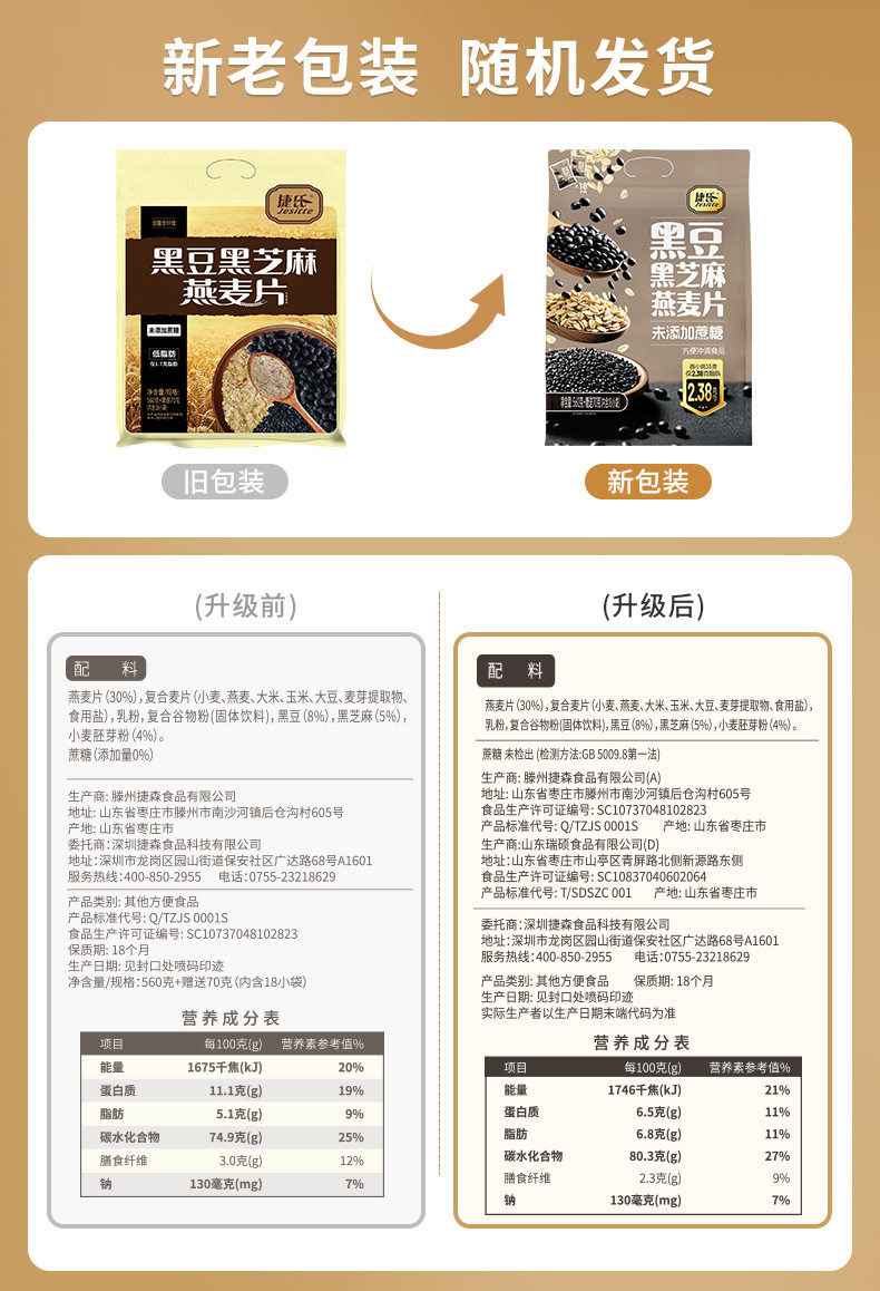 | Packaging specifications | Hericium Erinella oatmeal 630g,Black bean and black sesame oatmeal 630g |