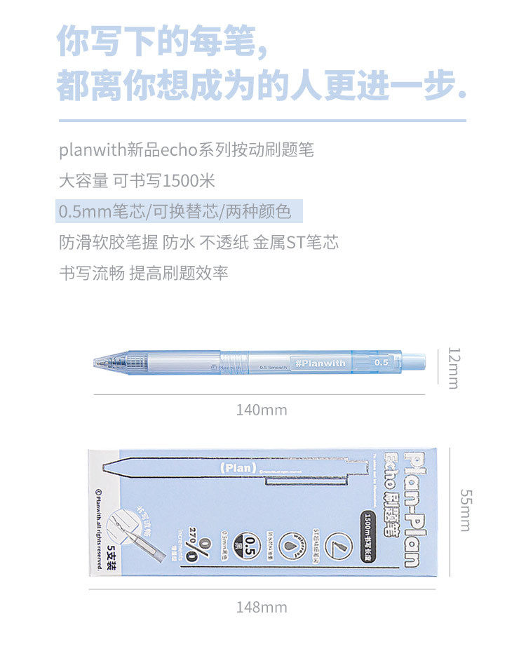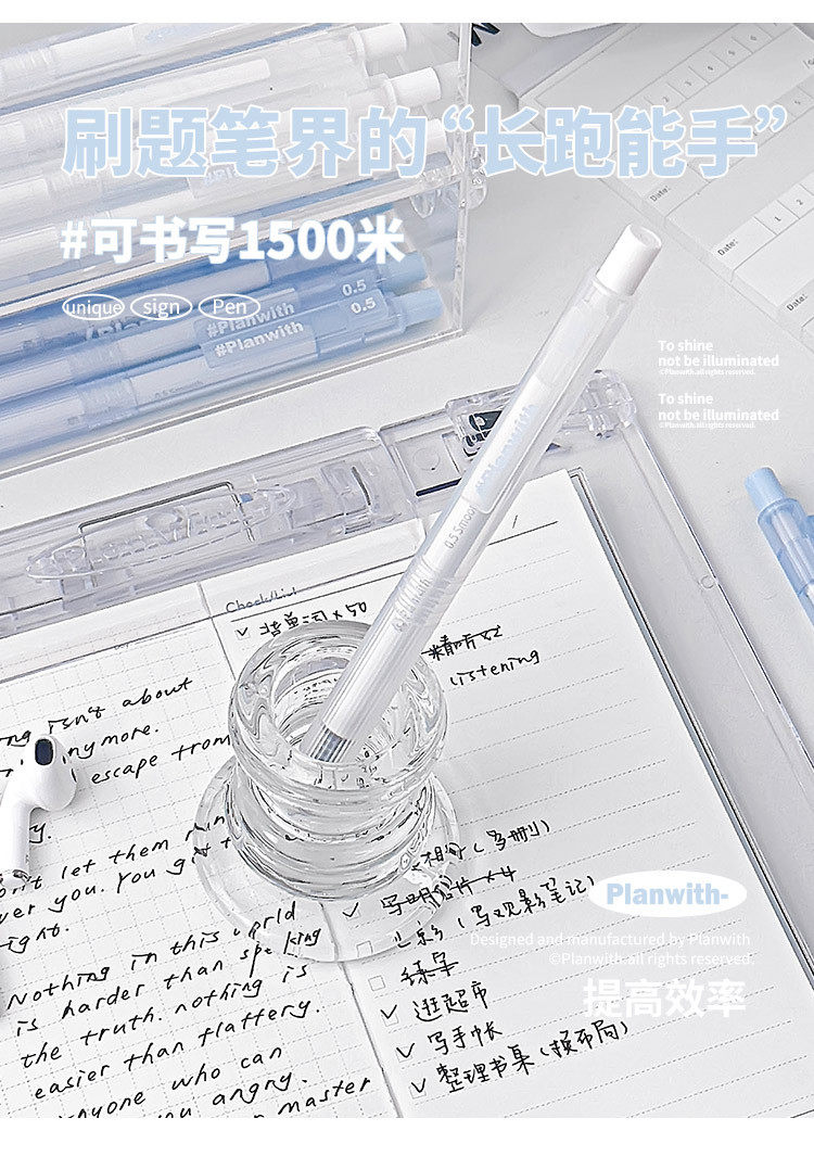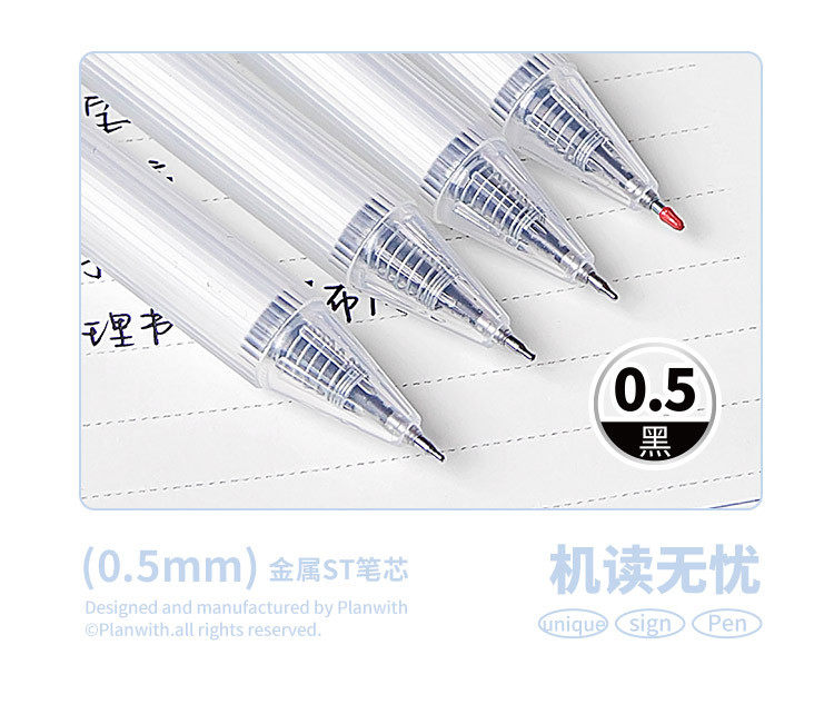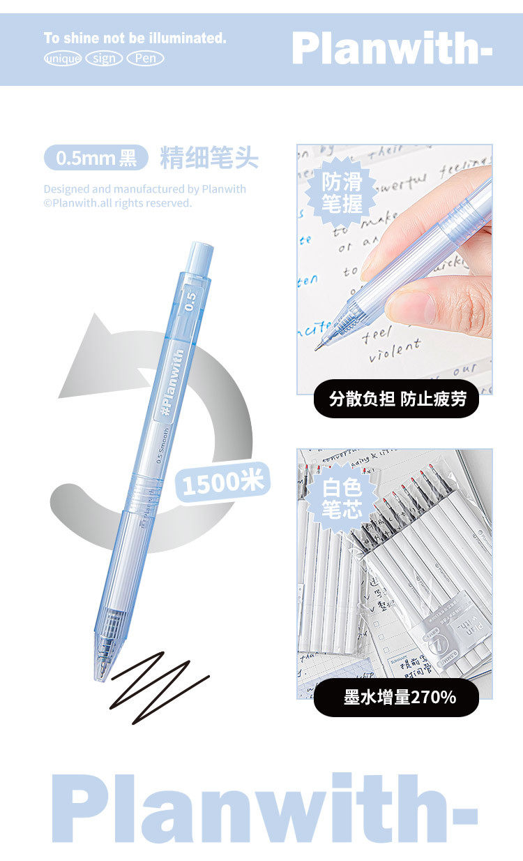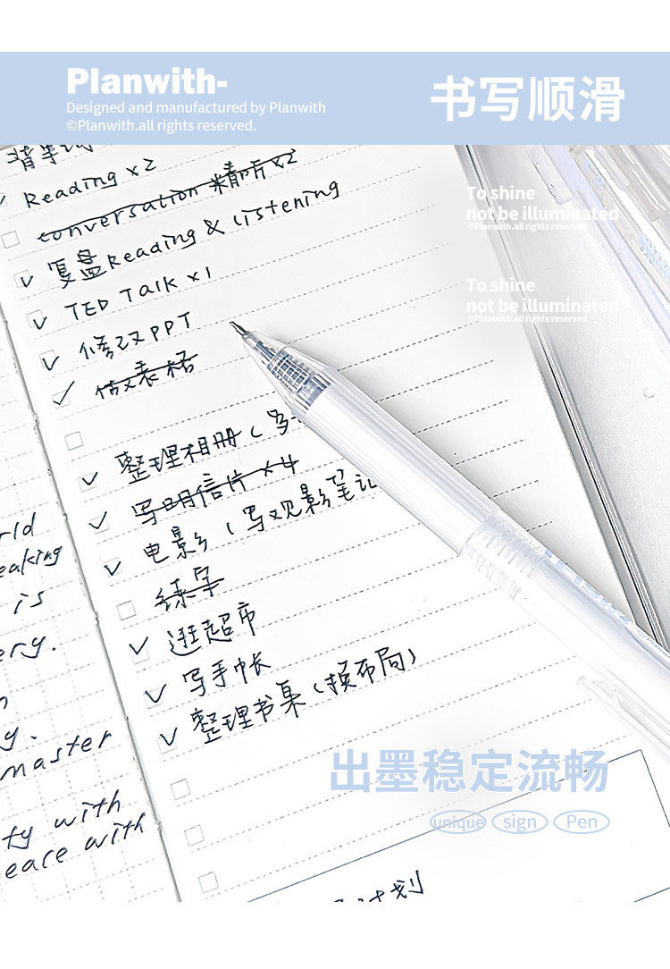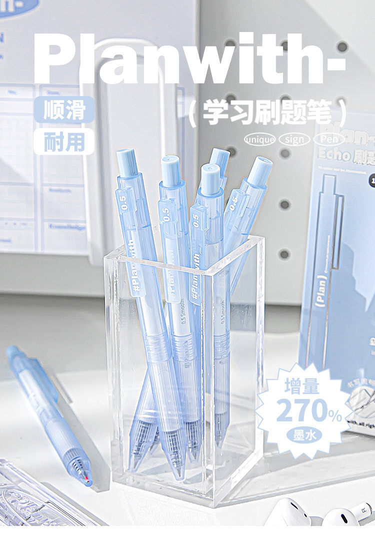Planwith Learning Brush Pen ins Boxed Transparent Gel Pen Black 0.5mm Student Test Sign Pen