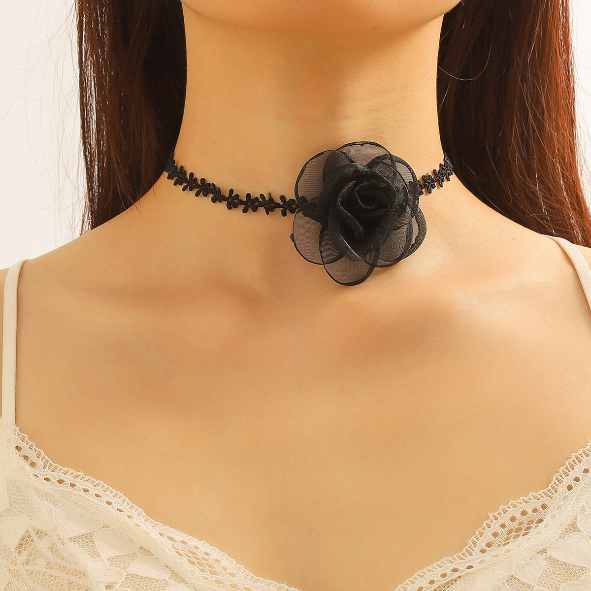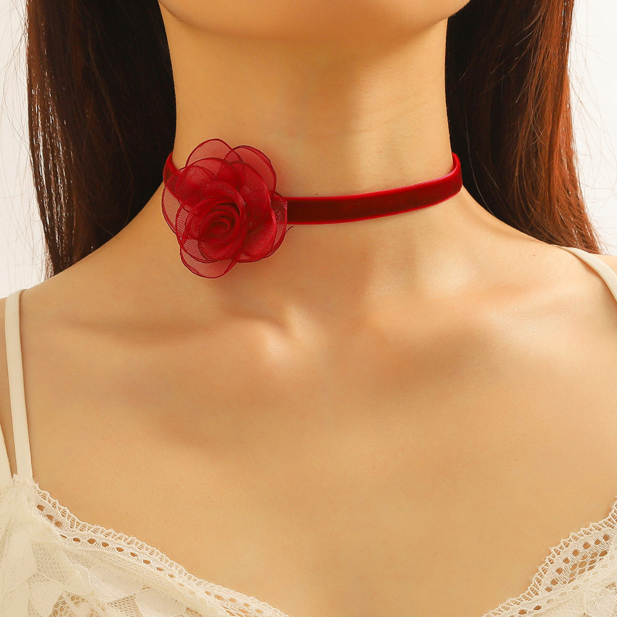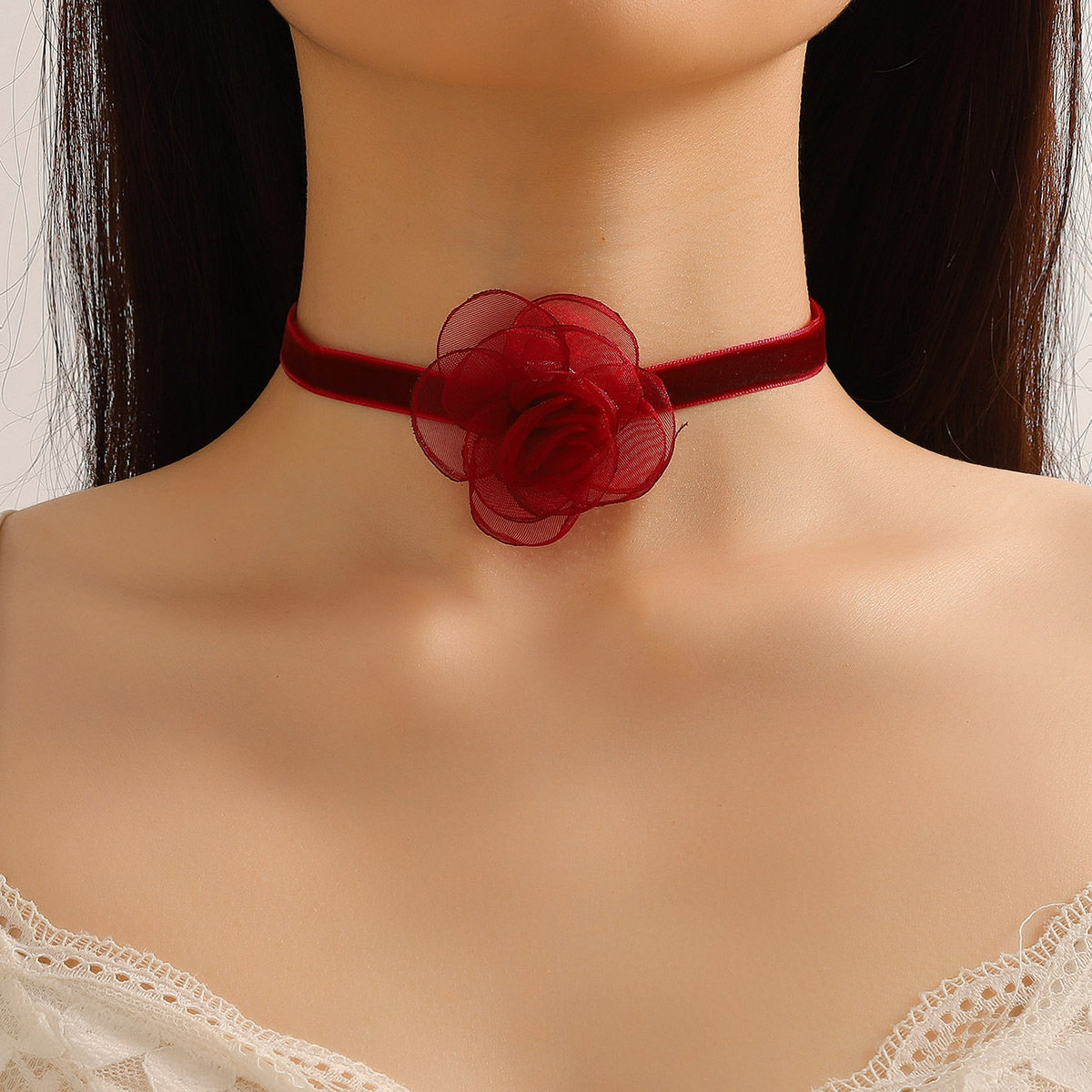2023 New Collar Women's Necklace Lace Black Retro Necklace Light Luxury Niche Burgundy Velvet Camellia Clavicle Chain