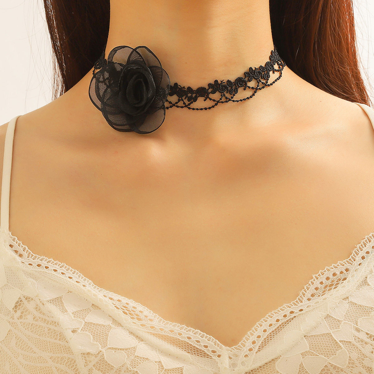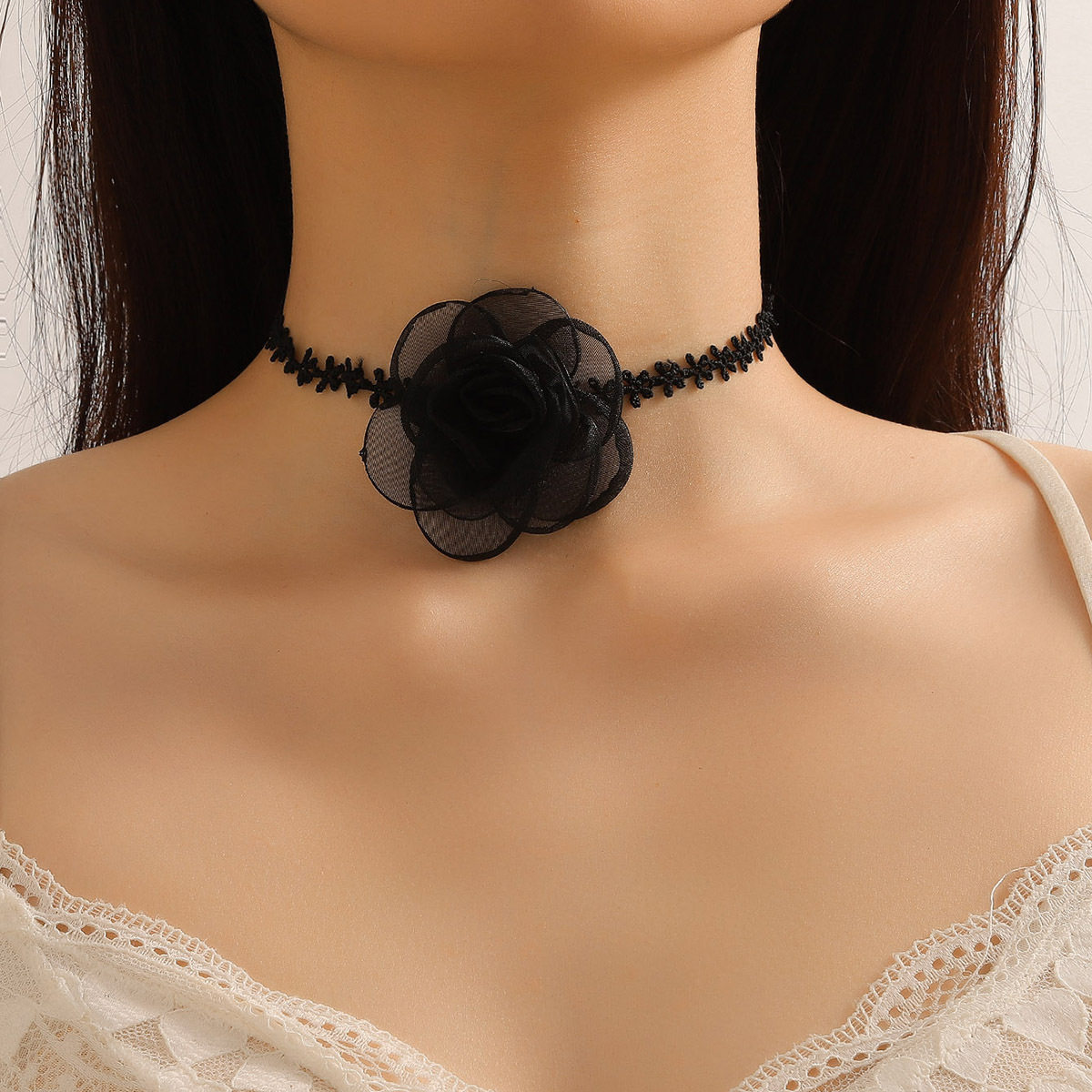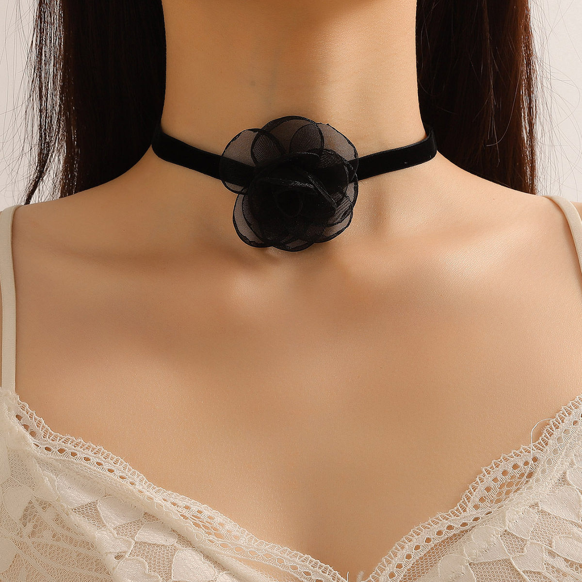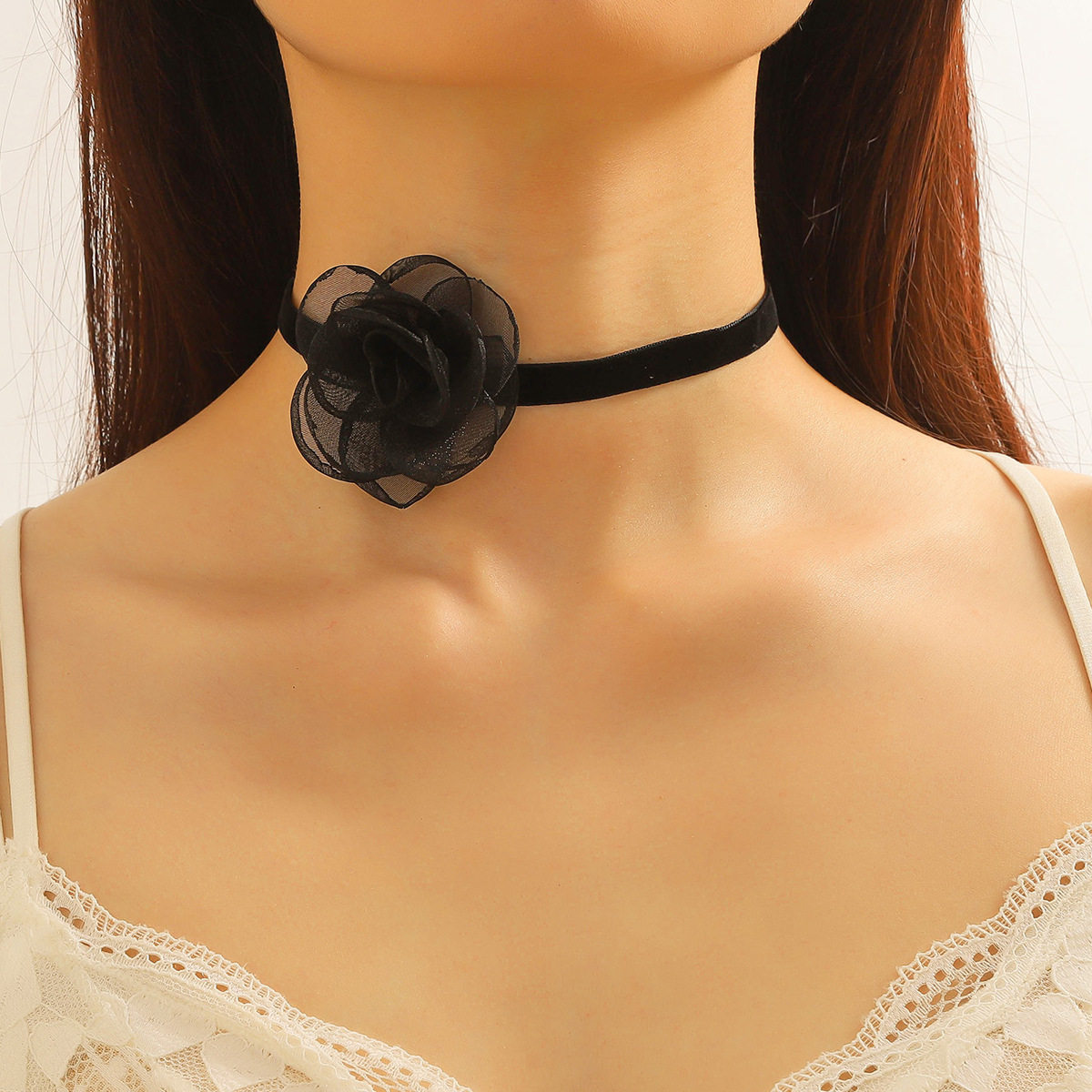 2023 New Collar Women's Necklace Lace Black Retro Necklace Light Luxury Niche Burgundy Velvet Camellia Clavicle Chain
