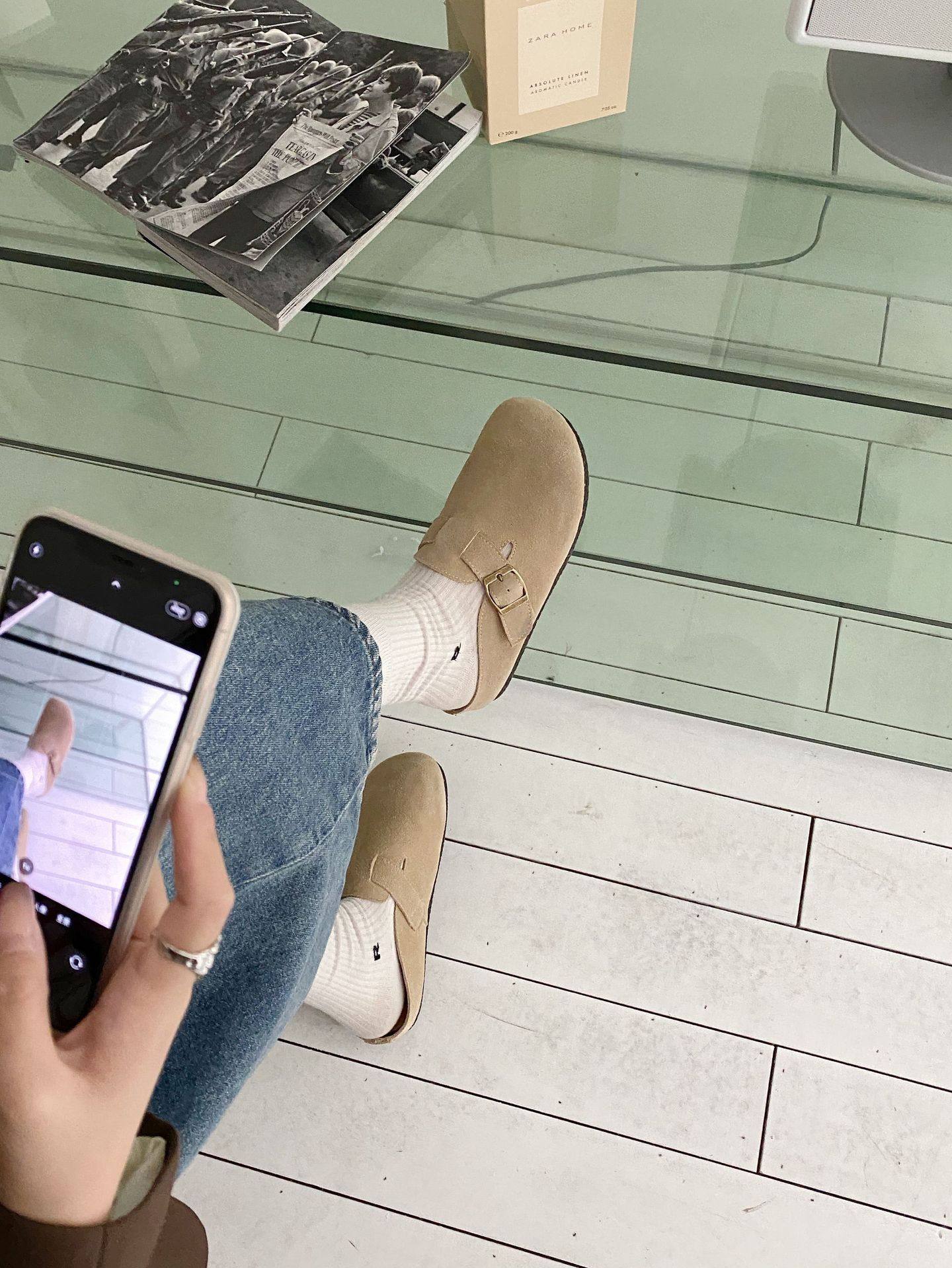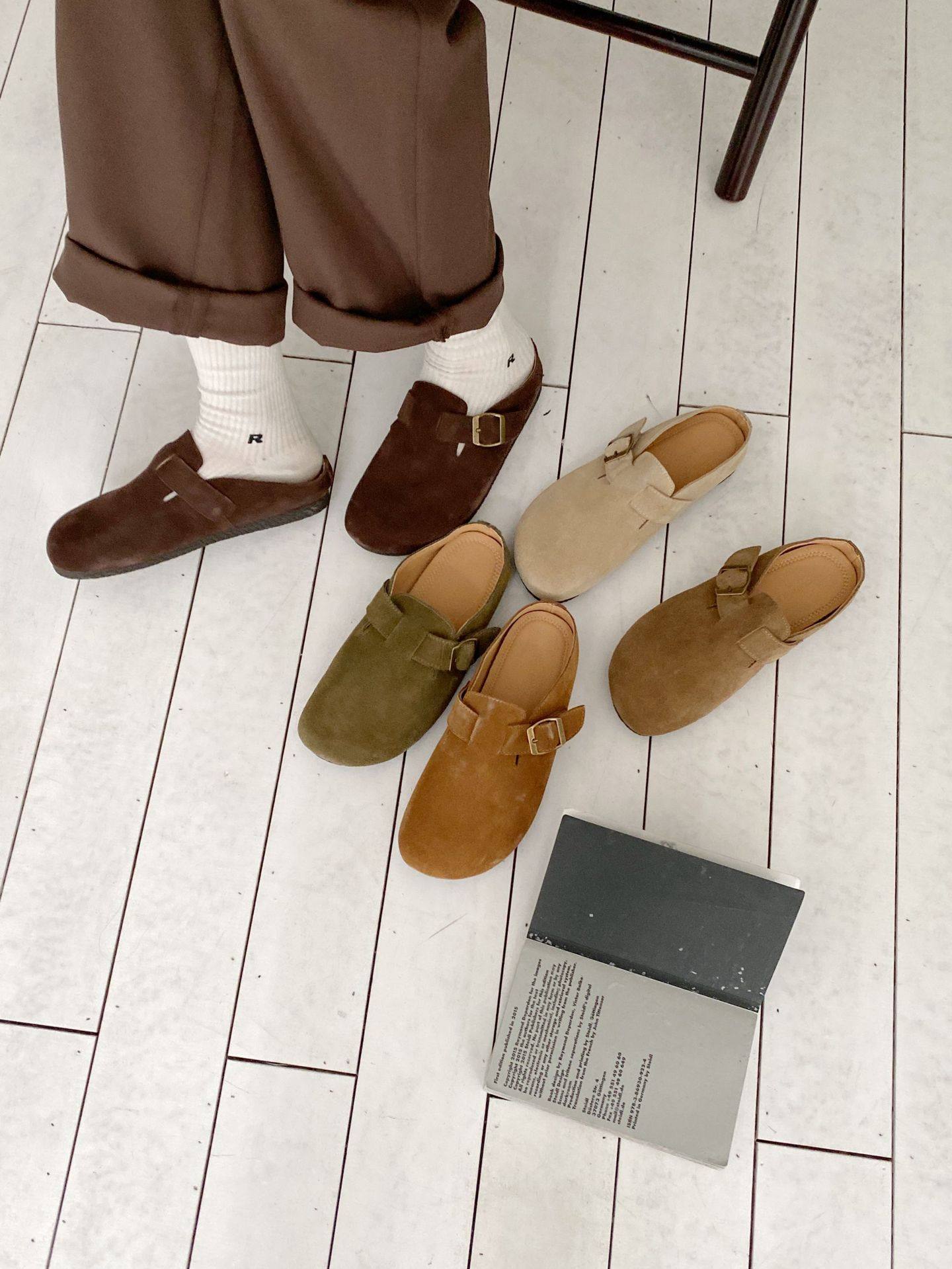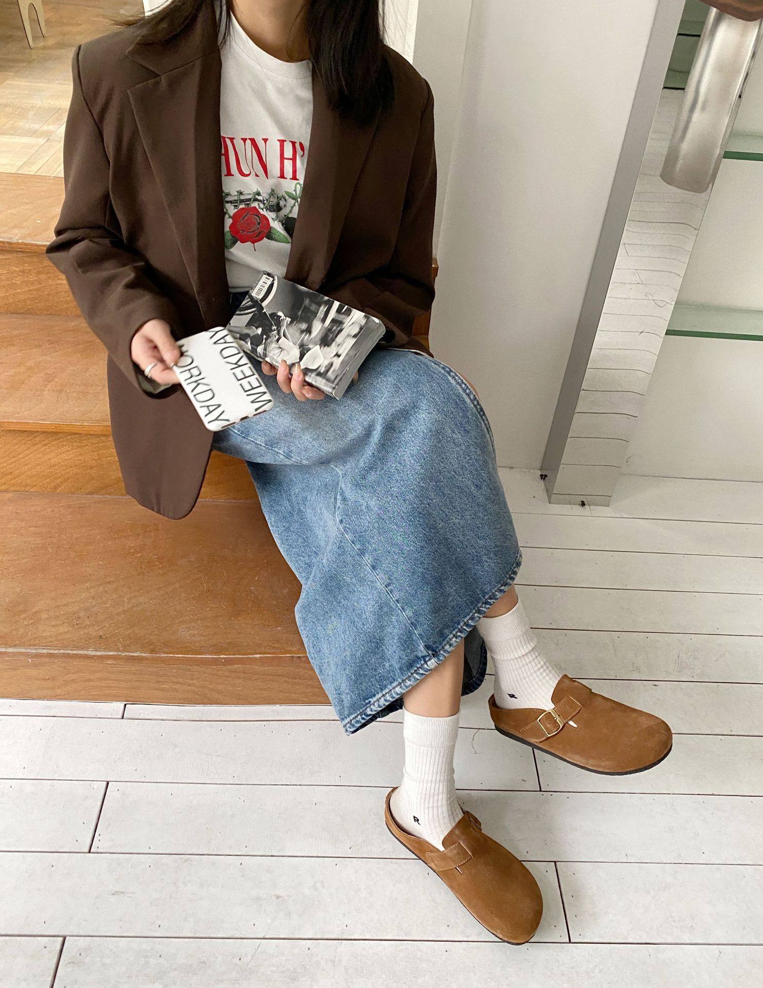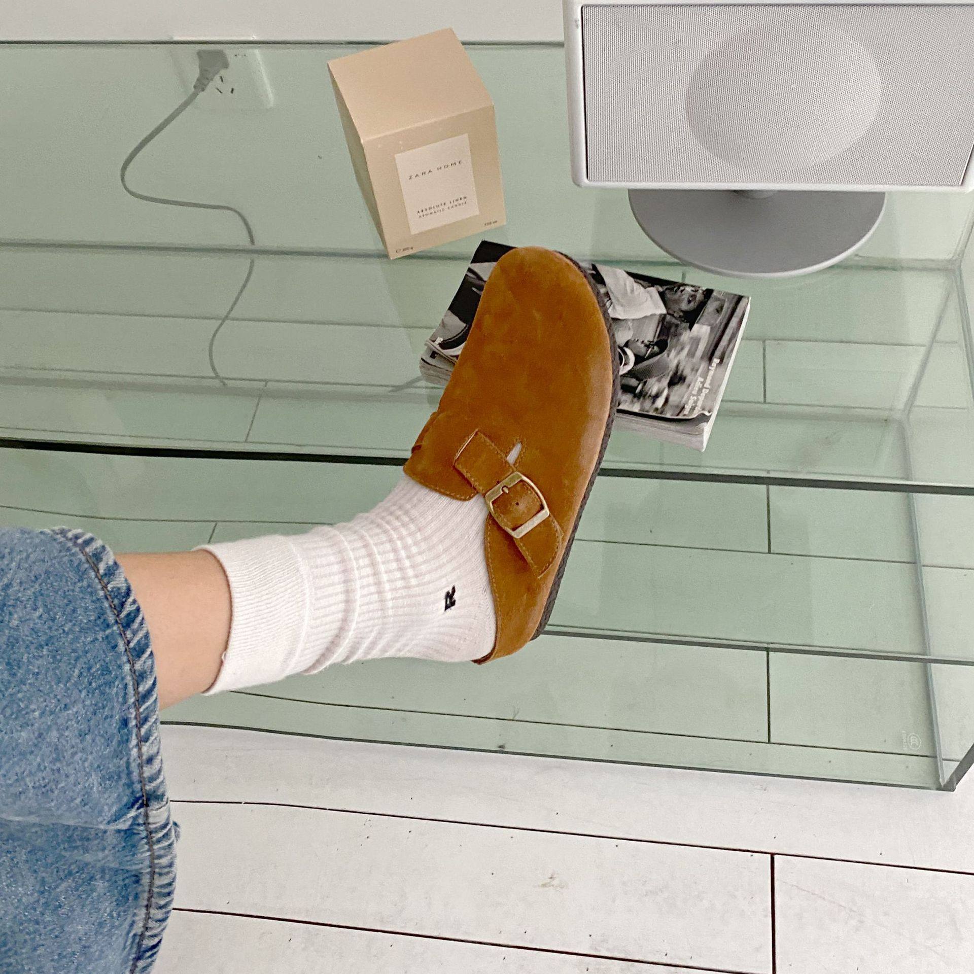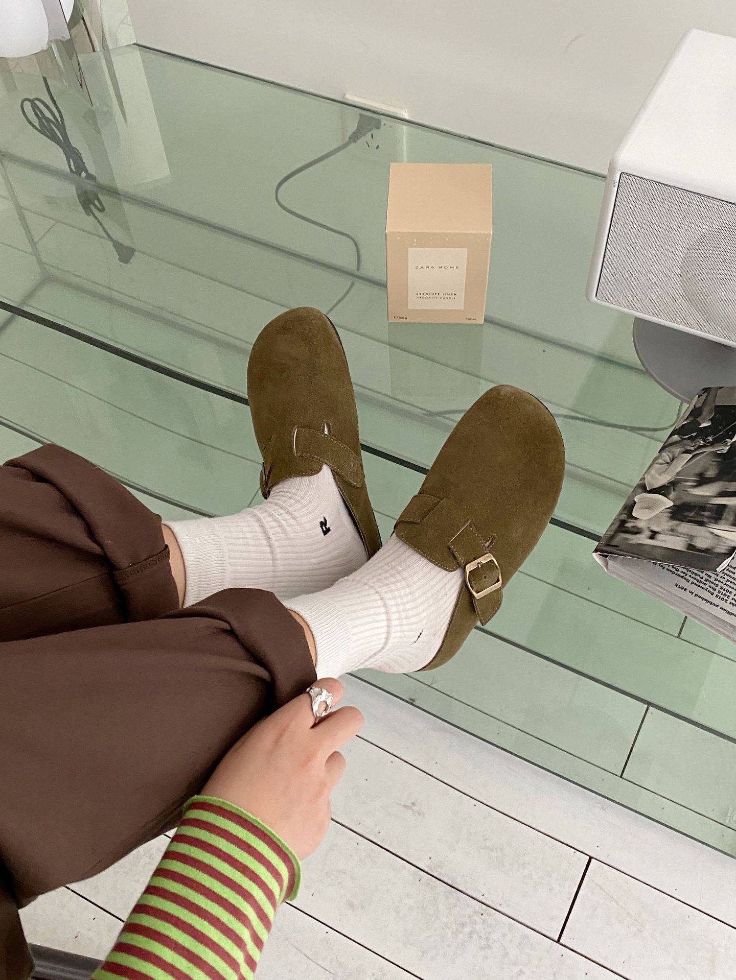 Genuine Leather Cow Suede Birkenstock Retro 2023 Autum New Flats Soft Sole Versatile One-Leg Toe Half Slippers