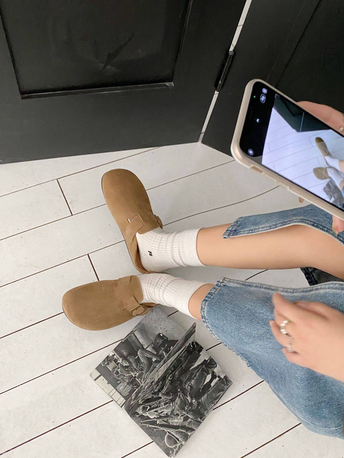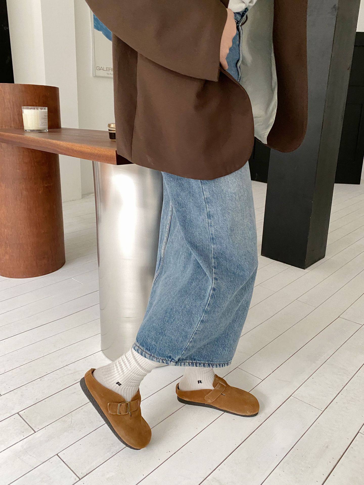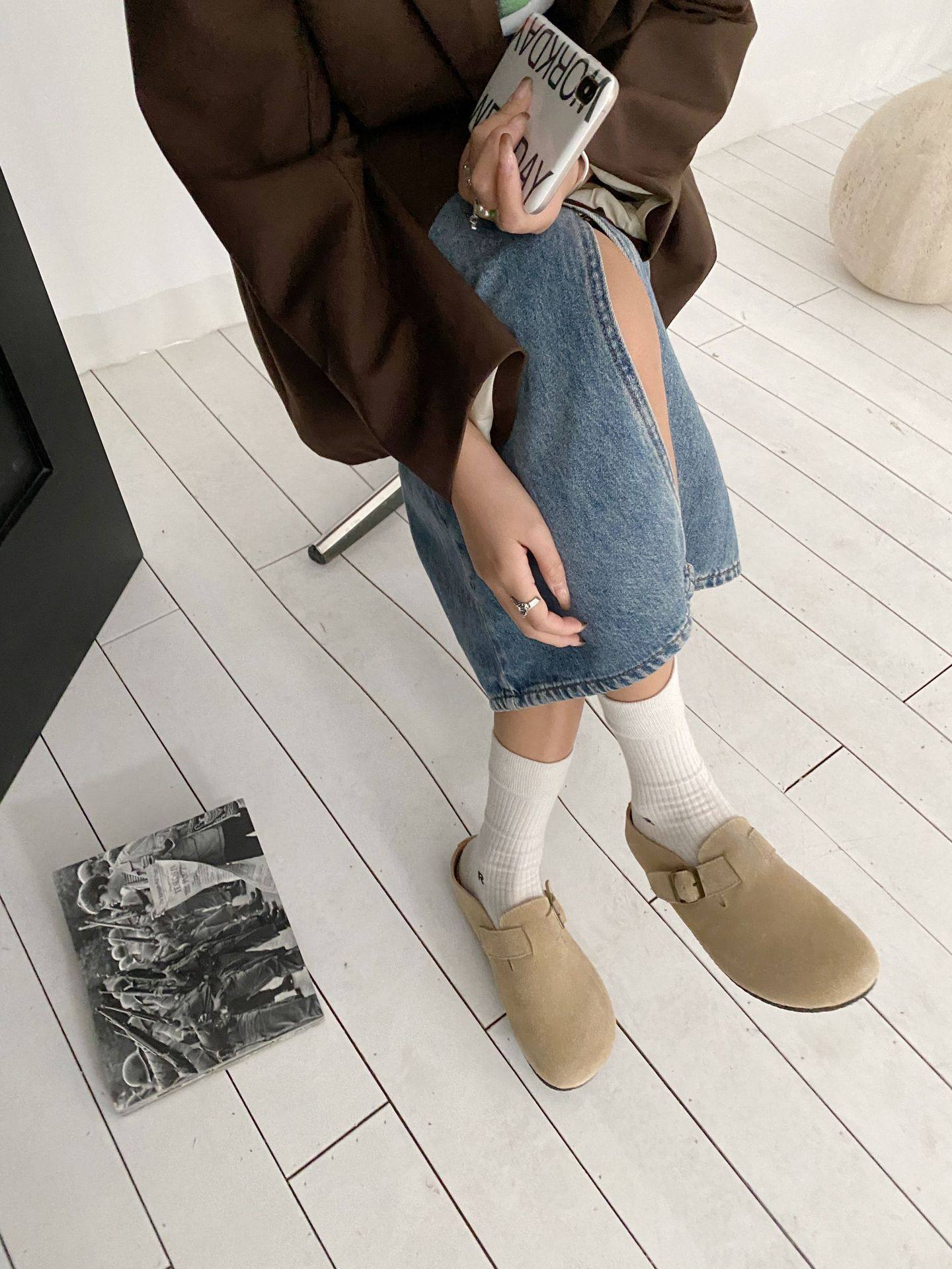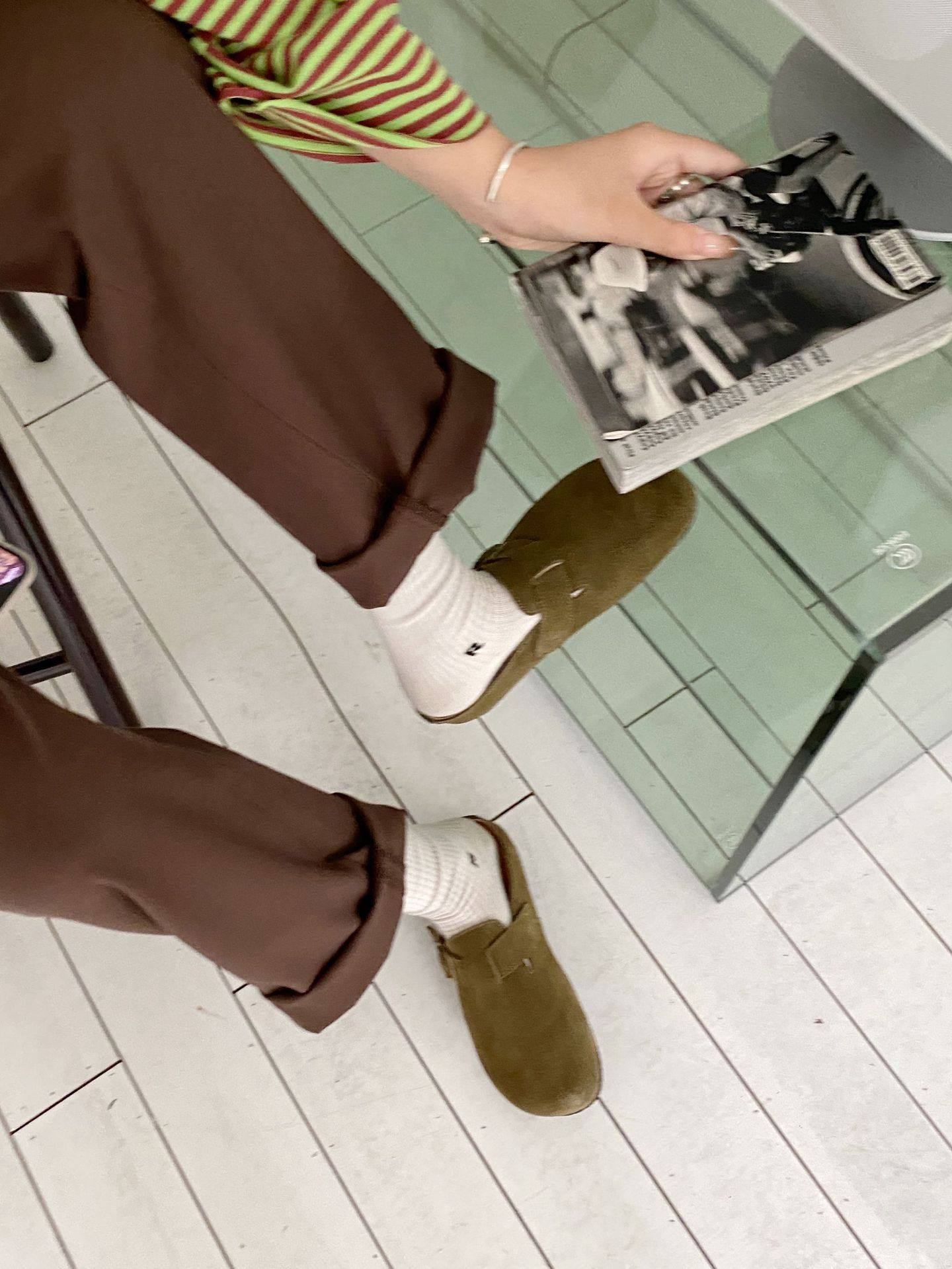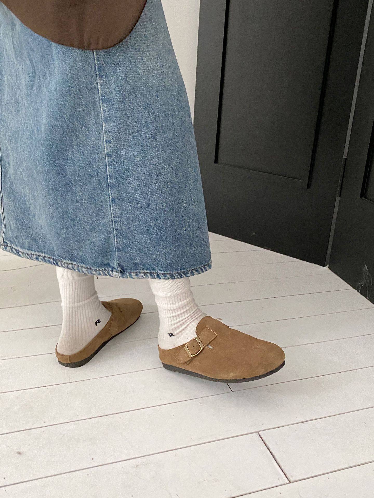 Genuine Leather Cow Suede Birkenstock Retro 2023 Autum New Flats Soft Sole Versatile One-Leg Toe Half Slippers