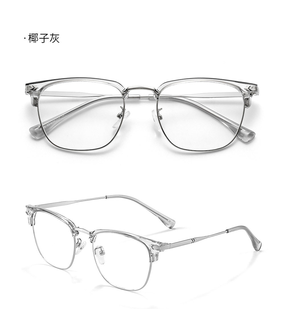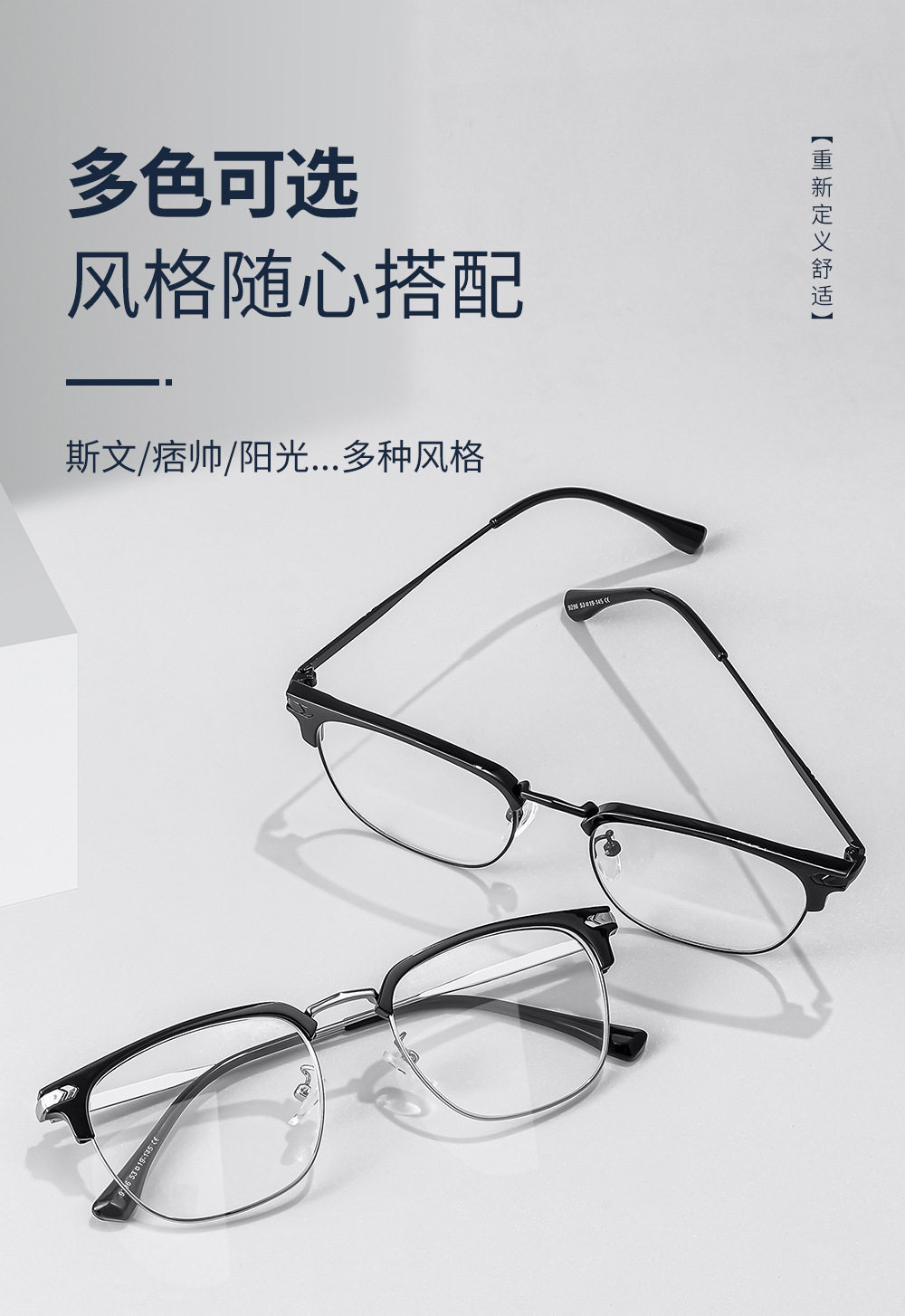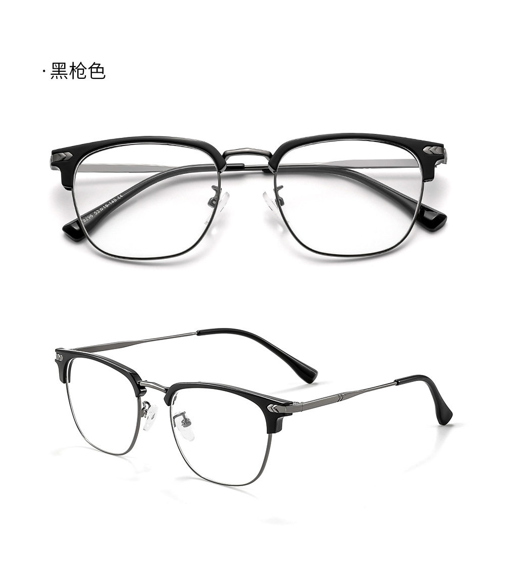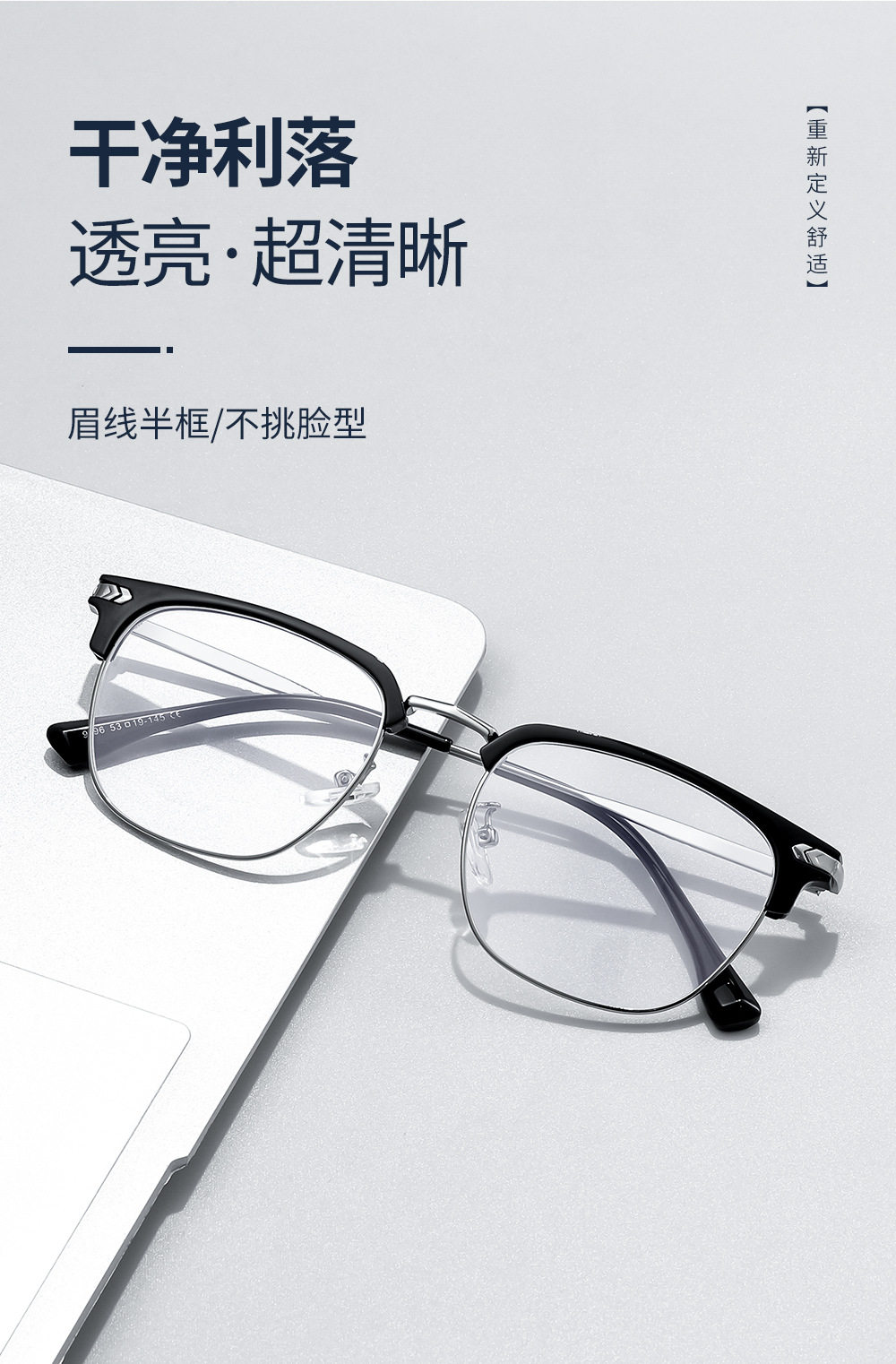 Half-frame glasses men's anti-blue light flat light Danyang glasses frame glasses eyebrow glasses frame myopia glasses pure titanium 122601