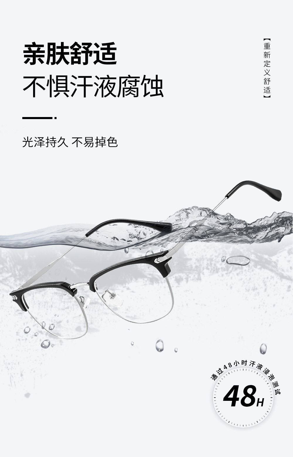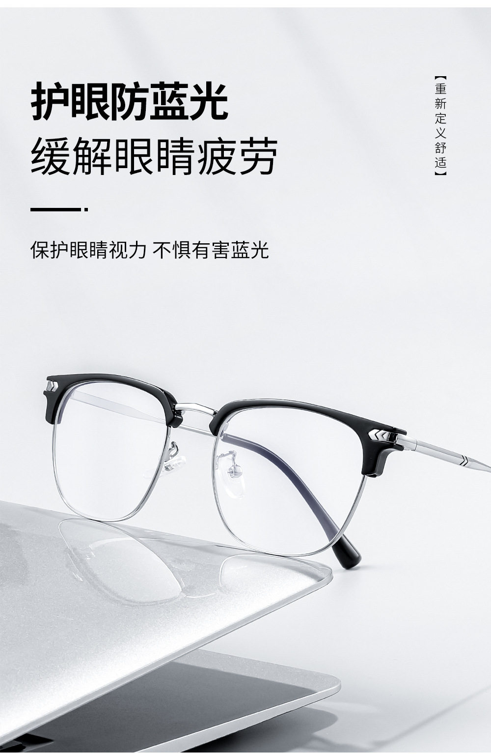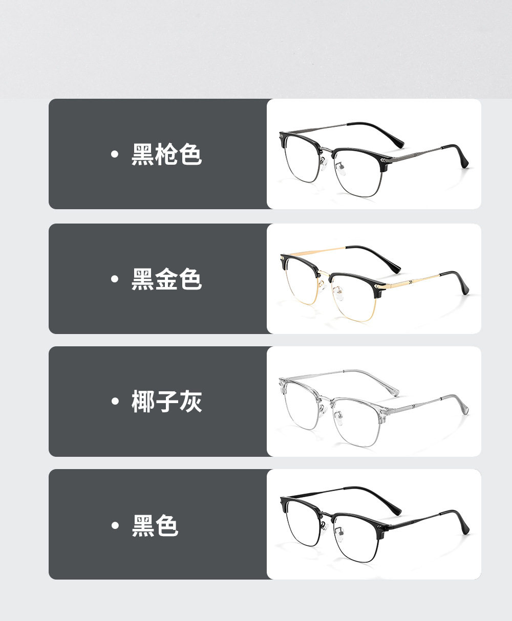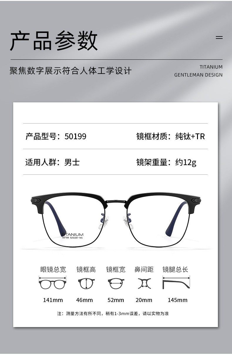 Half-frame glasses men's anti-blue light flat light Danyang glasses frame glasses eyebrow glasses frame myopia glasses pure titanium 122601