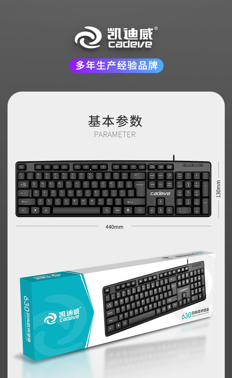 Kaidiwei 630 keyboard wired keyboard wholesale computer home business office USB square Keyboard USB interface
