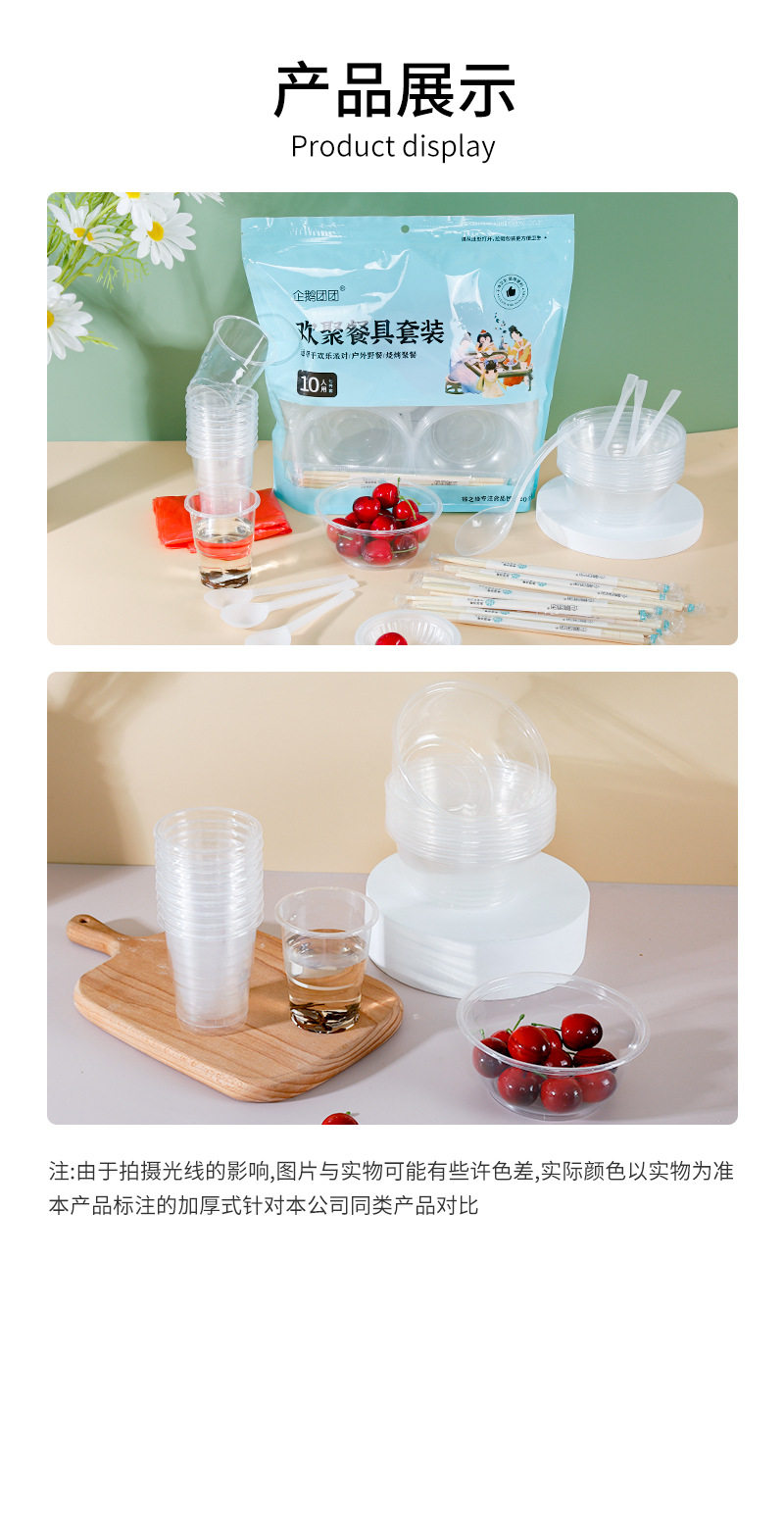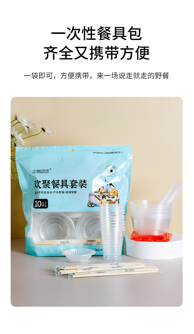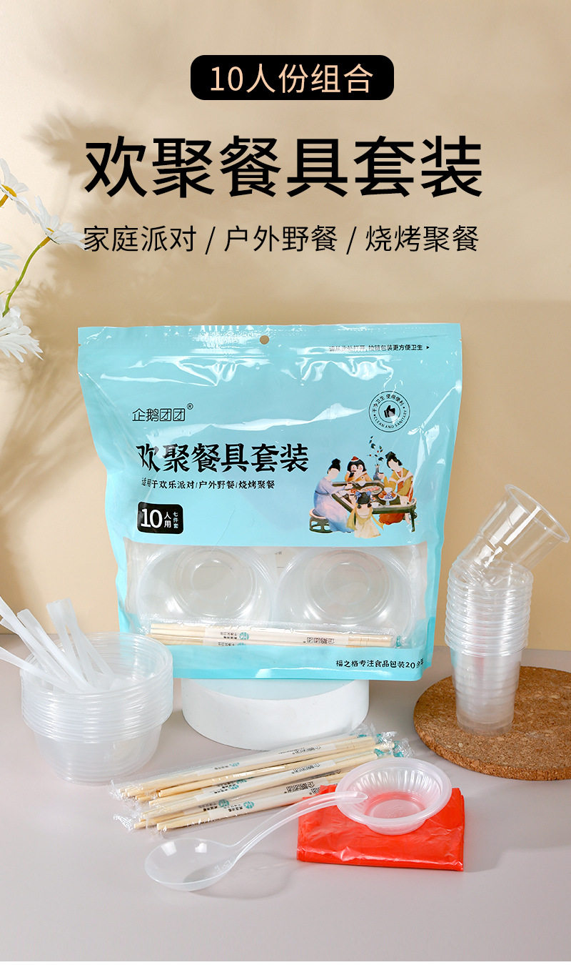 Wholesale Disposable Tableware Set Outdoor Camping Tableware Bowl Cup Chopsticks Spoon Set Household 10-person Set Free Shipping
