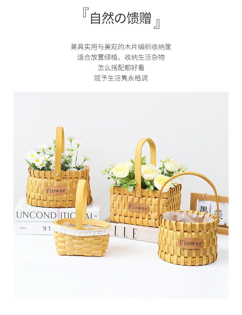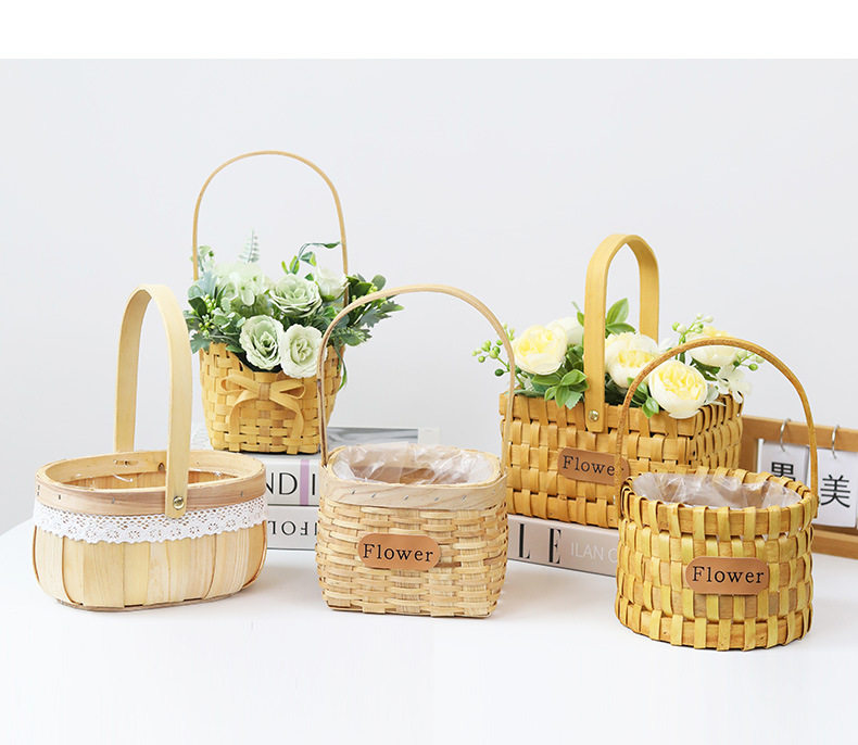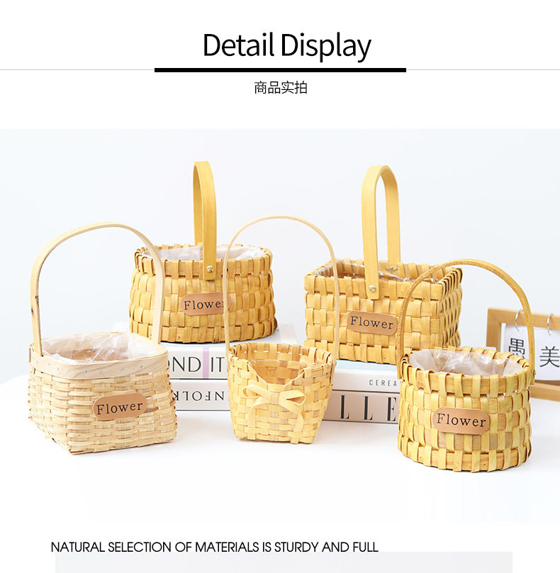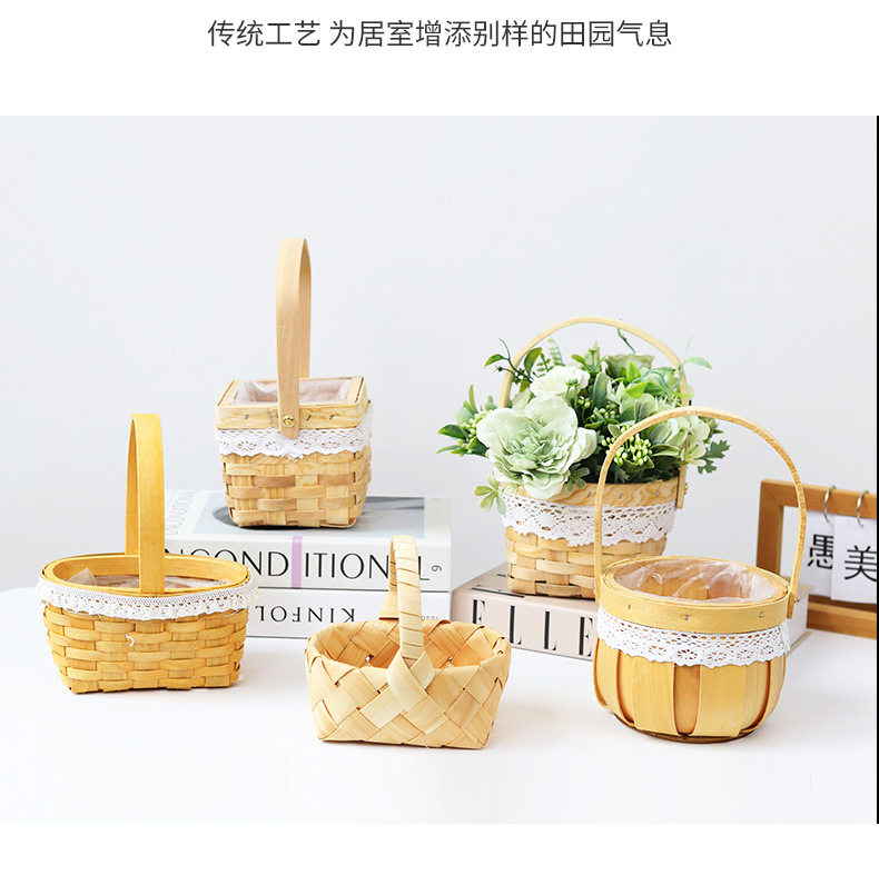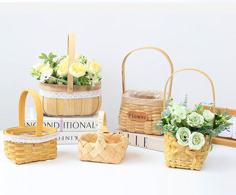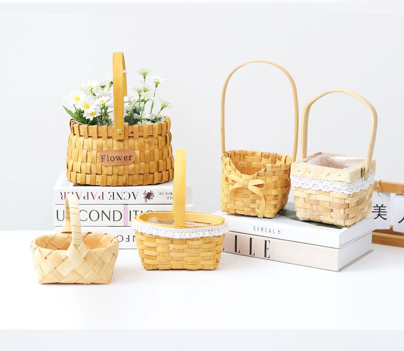 Carefully Selected Mini Wooden Flower Baskets for Children's Day and Women's Day, Flower Shop Arrangement Baskets, Woven Baskets, Storage Tote Baskets