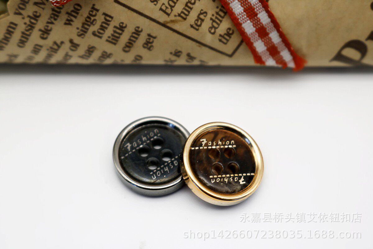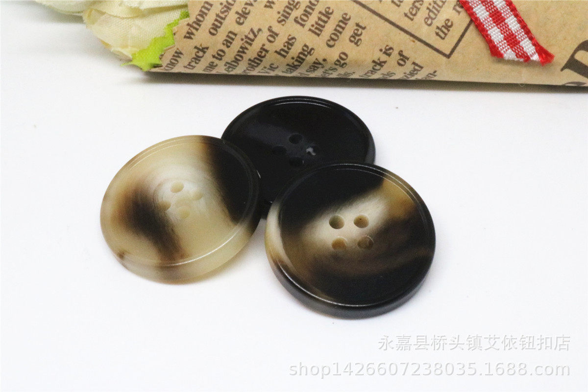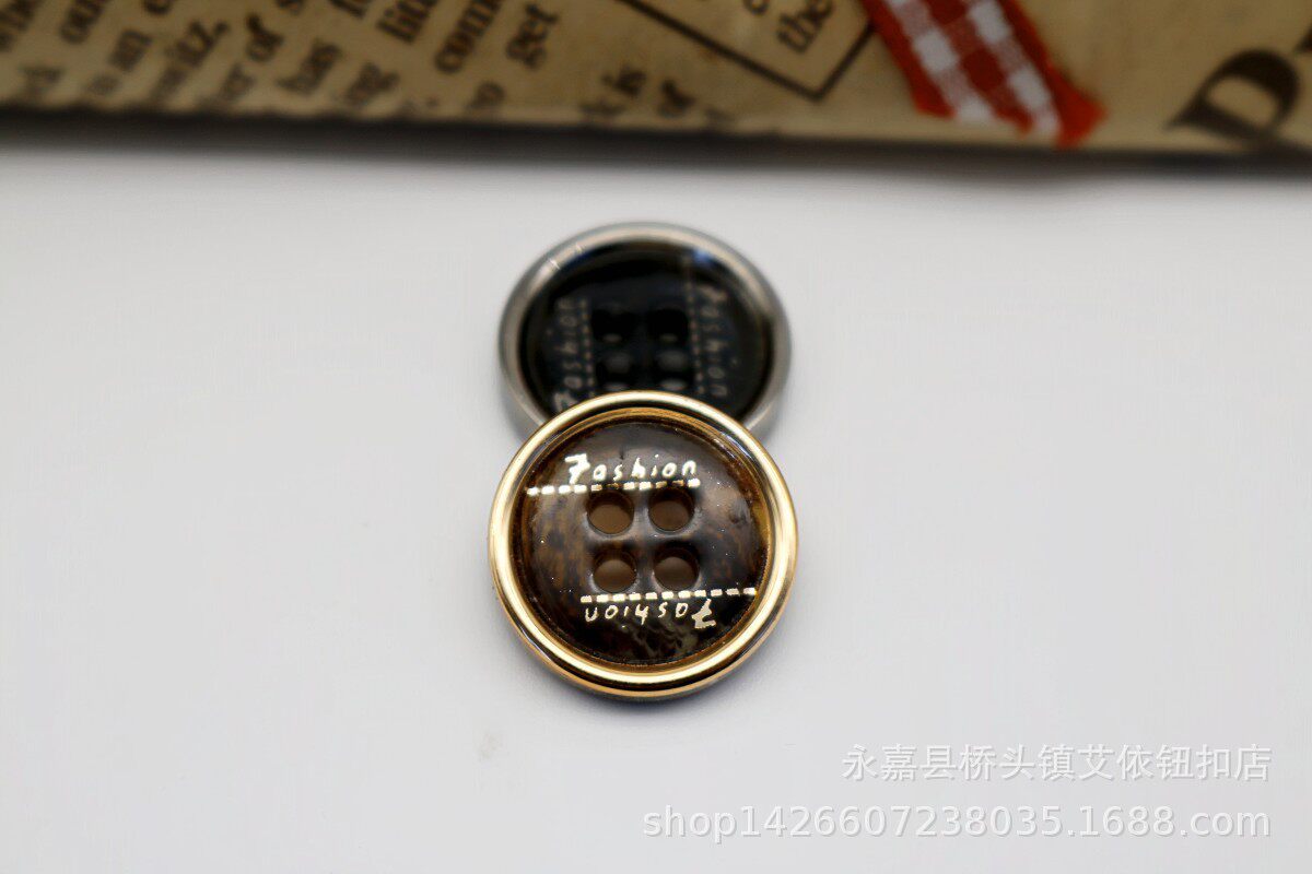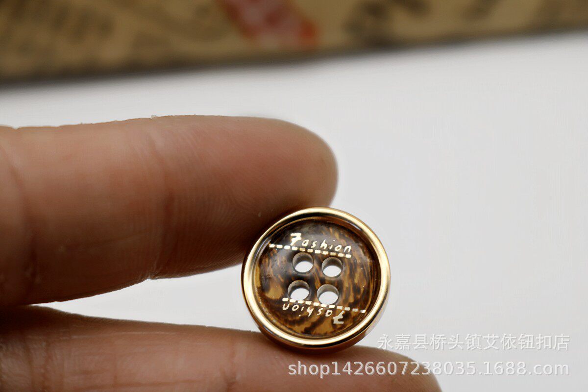 Four Eyes Thin Edge Brown/Black Bars Flower Single Side Electroplated Resin Button Shirt Cardigan Knit Button