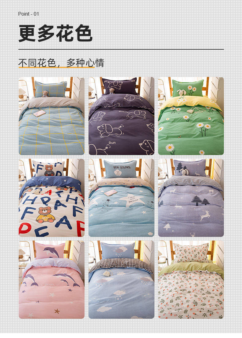 Student dormitory bed three-piece bedding full set single quilt quilt six-piece set water-washed cotton sanding four-piece set