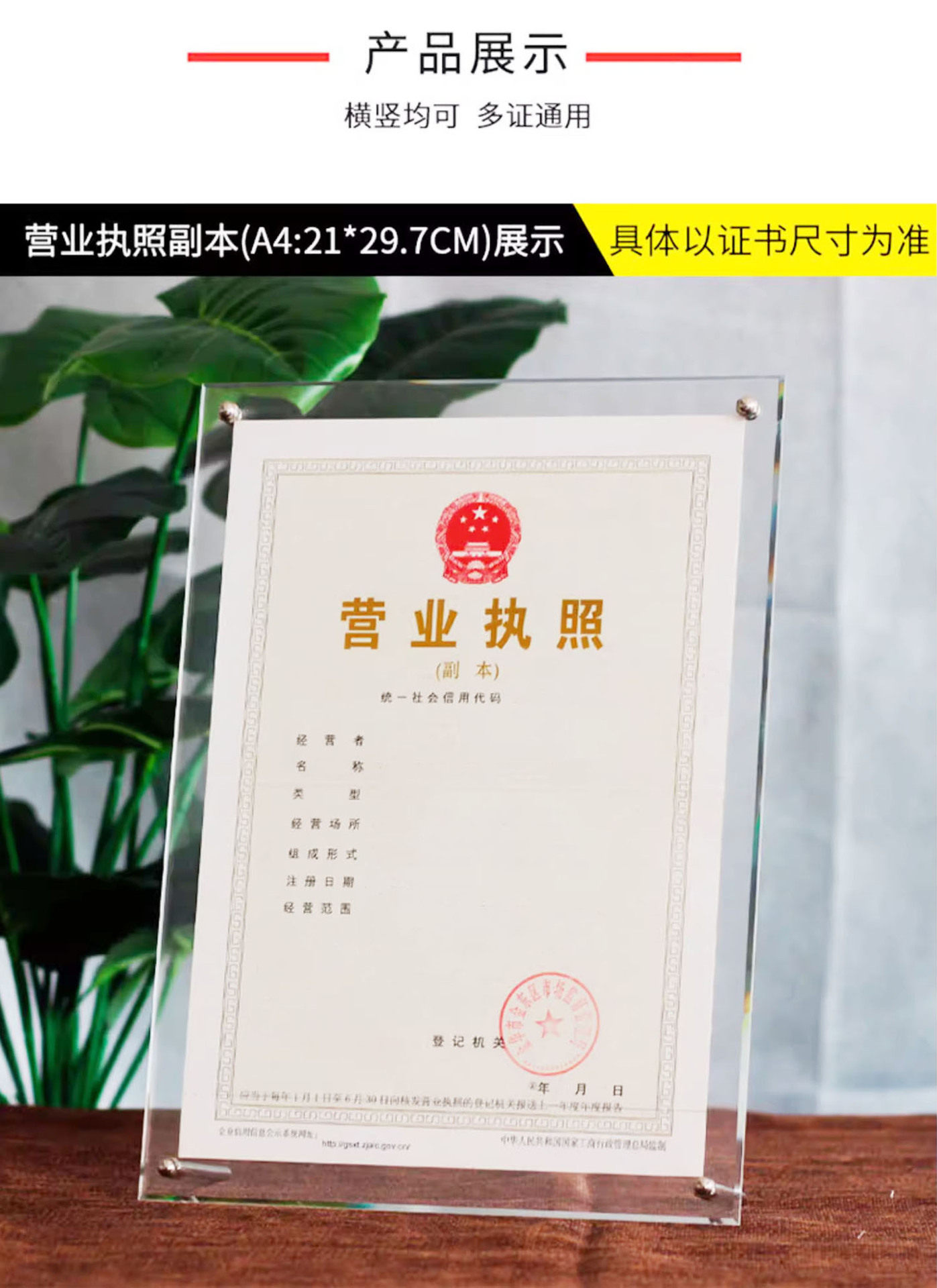 Acrylic Photo Frame Display Stand 6inch A4A3 Certificate Frame Acrylic Display Stand Acrylic Transparent Display Frame