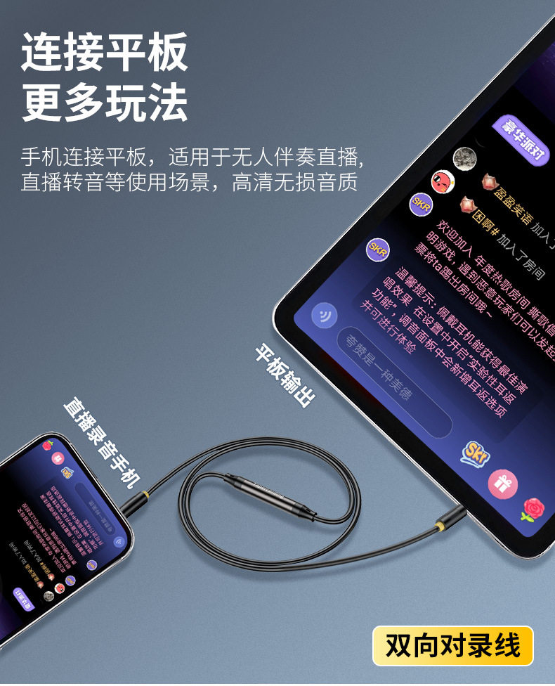 Jinghua audio line to recording line two-way mutual recorder internal recording line mobile phone 3.5 sound card line live switching line mutual transmission