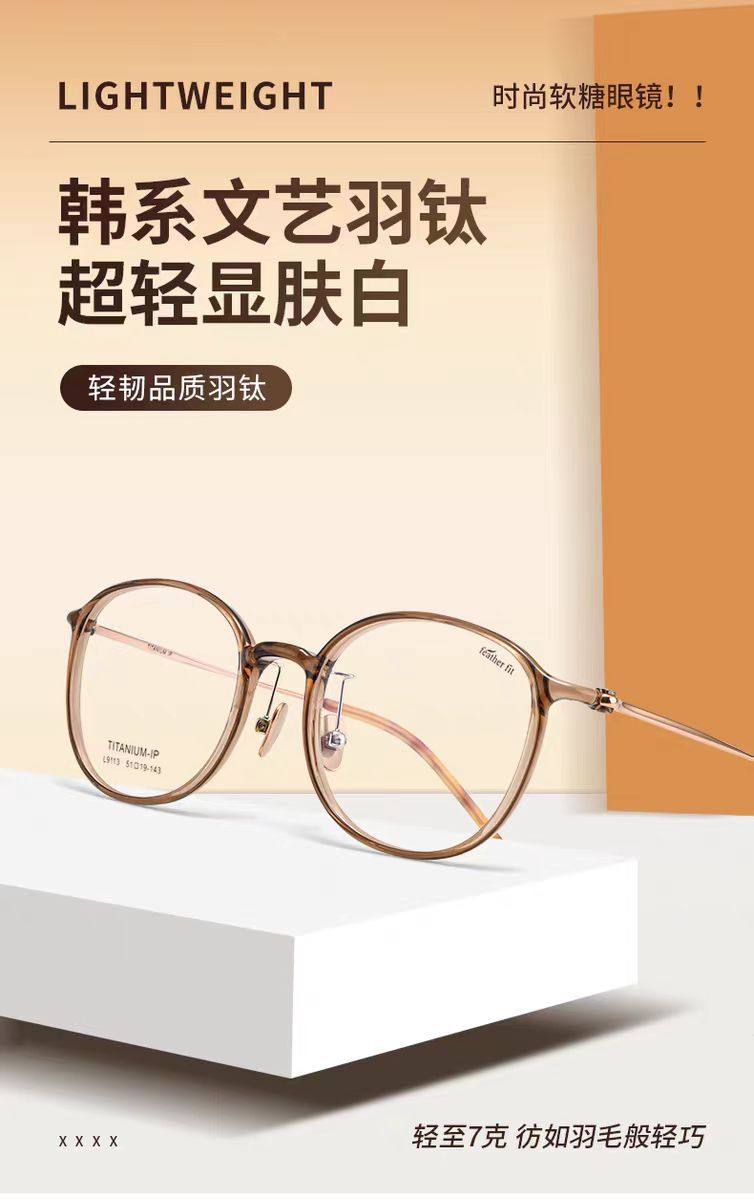 Ultra-Light 7g Glasses Frame Pure Titanium Glasses Frame Popular Plain Glasses Frame Women's Retro Glasses Frame Wholesale 9113
