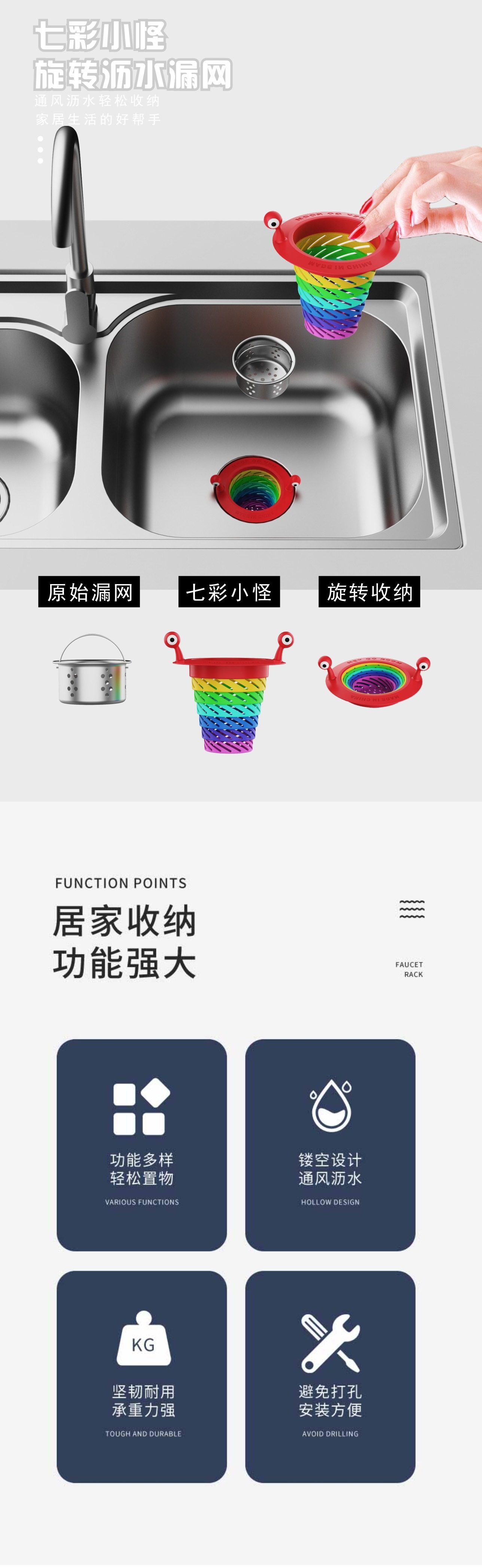 Wholesale - Large Fish Draining Basket, Rainbow Filter Net, Kitchen Sink Residue Filter Tool