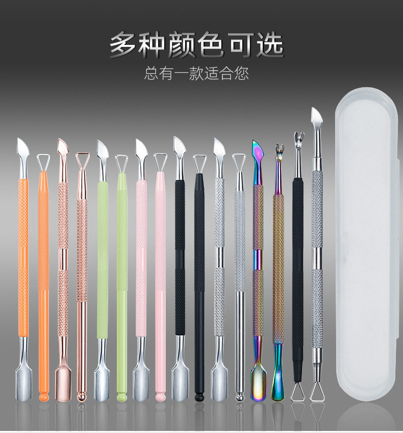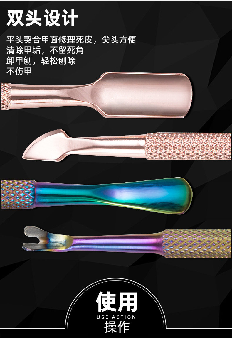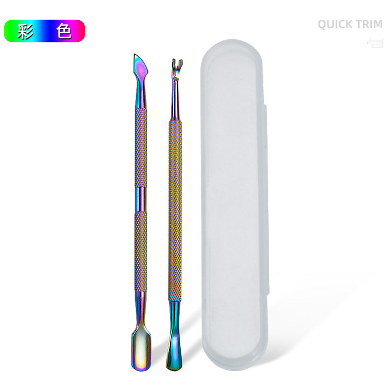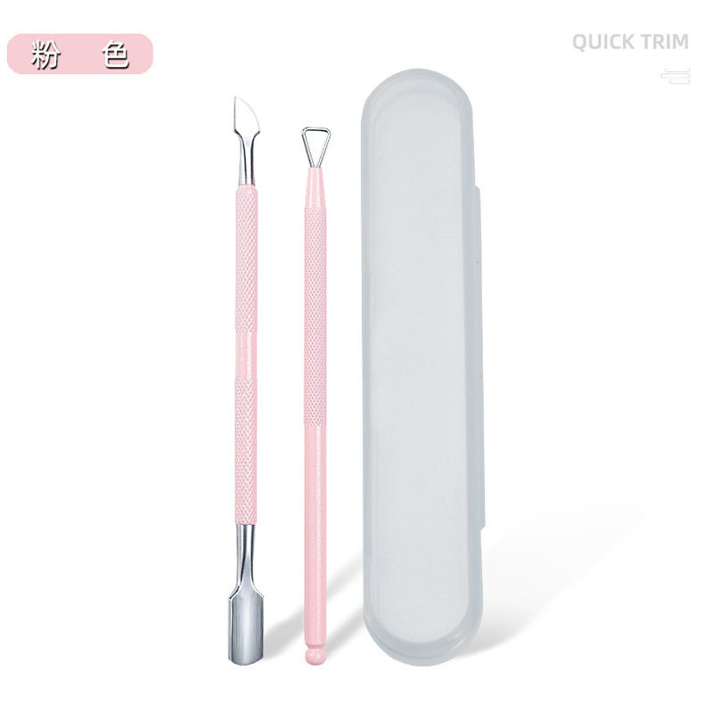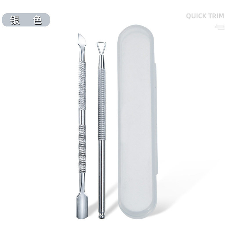 Stainless Steel Nail Polish Remover Steel Pusher 2-Piece Set for Manicure Special Nail Polish Remover and Dead Skin Pusher Double-Head Dual-Purpose Steel Pusher Set