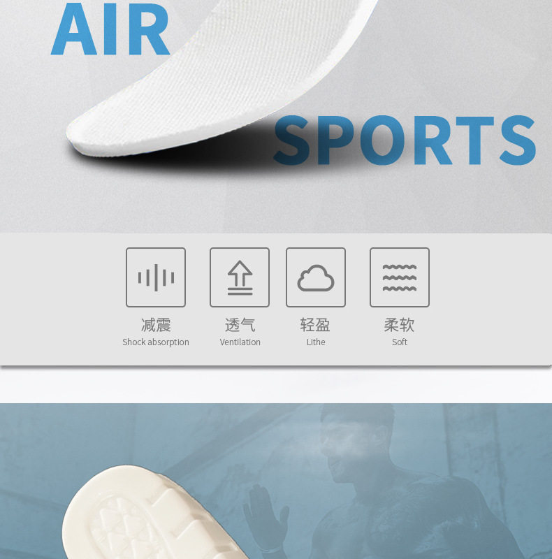 National Freight Moving Insoles for Men and Women, Soft Soles, Comfortable, Sweat-Absorbent, Breathable, Basketball, Shock-Absorbing, Running, Latex, Thickeneded Military Training