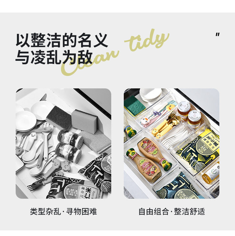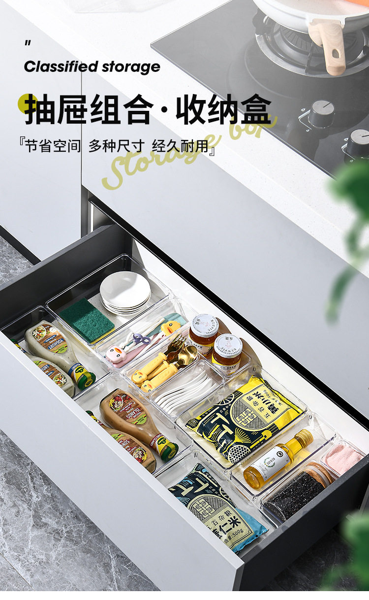 Free combination kitchen drawer partition box home finishing ps transparent plastic cosmetic drawer storage box