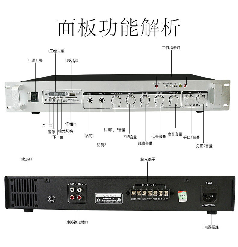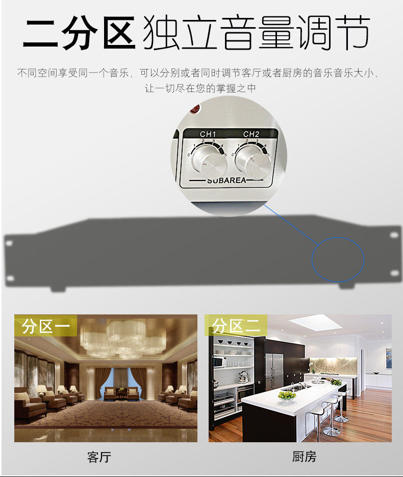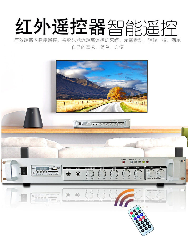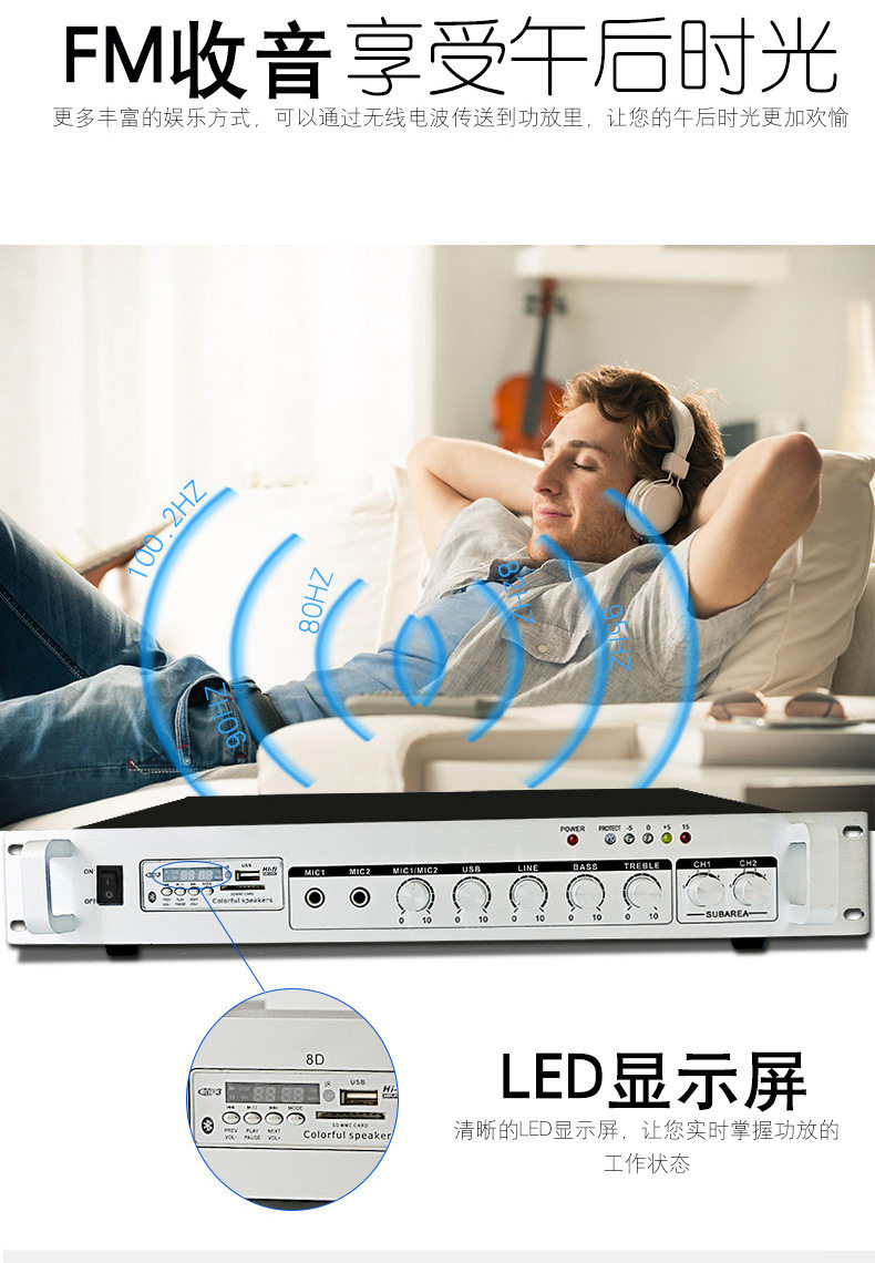 Public broadcasting background music constant pressure power amplifier 1.5u power amplifier reverberation delay adjustment 2-zone independent control power amplifier