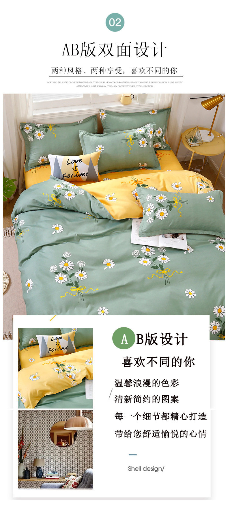 Aloe Cotton Simple Four-piece Set Student Dormitory Spring Four Seasons Three-piece Set Comfortable Skin-friendly Printed Series Bedding