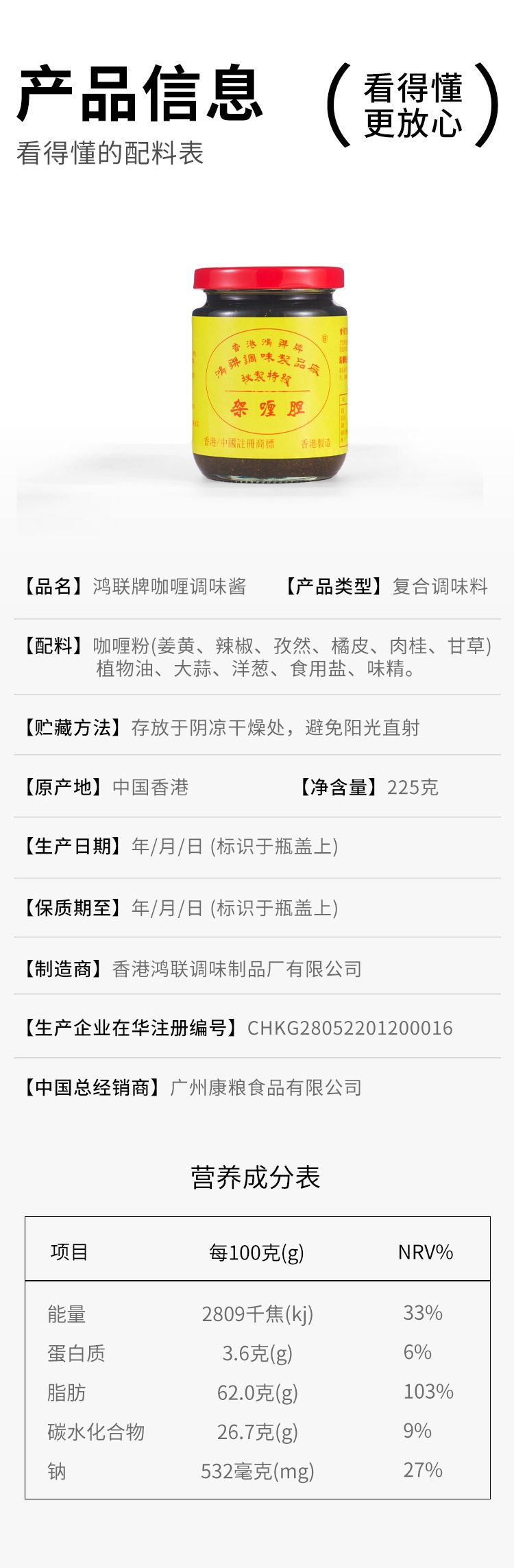 Honglian Brand Curry Gall 225g Hong Kong Origin Curry Sauce Southeast Asian Flavor Curry Paste Curry Fish Egg Sauce