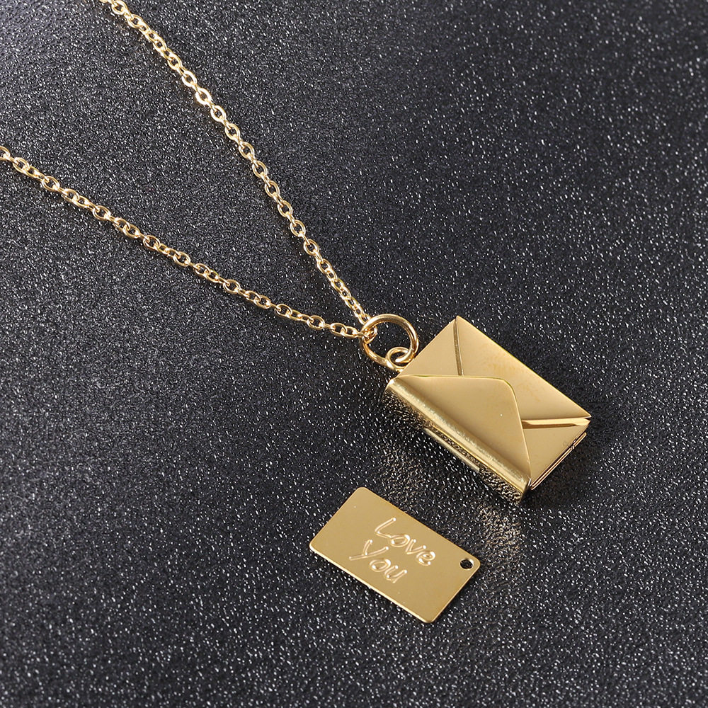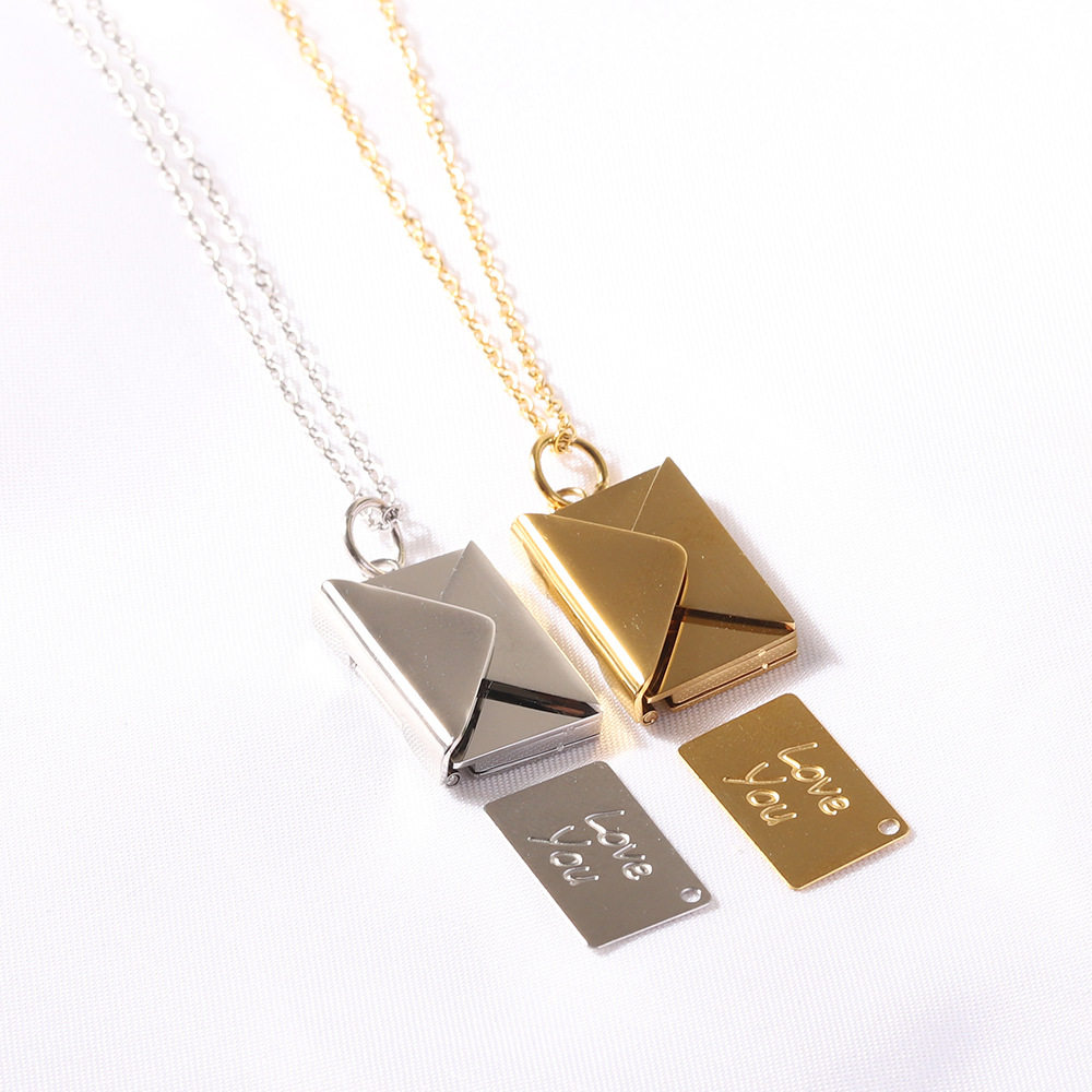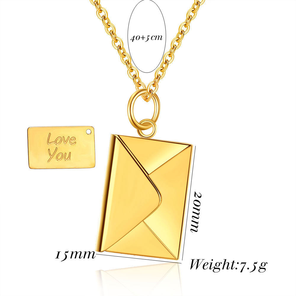 European and American Cross-Border Amazon Bestseller 20mm Stainless Steel Envelope Necklace with Engraving Options, Versatile Couple Necklace, Collarbone Chain Wholesale
