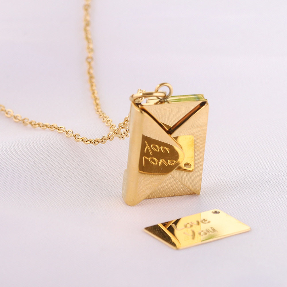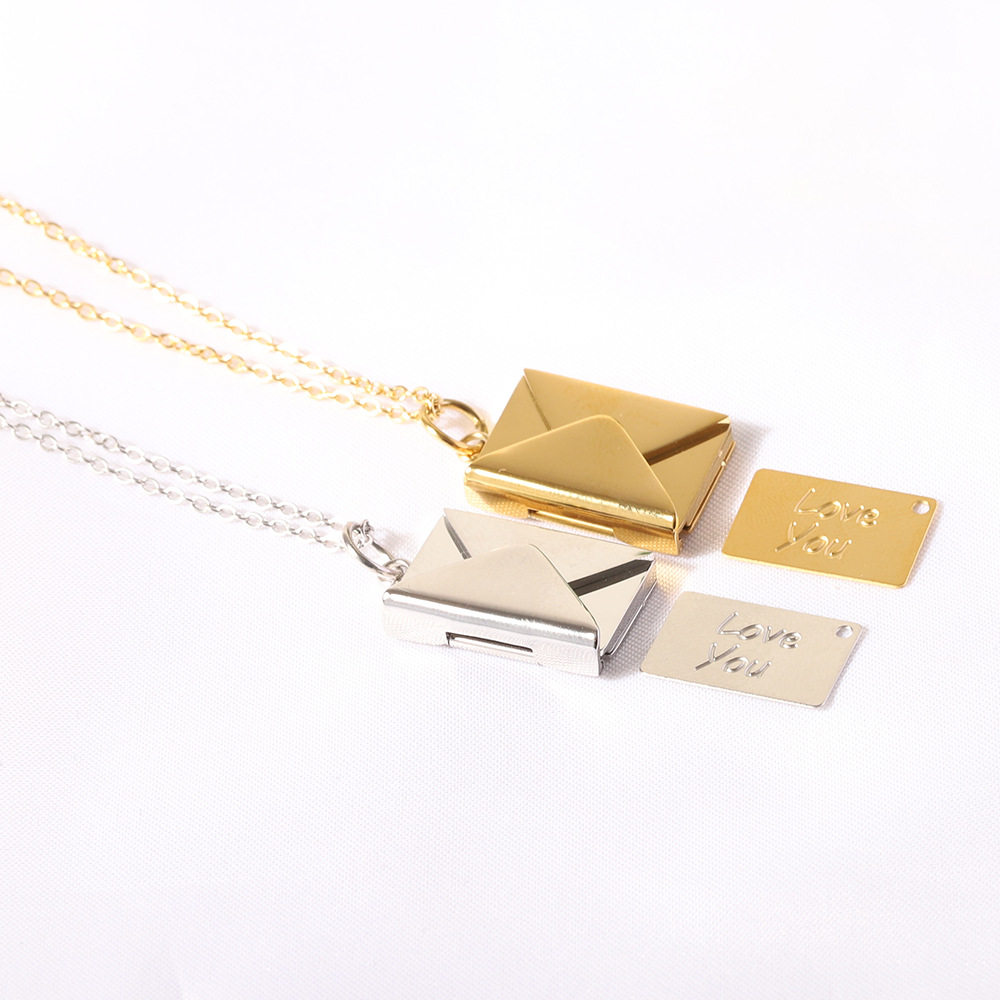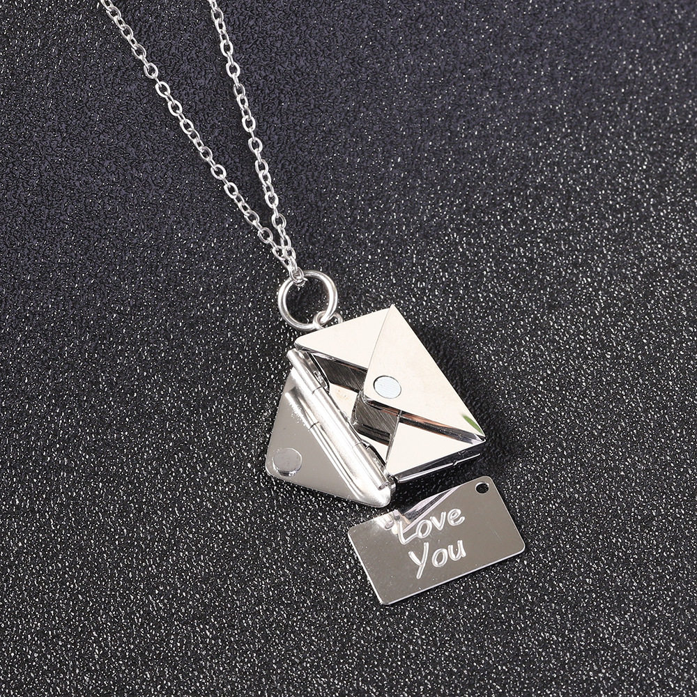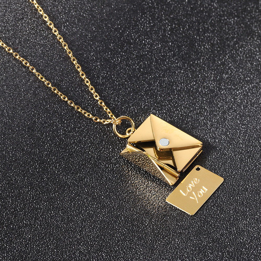 European and American Cross-Border Amazon Bestseller 20mm Stainless Steel Envelope Necklace with Engraving Options, Versatile Couple Necklace, Collarbone Chain Wholesale