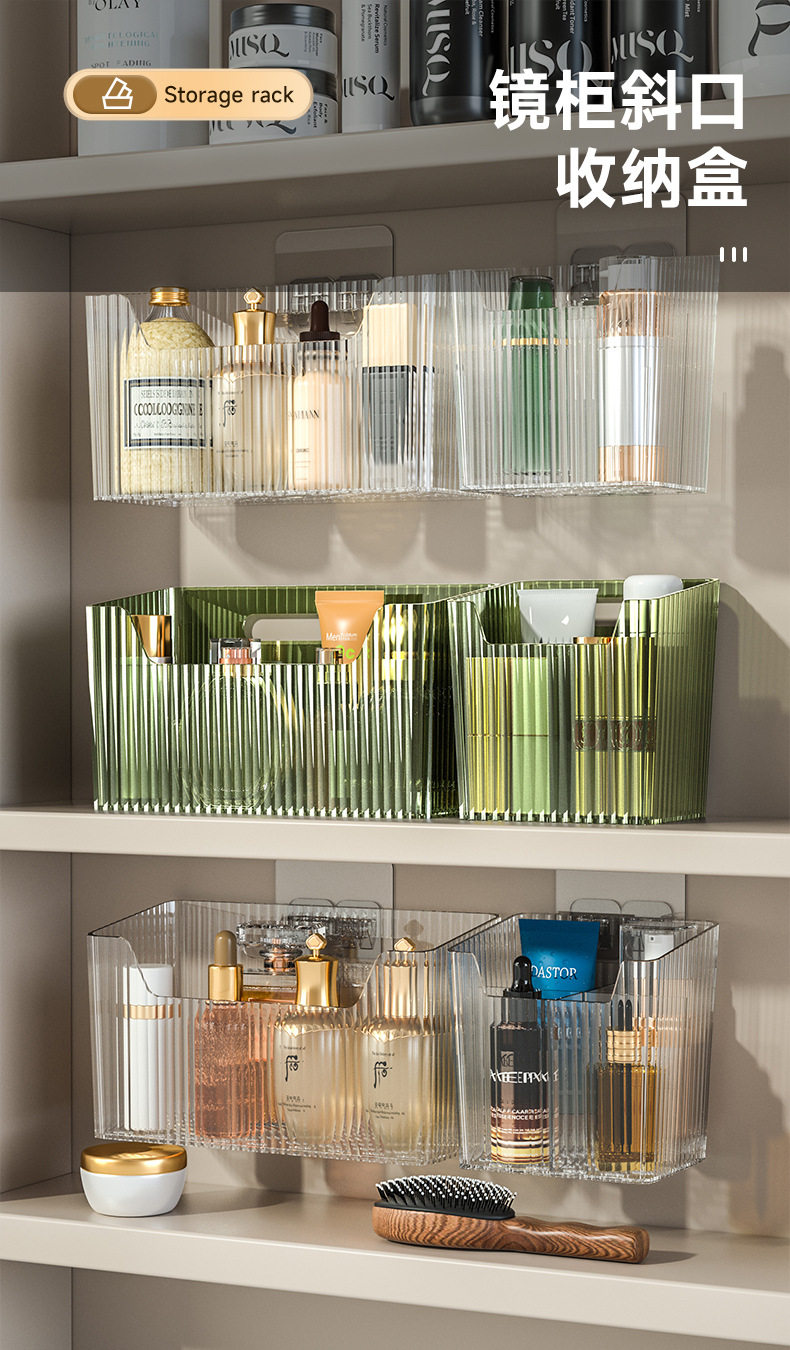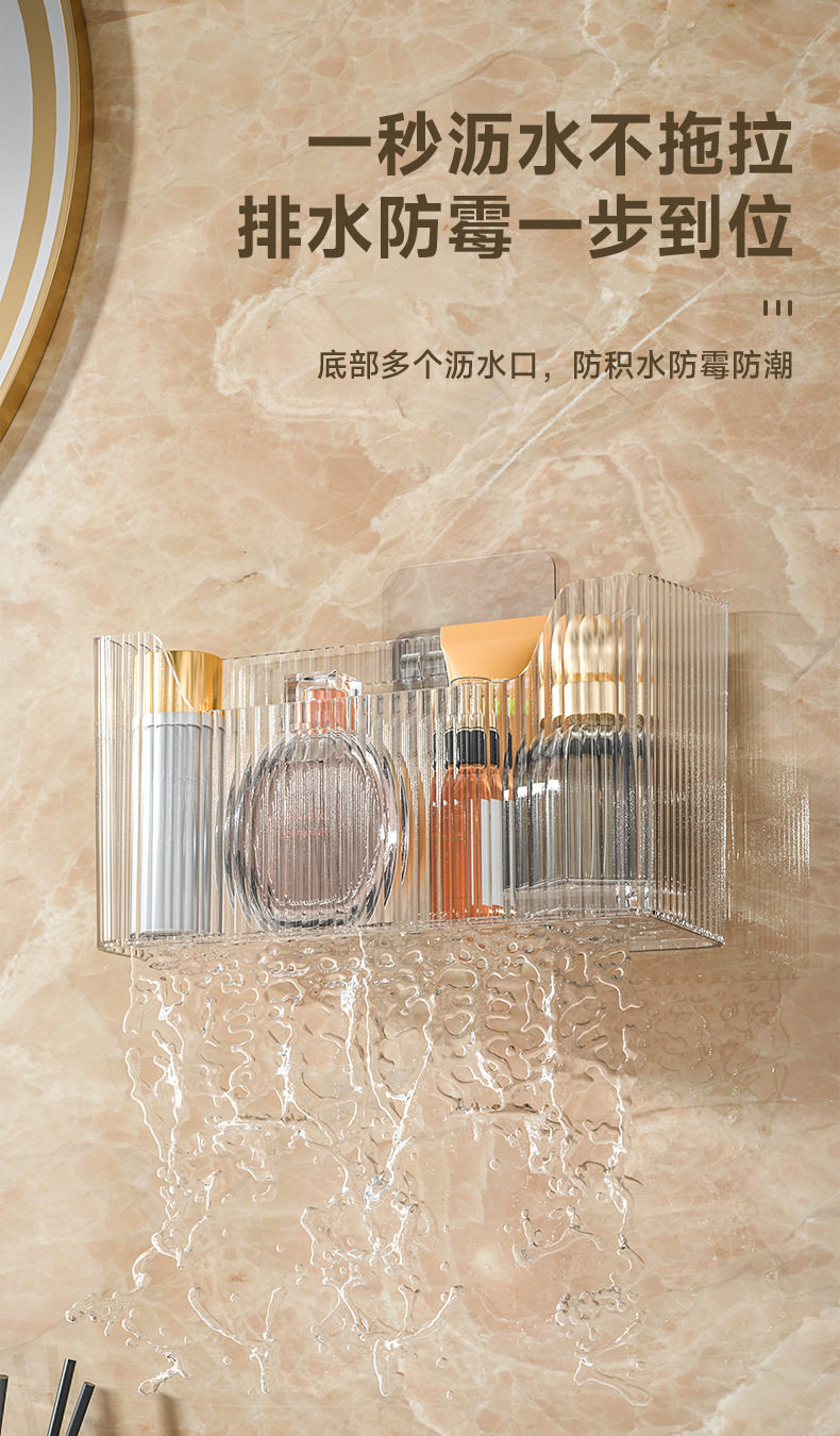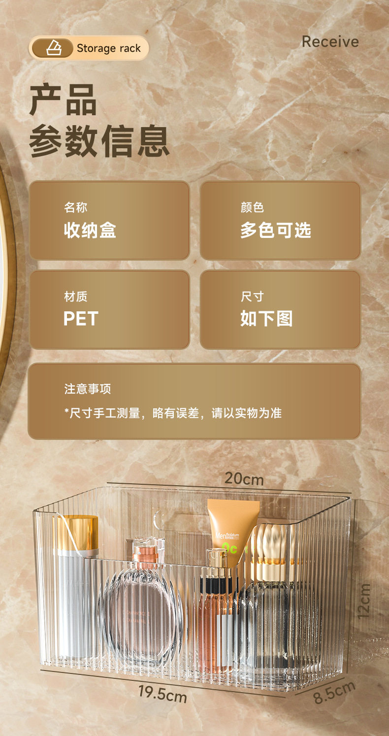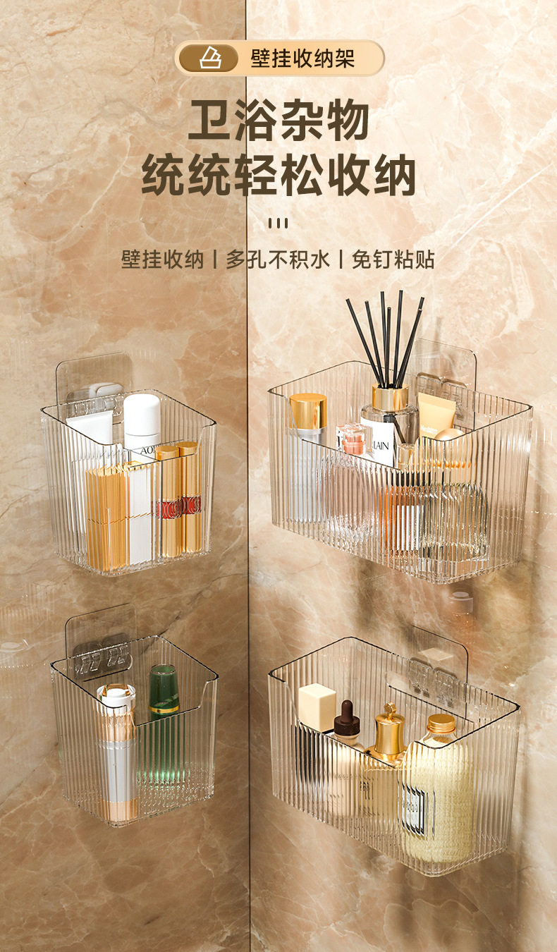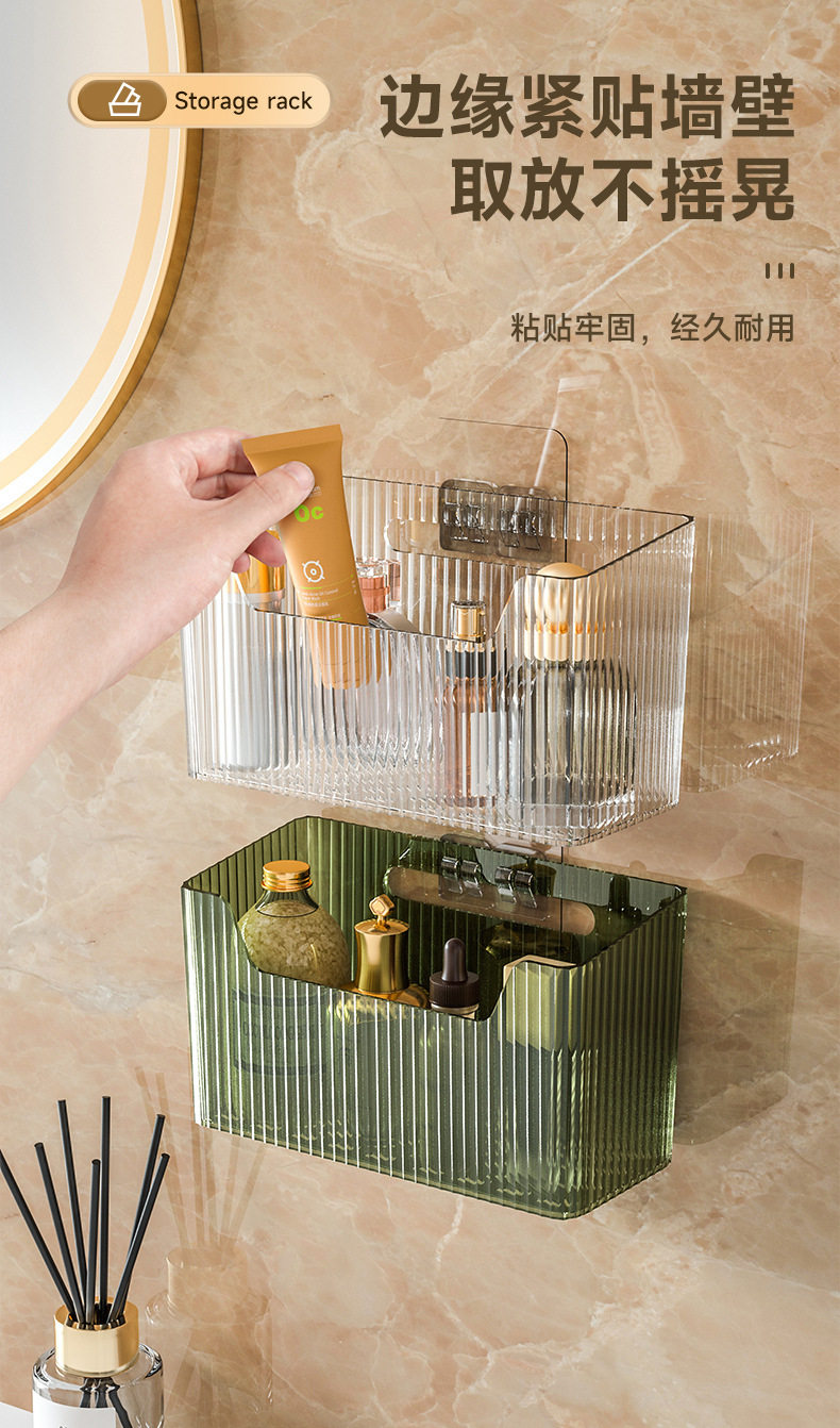 | Color | Transparent medium desktop storage box (drain design, no adhesive),Wall-mounted transparent medium storage box (complimentary adhesive, drain design),Wall-mounted dark green trumpet storage box (complimentary adhesive, drain design),Wall-mounted transparent small storage box (complimentary adhesive, drain design),Small storage box partition gray,Small Storage Box Partition Green |