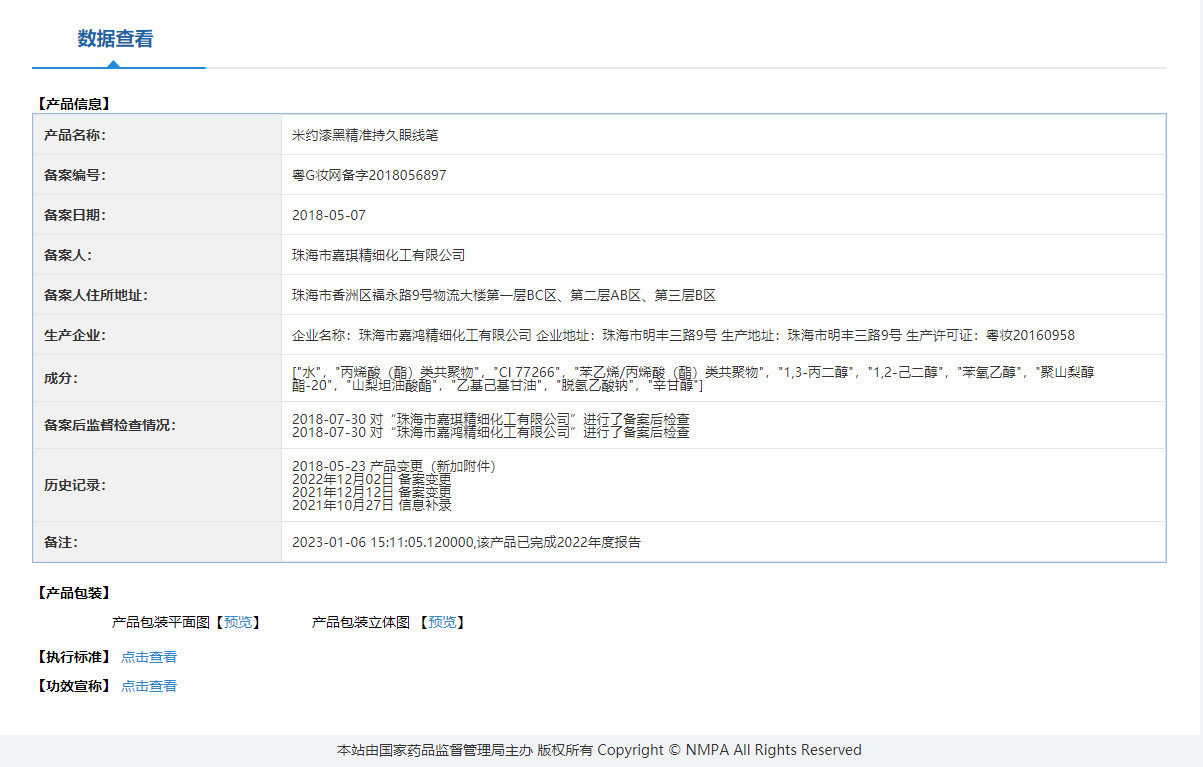 | Non-special cosmetics record certificate number | Yue G makeup net preparation word 2018056897 |